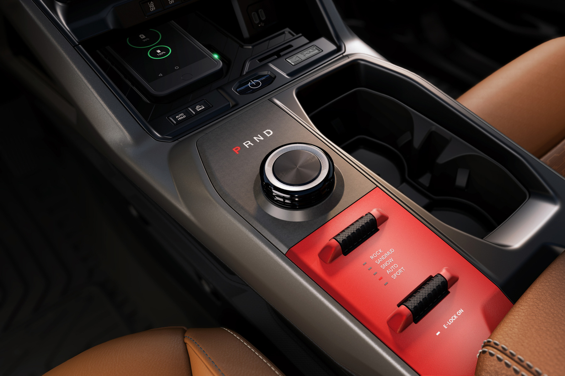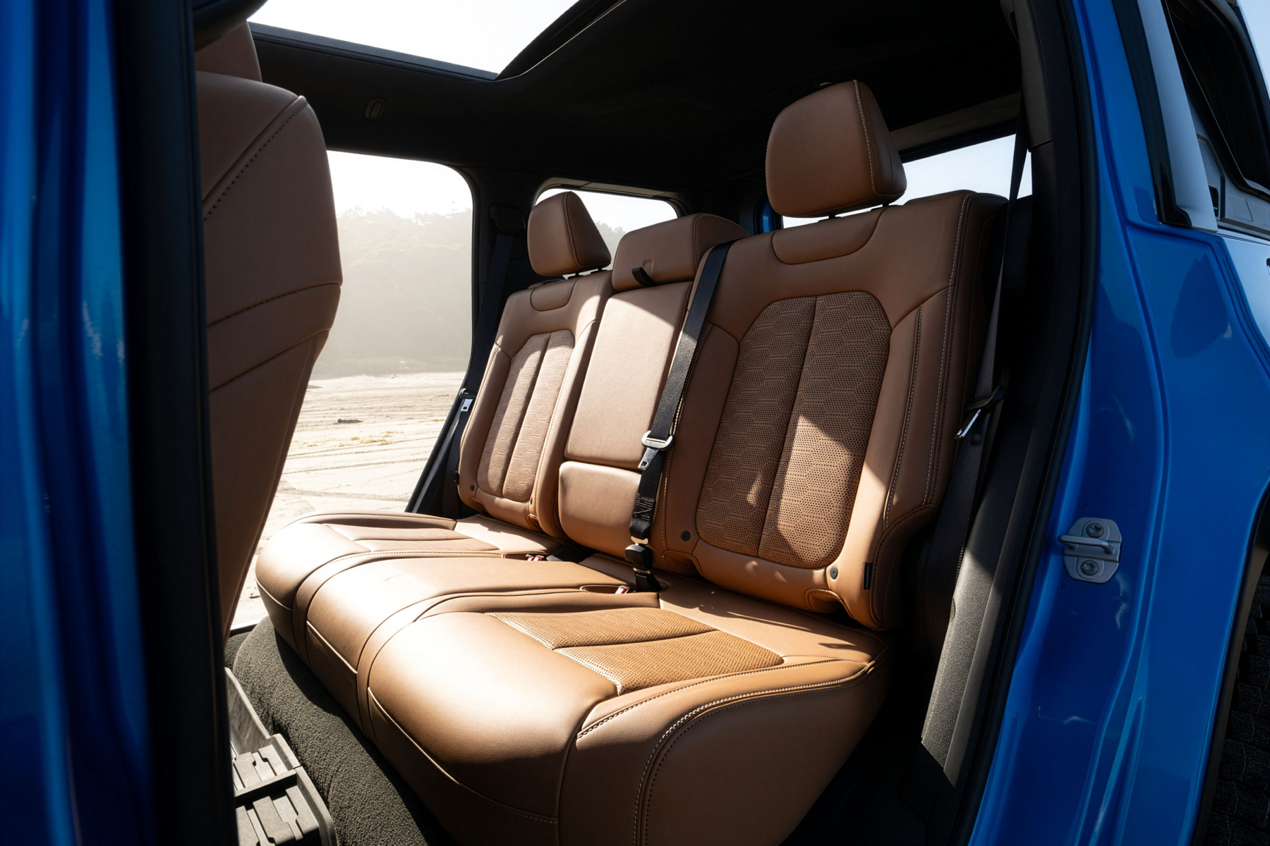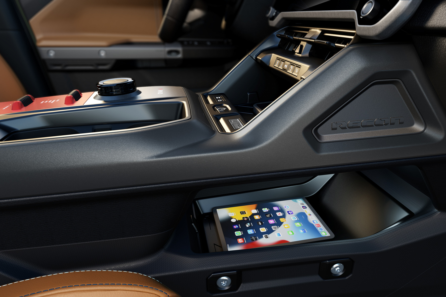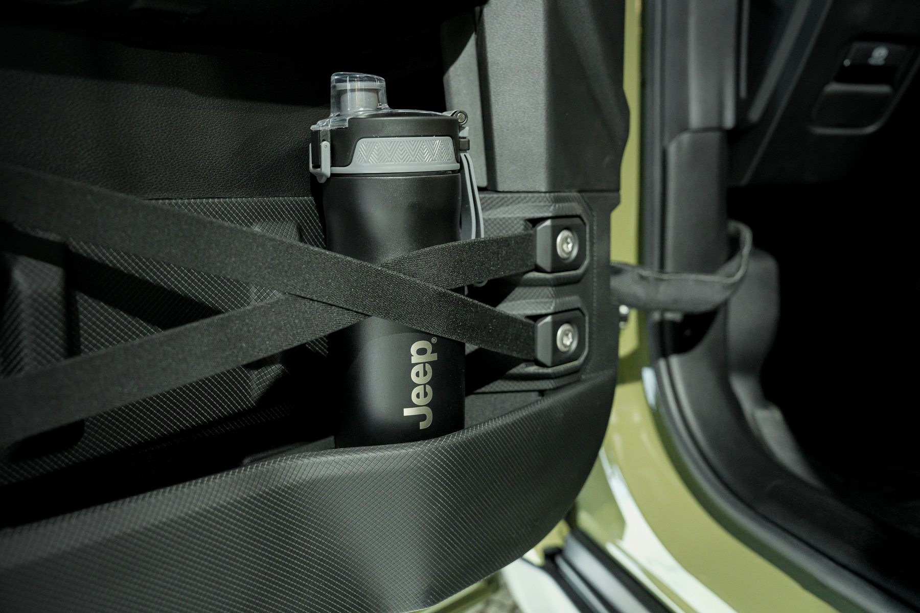 This being a heavily Wrangler-influenced product, the Recon includes a bunch of clever, outdoorsy touches. There’s an accessory rail in the middle of the dash that can accomodate various mounts, the door panels have elastic straps instead of a storage cubby and bottle holder — take note, Porsche — and the new interior colour called Joshua Tree Tan looks appreciably outdoorsy.