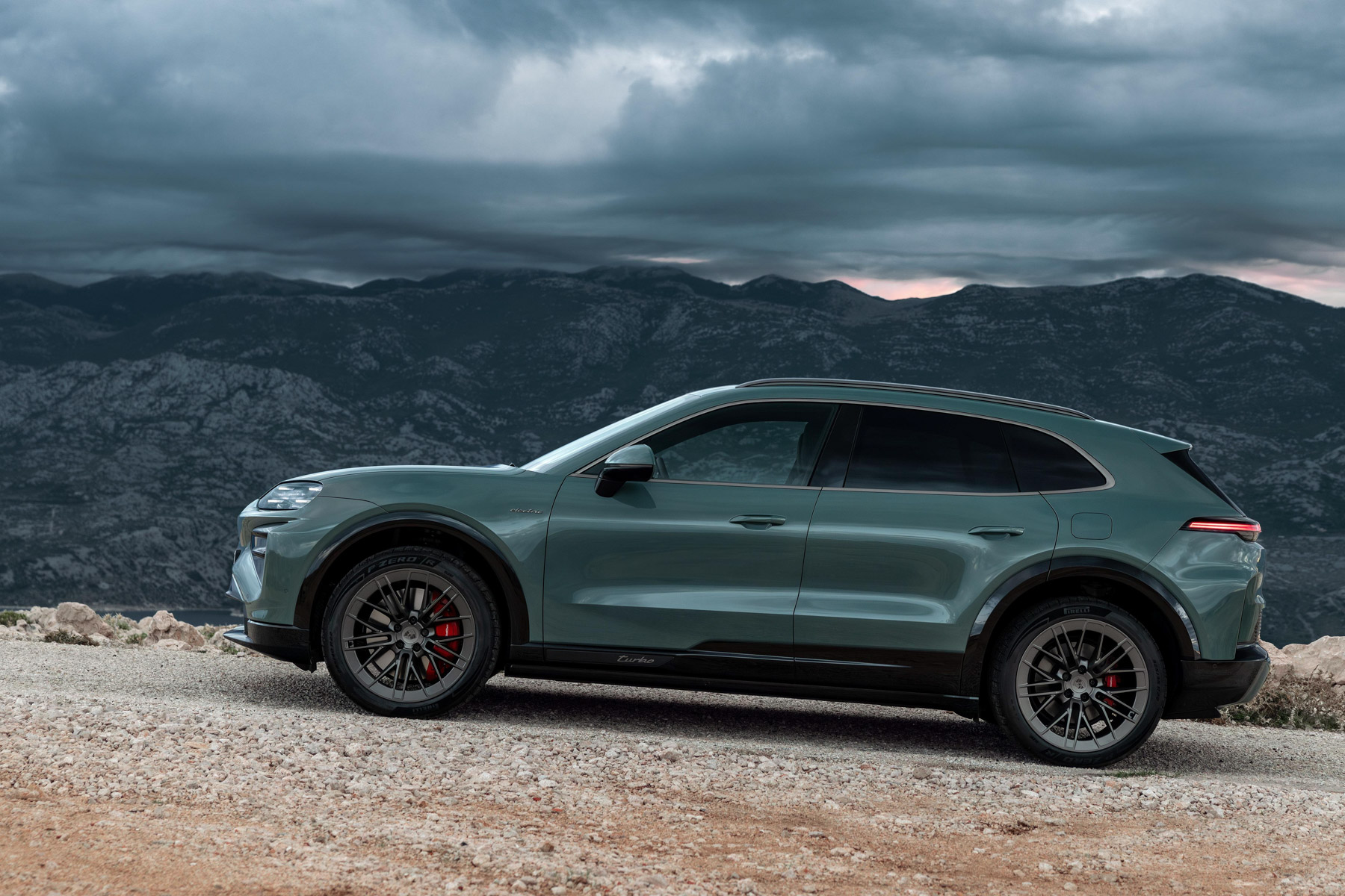 All Cayenne Electric models come standard with a two-valve air suspension setup and their PASM system. Playing around with the configurator — come on, you know you did it, too — 20-inch wheels are standard on the base Cayenne Electric, and you can upgrade to 21s or 22s. Turbos come standard with 21s, and 22s are optional. Spec a very specific 22-inch design and you can select stickier Pirelli P-Zero R summer tires for a few extra loonies. Turbos also get a locking rear diff, a better cooling setup, and the ability to regenerate up to 600 kW of power upon letting off the skinny pedal.