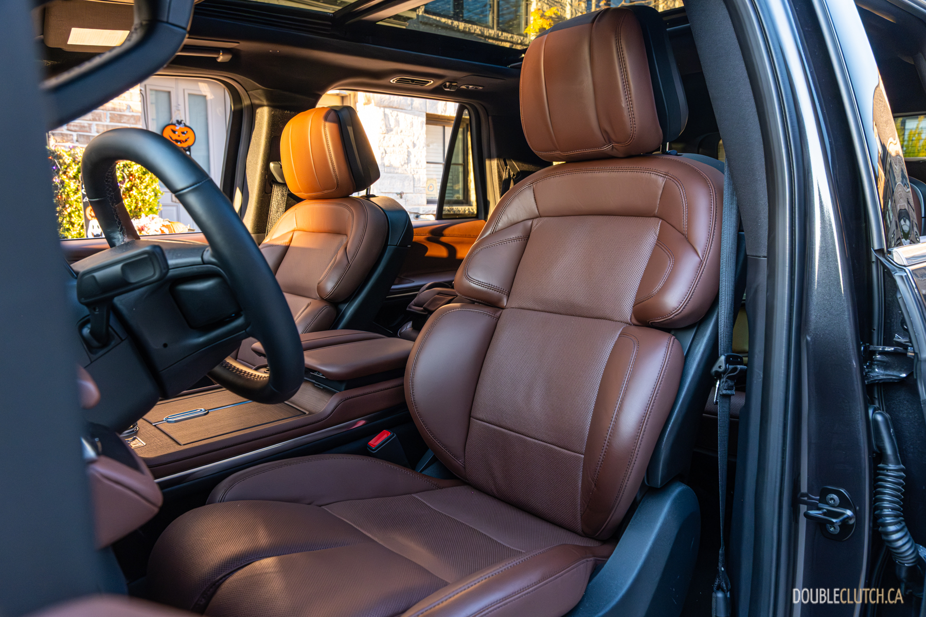 The Navigator’s interior is where the changes are really apparent. It starts with the 48-inch panoramic display Lincoln popularized, and dare I say somewhat pioneered in the automotive space. This party trick was first introduced on the redesigned Nautilus, and finally makes its way to the Navigator to one-up the refreshed Escalade, which also got a widescreen this year. First-timers will surely be amazed at all the visual space and information available at a glance; it was a bit polarizing around the office, but I’ve grown accustomed to it. I appreciated having the gauges, maps, current audio, fuel economy, and even weather all at a glance without having to sift through menus or change screens. There’s also a secondary 11.1-inch touchscreen on the centre console to control most functions and adjust the tiles on the panoramic display. It all works rather well, although seeing maps redundantly in the smaller display can feel a bit odd.