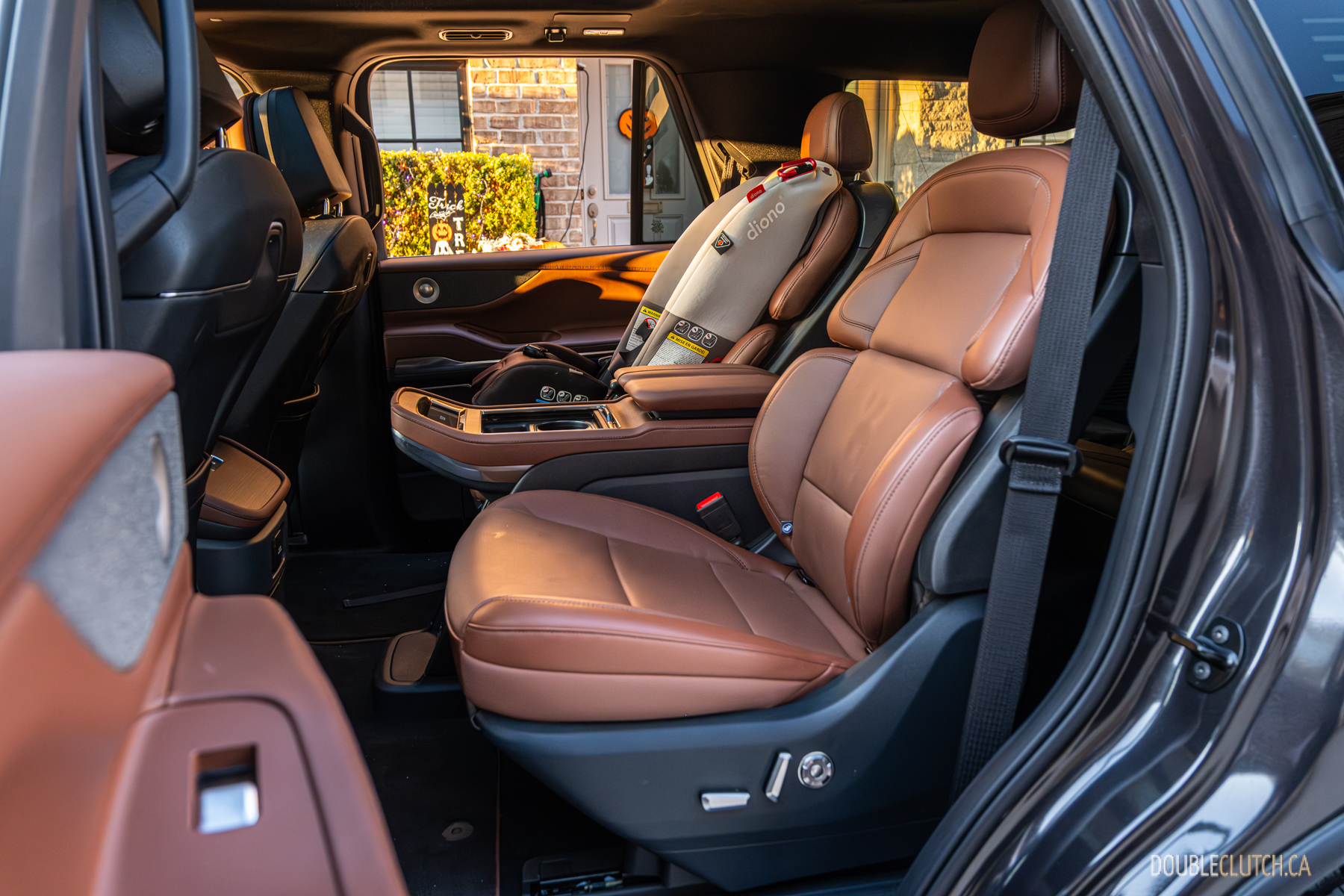The Navigator feels like a car you’d rather be driven in than drive yourself. As you can imagine, space is abundant in the Navigator, with all three rows providing ample room for adults. Seats are comfortable and near-infinitely adjustable (more like, 30-way) up front with Lincoln’s “perfect position” front seating. All four captain’s chairs provide heating, cooling, and massage functions, with the second-row comfort features controllable via an easy-to-reach screen between the seats that’s included in the $4,000 second row captain’s chair package. The brown leather is soft, the wood trim is inviting, and the prominent Revel speaker grilles add a touch of sophistication. It feels like old-money, and in this interior spec I wanted to sit in the back with a cigar. I don’t even smoke!