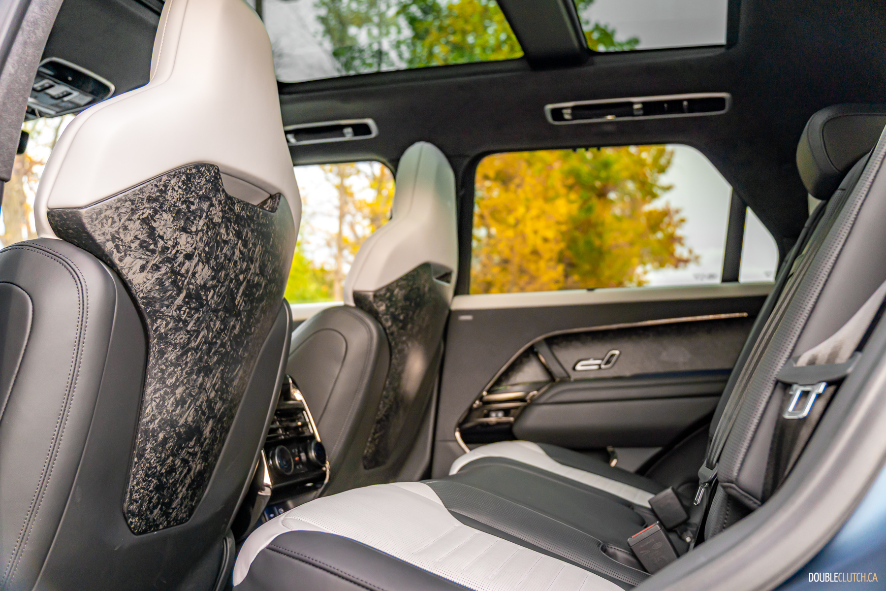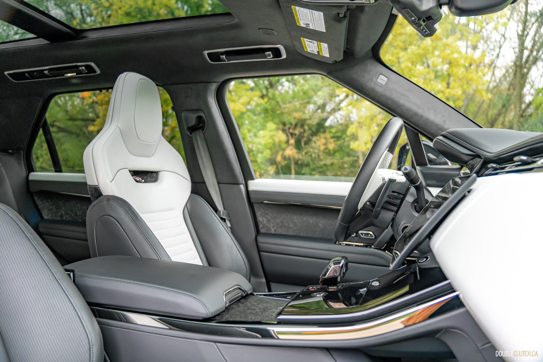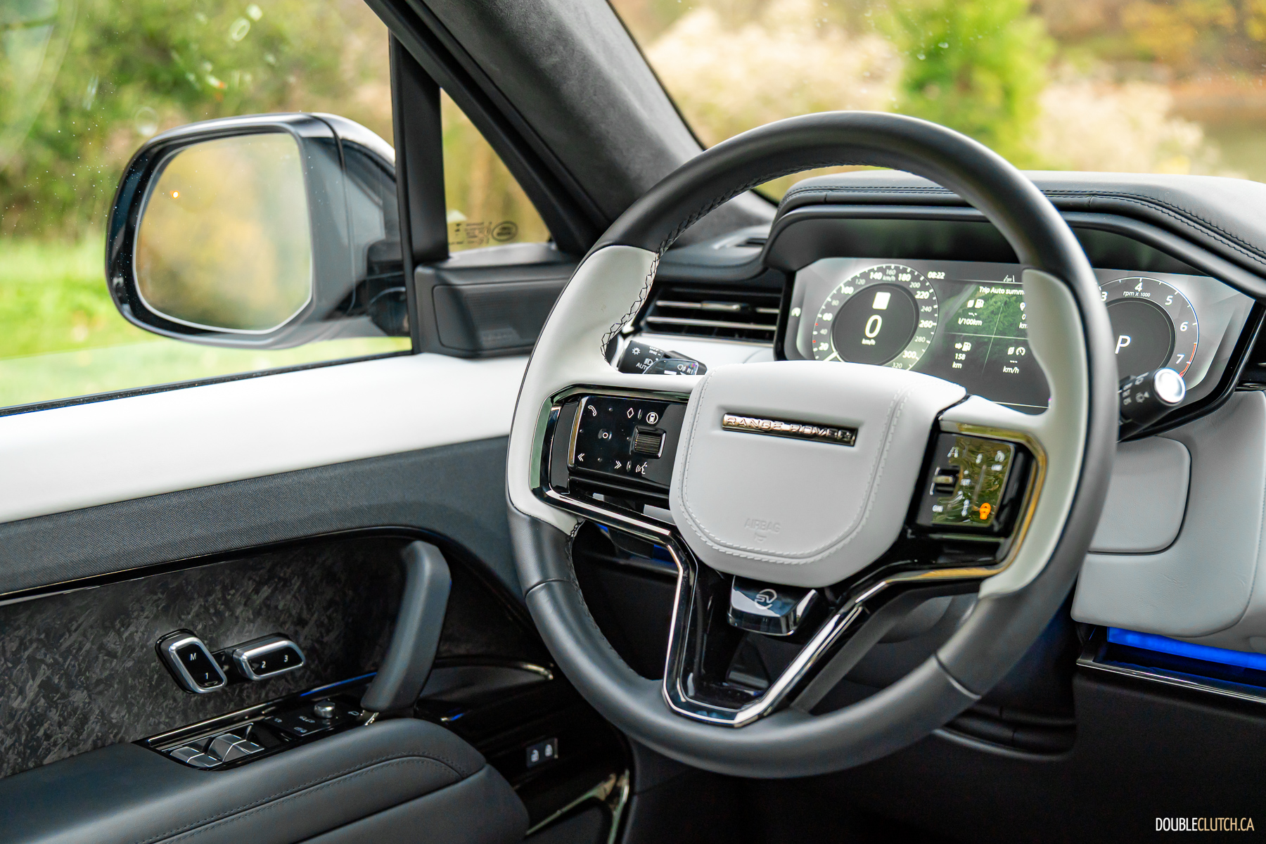 Inside is distinctly Range Rover too, even on this exuberant Edition Two. Everything is swathed in two-tone Ebony and White Cloud Windsor leather, with large expanses of satin-sheen forged carbon broken up by mirror-finish metallic trim. Along with the existing massage function of the wonderfully supportive seats is a new function for the seats called Body and Soul, which adds bass drivers directly into the seats, so they can thump along with the magnificent 30-speaker Meridian Signature sound system. It’s another feature that sounds gimmicky, like it shouldn’t work, but damn if it doesn’t pull it off and make an already top-tier listening experience that much better.