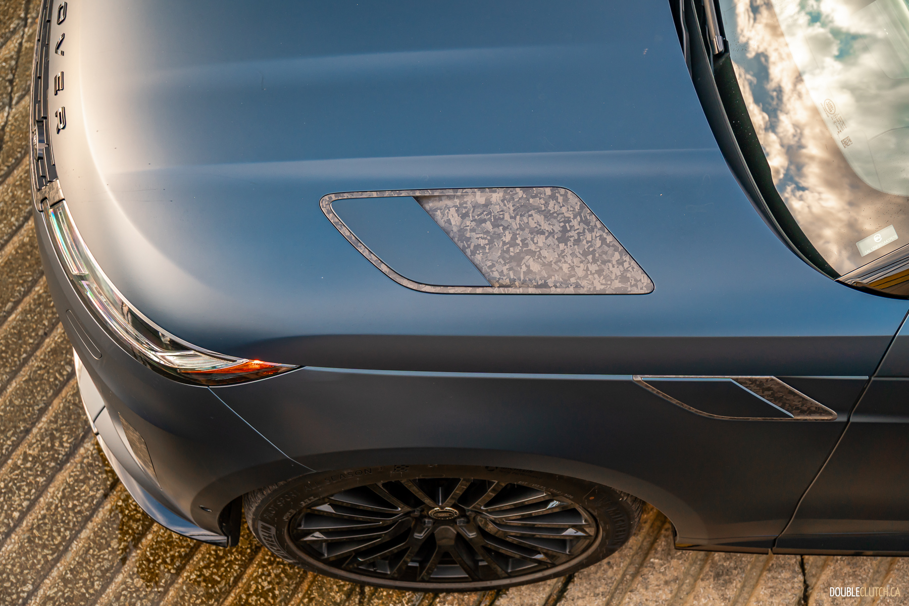 This Range Rover Sport SV Edition Two is draped in matte Nebula Blue paint, with massive 23-inch wheels, hiding colossal carbon ceramic brakes, and almost every single piece of trim, from the grille, to the lower valence, to the hood and fender vents, to the exhaust tips, are covered in forged carbon. It’s ridiculous. On anything else, it would elicit eye rolls, sighs of cringe from trying too hard, but like Harrison Ford’s fedora or Prince’s frilly shirts, a Range Rover can rock it.