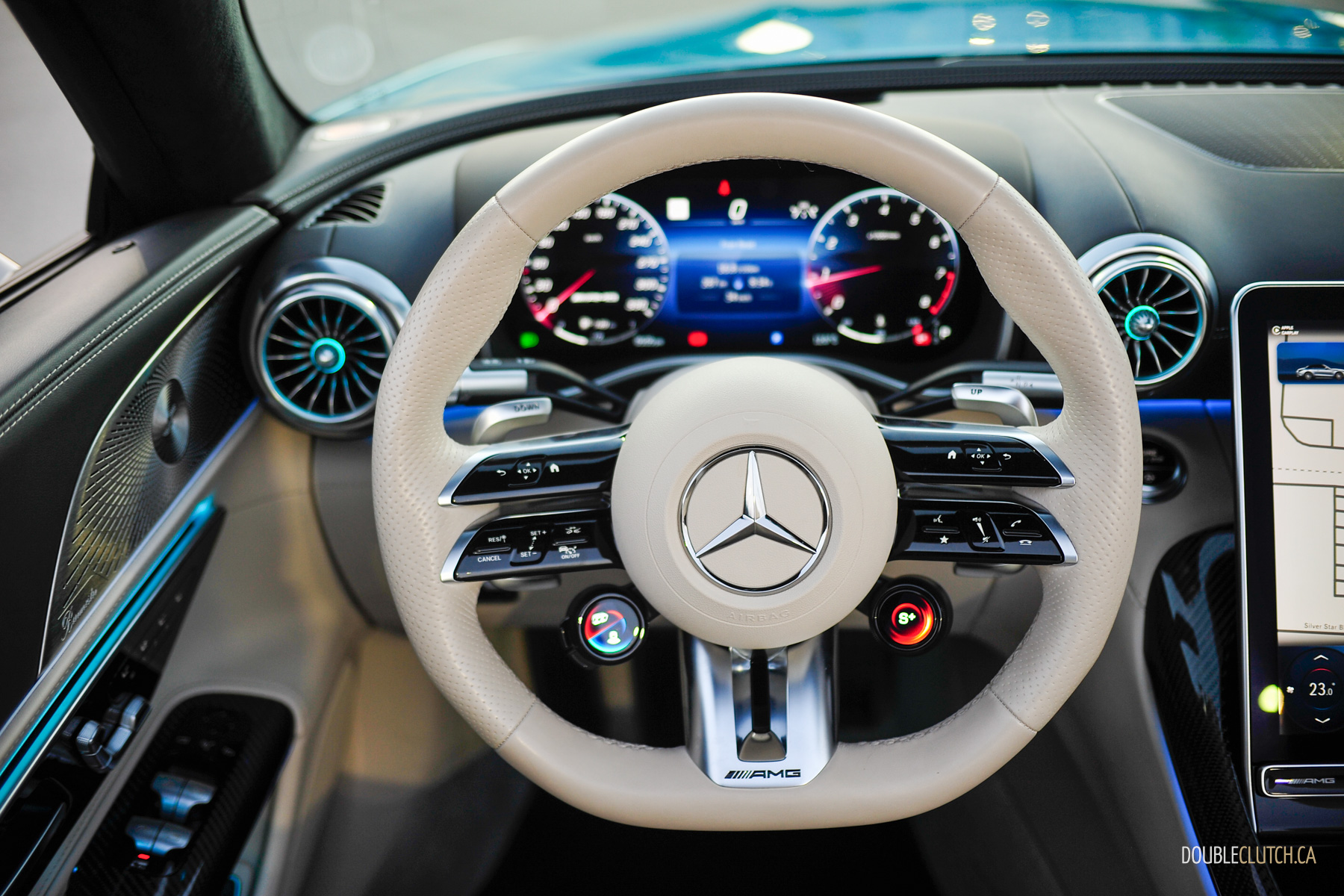 Complimenting this exterior is an equally stunning Nappa leather interior finished in Macchiato Beige with a colour-matched leather steering wheel that feels extremely nice to use. The contrasting black upper door panels and dashboard is a nice touch, as it reduces glare compared to interiors that are monochromatic, such as the Lexus LC 500 I drove earlier this year. Most of this interior is either covered in leather or Alcantara, making you feel that you are cocooned in only the finest of materials. To hit home that you are in the peak of Germany luxury, these seats naturally are heated and cooled, but also offer a neck scarf to keep your neck warm when you do go top down on a chilly day. To top it all off, these seats also offer a massage function, with three different modes to choose from.