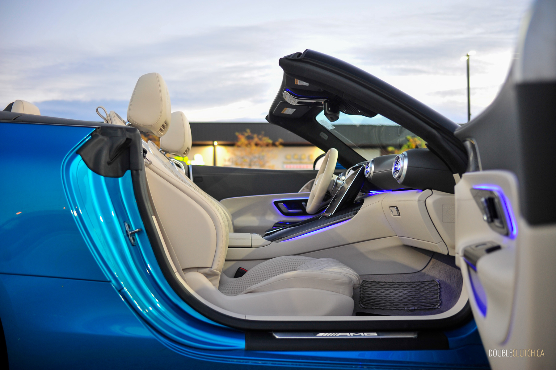 The exterior design continues the current Mercedes design language of Sensual Purity, balancing clean lines and flowing surfaces that optimize functionality and aerodynamics. Finished in this Hyper Blue Metallic, it helps highlight this design language while keeping true to classic roadster proportions with its long hood and short rear overhang. With the chrome accents along with these gorgeous 21-inch mesh wheels, the brightwork is honestly a breath of fresh air considering most performance-oriented vehicles tend to be optioned with black wheels and blacked-out exterior accents. To some people, this exterior is old-man spec. I’d say it’s refreshingly classy.