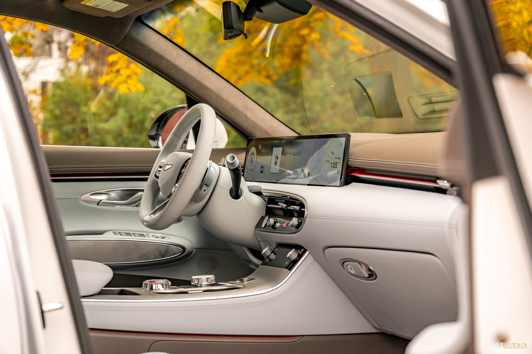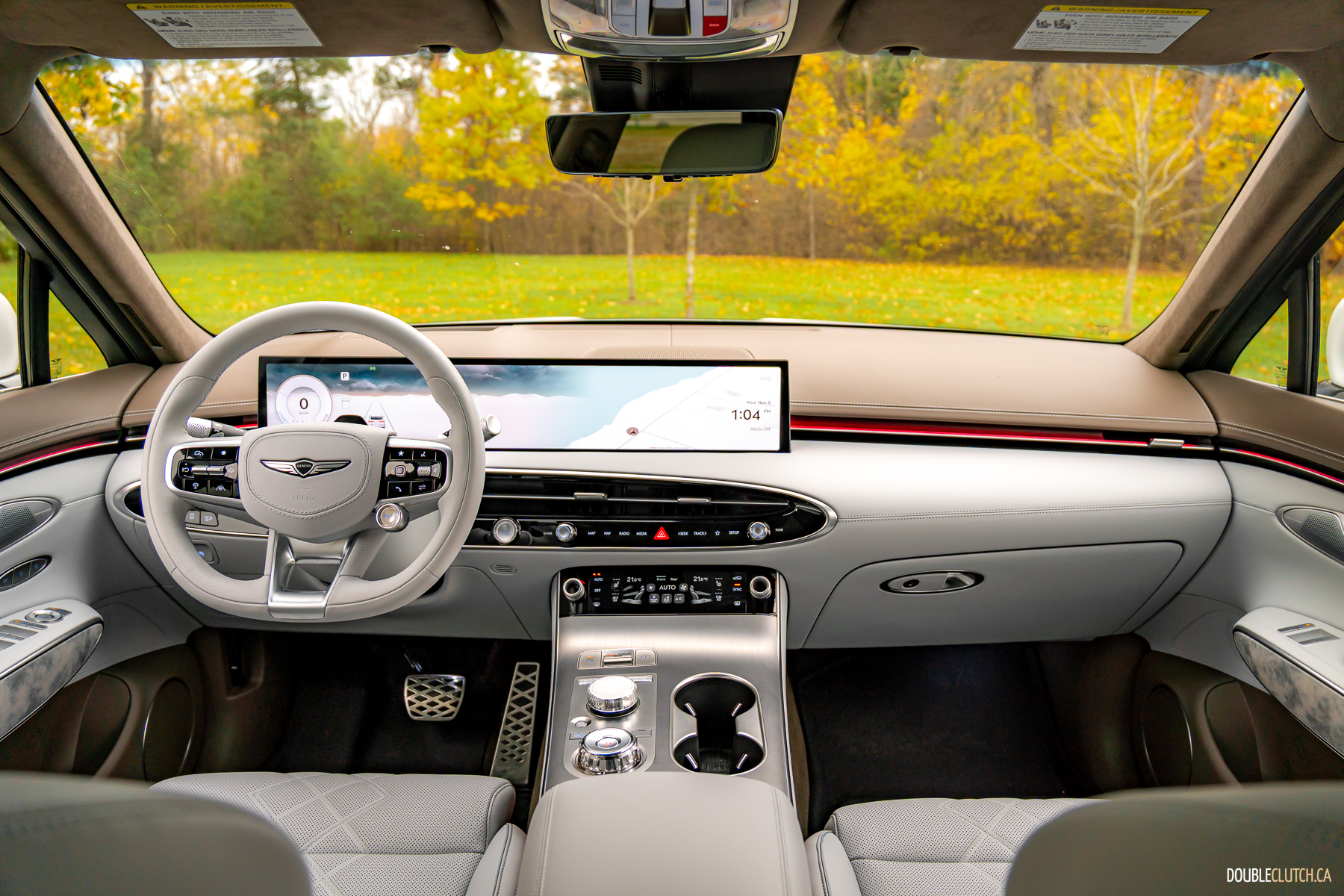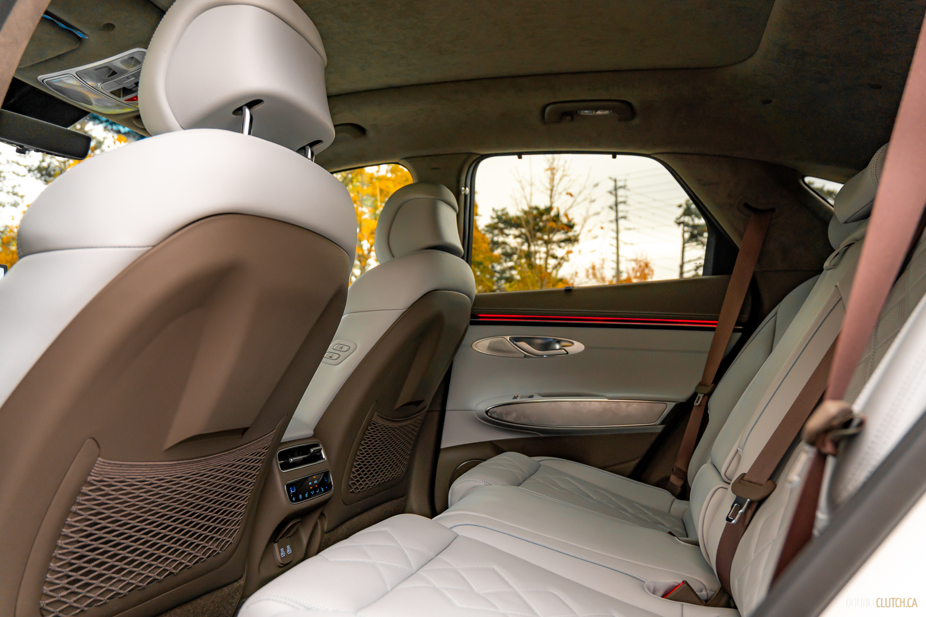 Inside the Electrified GV70, you are treated to the exact same interior you would find in updated the gas-powered model. This is a good thing, as the GV70 has one of the best interiors; not just in the segment but the industry overall. The design is modern yet clean, the quality of the materials used throughout punches above its price range, the build quality is excellent, and the technology used throughout is simple to use. Our tester was the Prestige trim level, which includes features such as Nappa leather, a Bang & Olufsen premium audio system, a head-up display, heated and ventilated front seats, heated second-row seats, a microfibre suede headliner, and several other items.