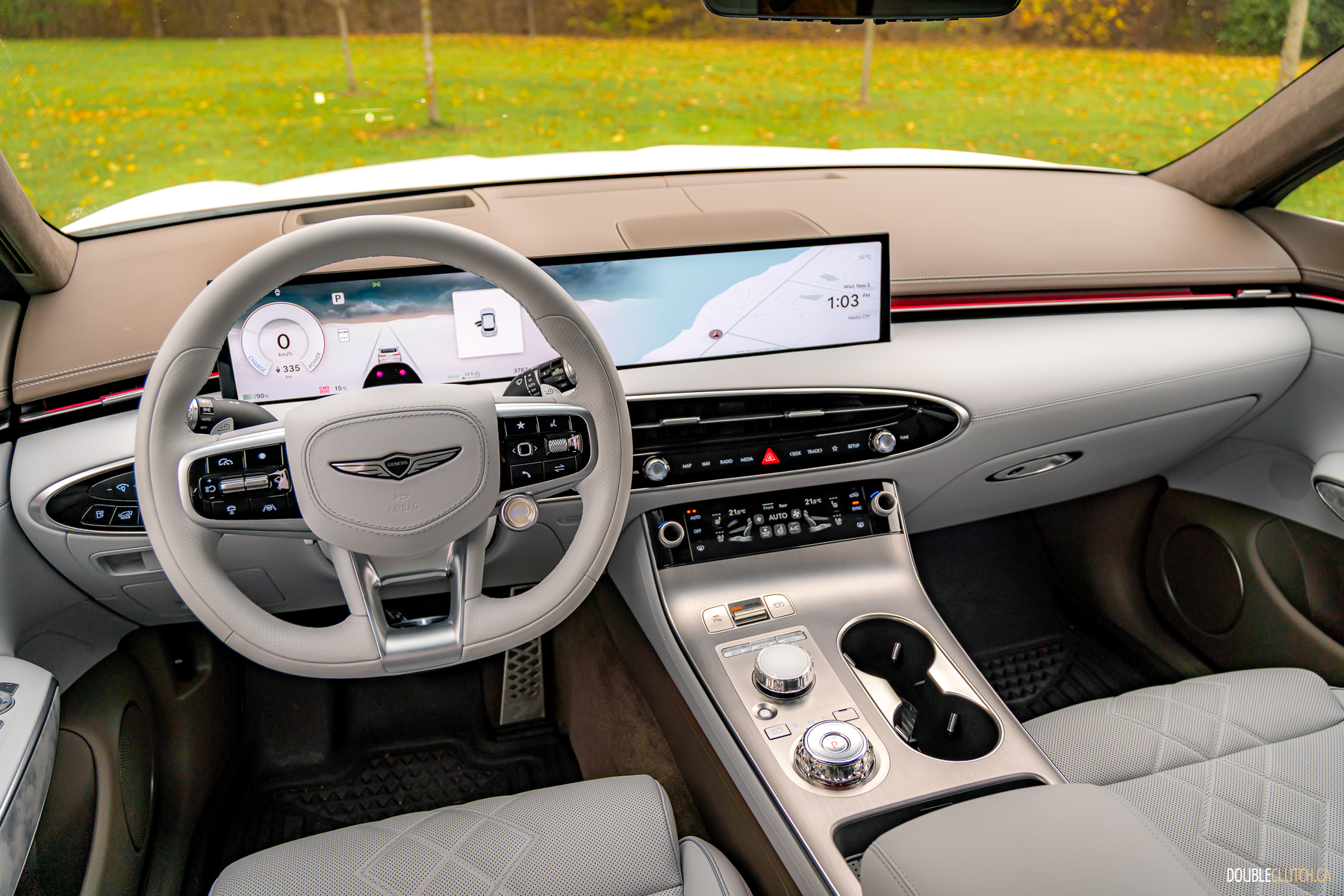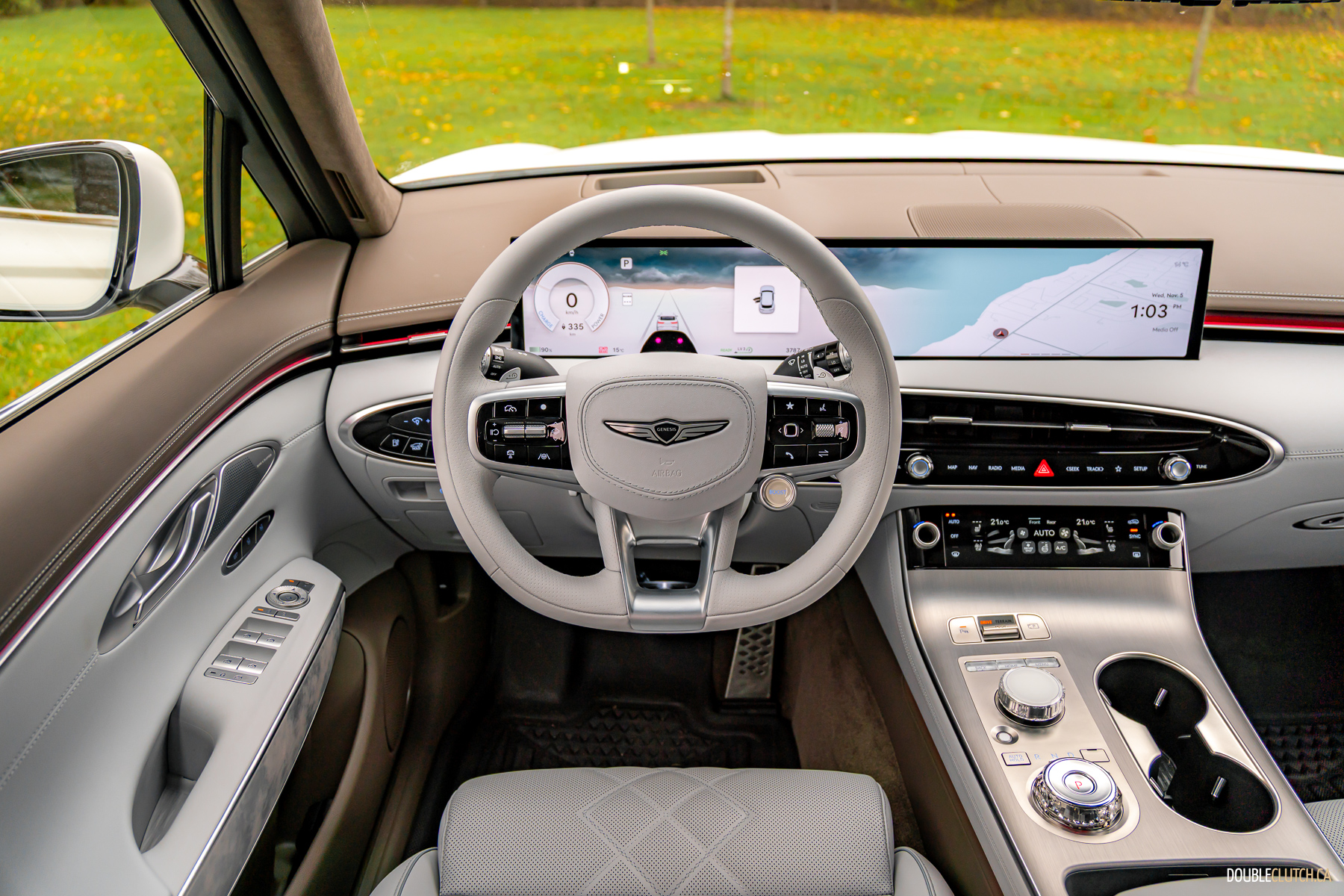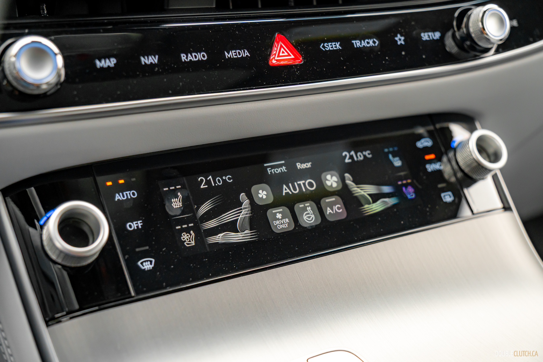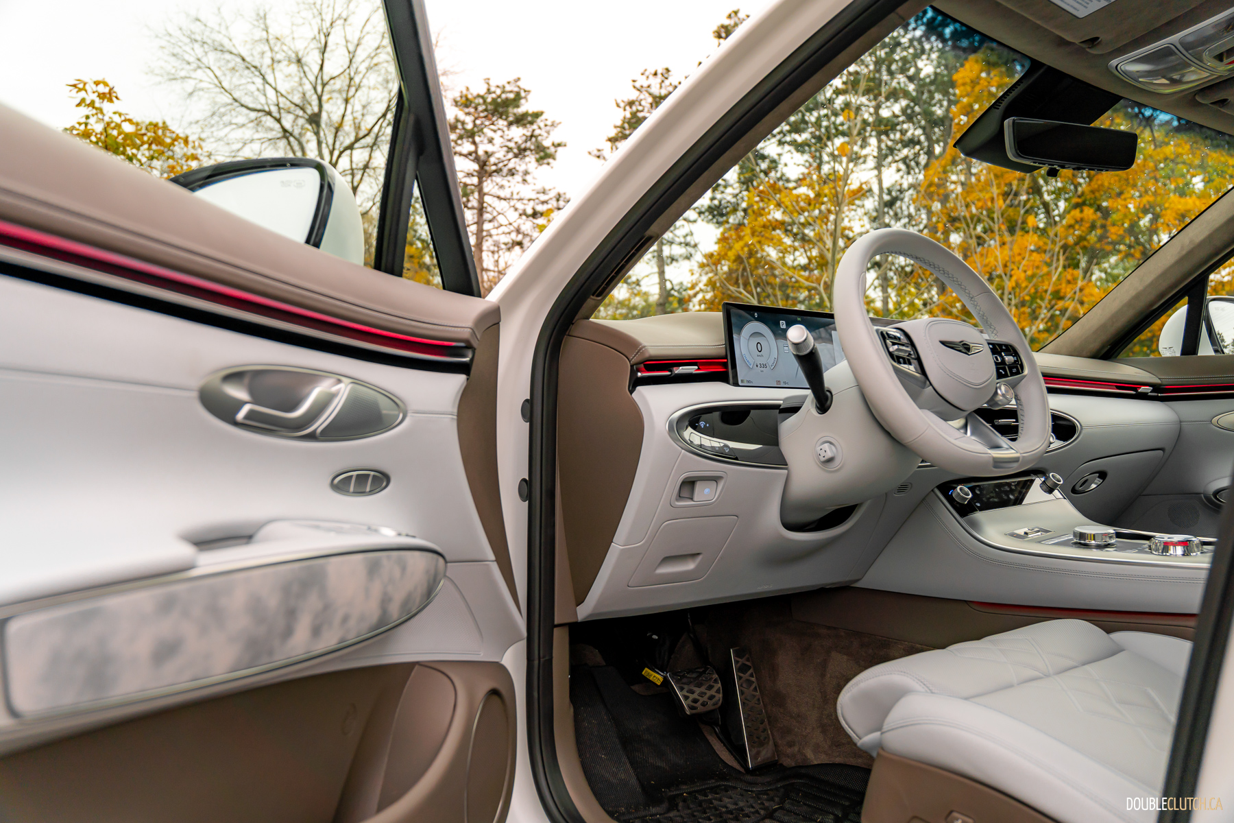 Inside the Electrified GV70, you are treated to the exact same interior you would find in updated the gas-powered model. This is a good thing, as the GV70 has one of the best interiors; not just in the segment but the industry overall. The design is modern yet clean, the quality of the materials used throughout punches above its price range, the build quality is excellent, and the technology used throughout is simple to use. Our tester was the Prestige trim level, which includes features such as Nappa leather, a Bang & Olufsen premium audio system, a head-up display, heated and ventilated front seats, heated second-row seats, a microfibre suede headliner, and several other items.