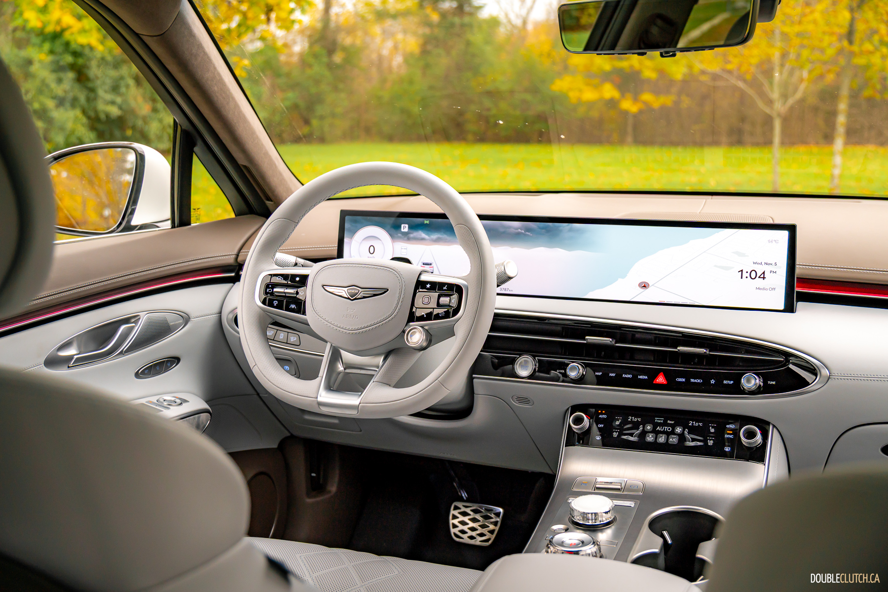 The 2026 Genesis GV70 Electric has an all-new 27-inch OLED display for the gauge cluster and infotainment system. It’s super clear, snappy, and easy to use. In addition to the normal drive-mode options, Genesis has added a terrain option for those who plan to take their luxury EV up to cottage country. Wireless Apple CarPlay and Android Auto are now standard, along with over-the-air updates and a wireless phone charger that is perfectly placed for easy access.