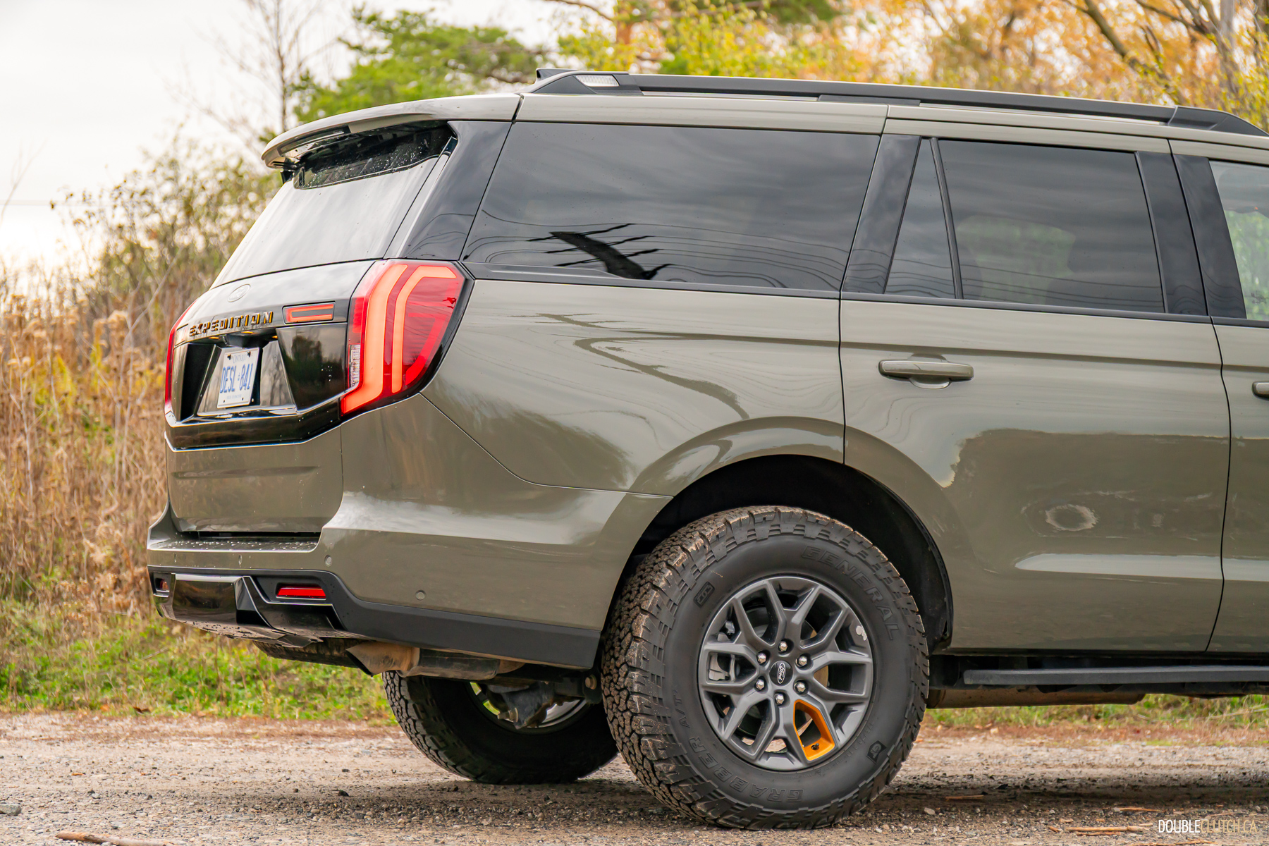 The Ford Expedition is instantly recognizable as a Ford truck, with a tough mug and signature “Electric Spice” orange highlights that identify it as a Tremor, with even the 18-inch wheels getting a single orange pocket for visual pop. Visually, it is significantly more aggressive than the gentile Jeep with its militaristic Wild Green gloss paint, aforementioned orange accents, and larger, knobbier rolling stock. Style is a matter of taste and Ford took a bold swing on this one, as every Expedition, regardless of trim or colour, has a black upper portion of its split tailgate. The jury is still out on whether or not this was a good idea, but the grumbling in the peanut gallery doesn’t sound good. Really, it comes down to how much you favour subtlety.