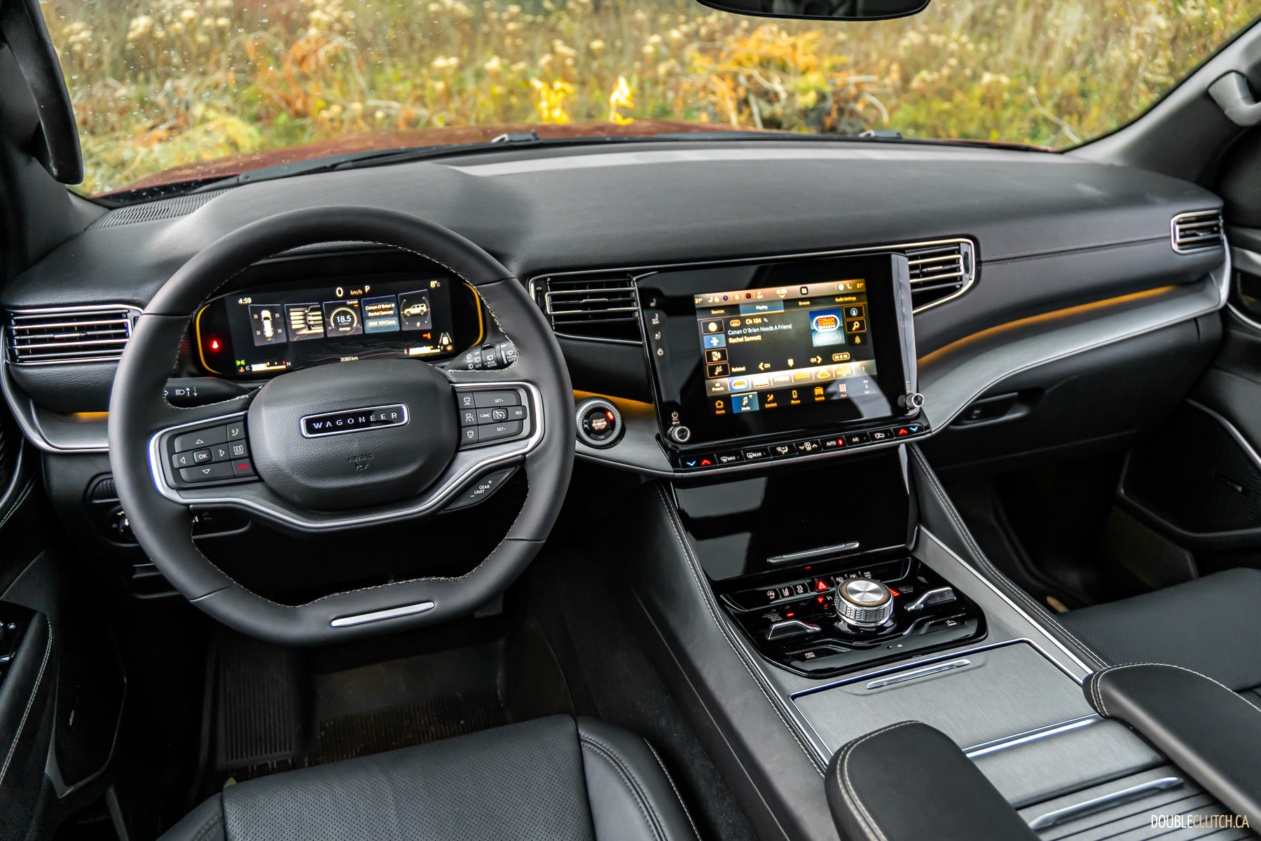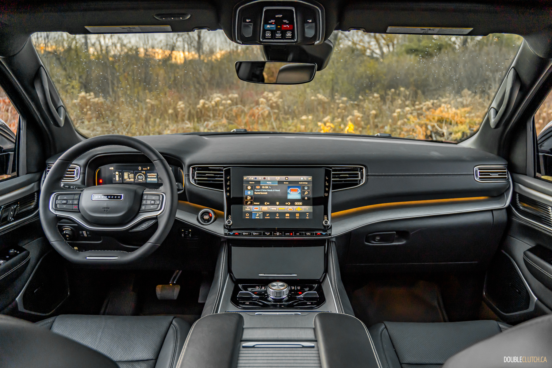 The Jeep Wagoneer, like the Ram 1500 it shares a platform with, is a nice truck, and feels like a nice truck. The chassis and suspension of the Wagoneer feel just as refined as its luxury-car powertrain, with its stiff structure and air suspension soaking up imperfections in the road as if they weren’t there. Steering is a touch on the slow side, but well weighted, precise, and deliberate – again, like a luxury car. Body control and handling are superb (for a bus), and it’s a satisfying thing to helm. Engine noise is barely there, and you wouldn’t guess you’re riding on all-terrain tires, as road and wind noise are so well insulated.