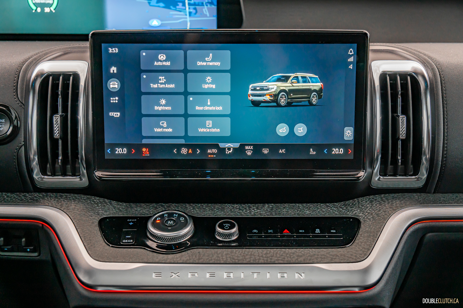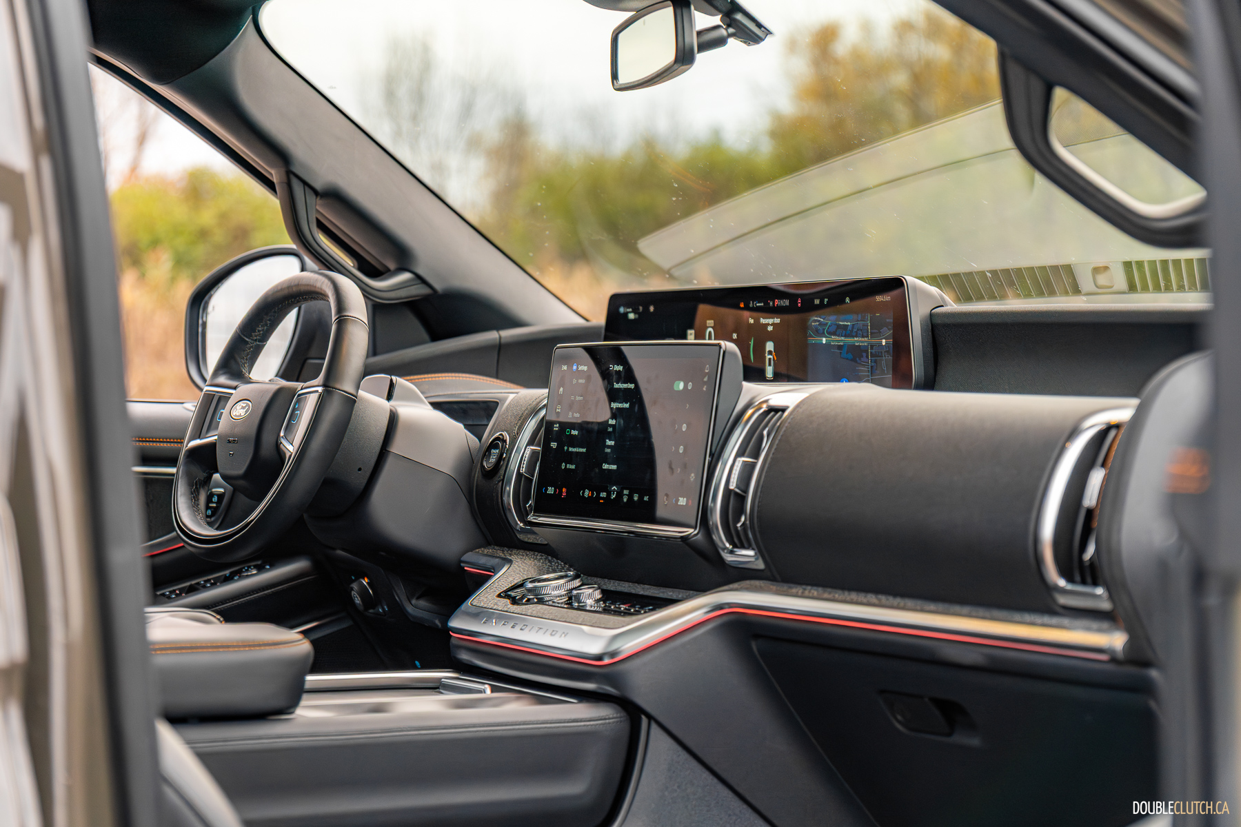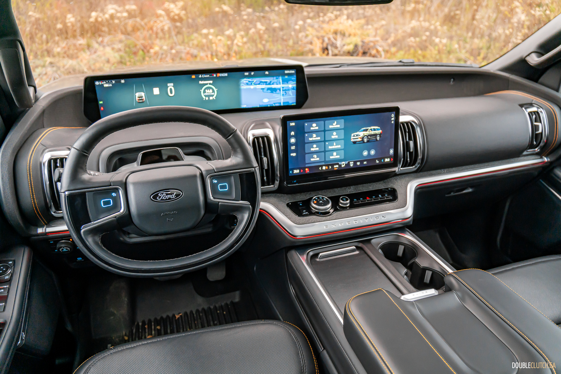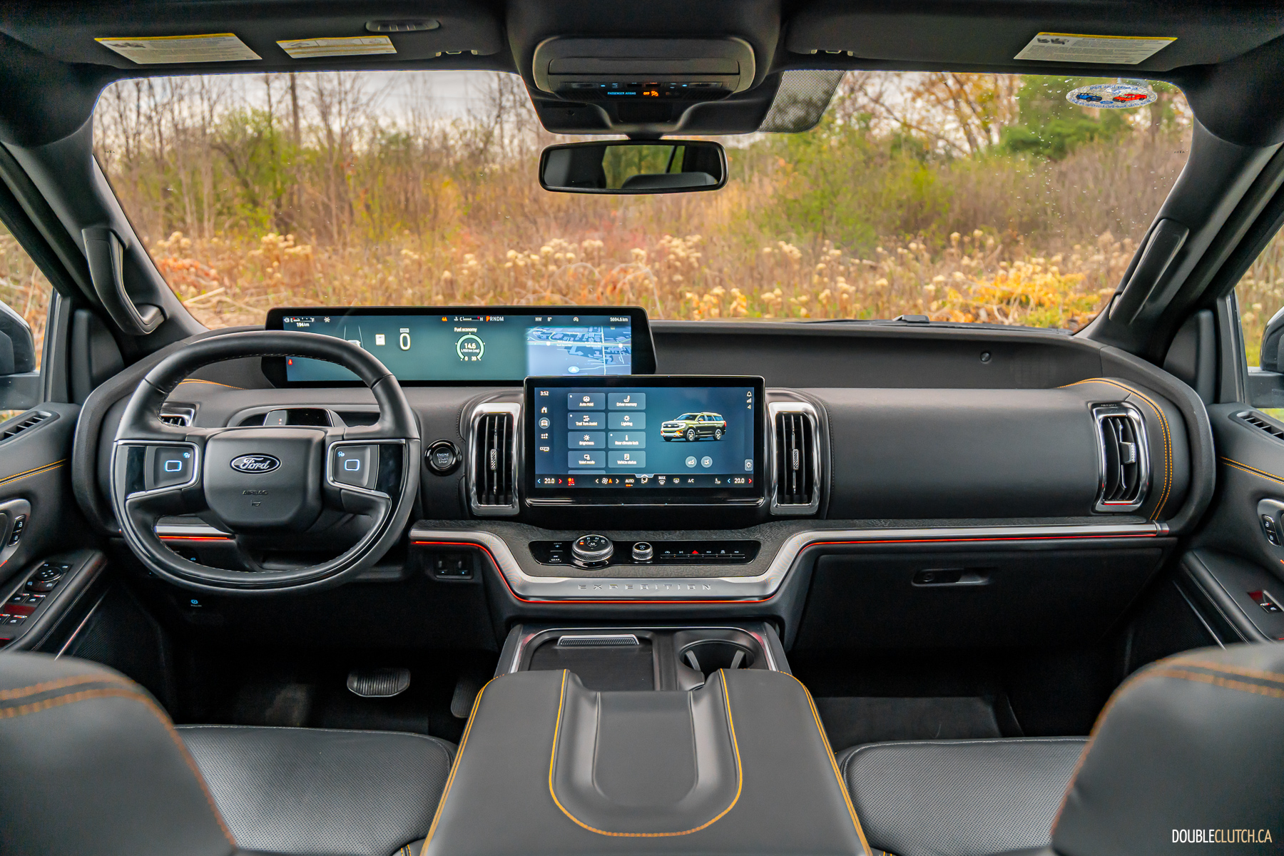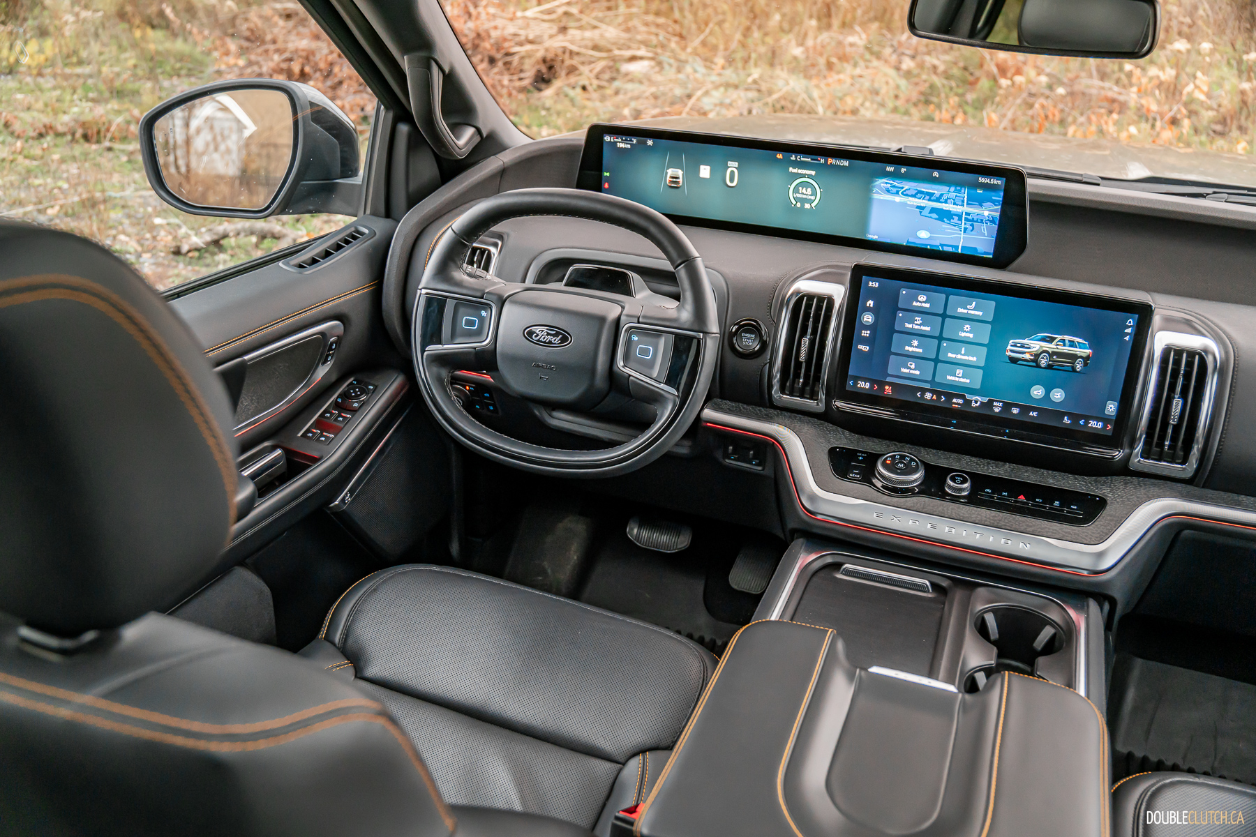 Both the Expedition Tremor and Wagoneer Overland come with modern basics like adaptive cruise control, blind-spot monitoring, lane-keep assist, and forward collision alert across all trims. They all work fairly easily and effectively, and take a lot of labour out of dull commuting and sitting in traffic. Both vehicles have surround-view cameras and lane-change cameras, but the Ford’s are sharper and have a higher refresh rate. Both of these buses have the ability to park themselves.