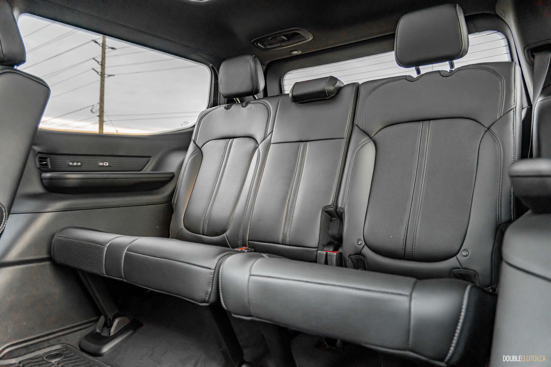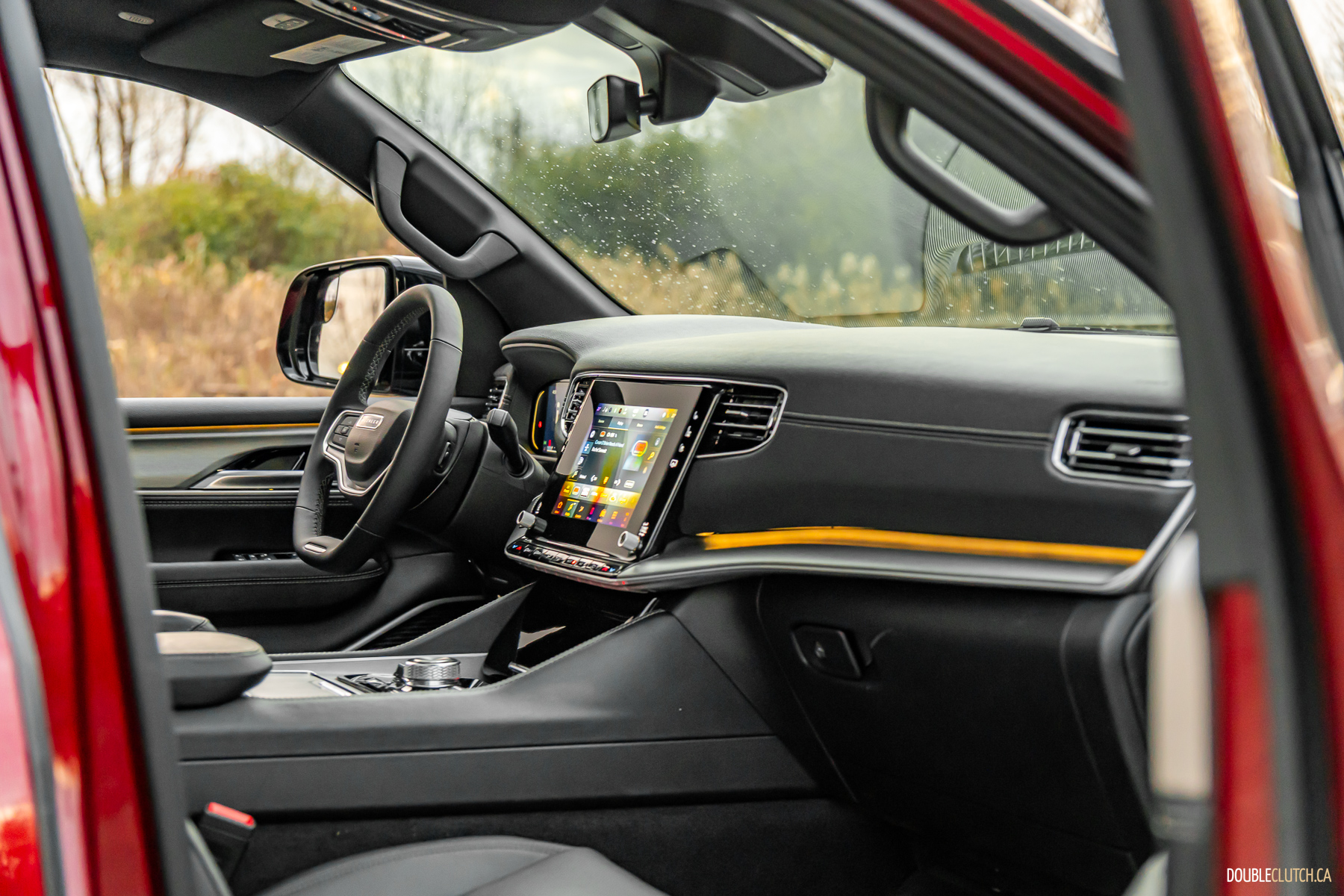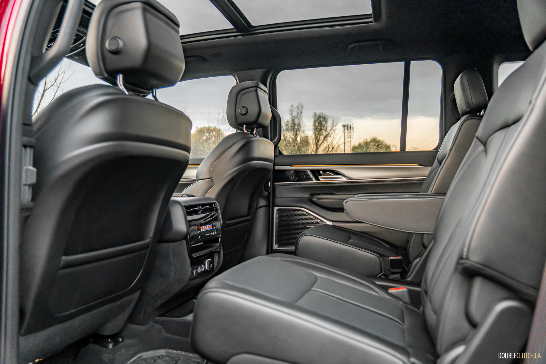 Jeep’s Wagoneer is a big truck with tons of space. The door pockets offer a lot of space, and the centre console has a deep, large storage area, a large covered cupholder with a standing nook for your phone, and a sizeable hidden compartment under the infotainment screen with a wireless charger. This model is fitted with second-row captain’s chairs, which easily fold out of the way at the touch of a button to allow easy access to a commodious third row. There’s 776 Litres of space behind the third row, and 2,000 L with the third row folded forward.