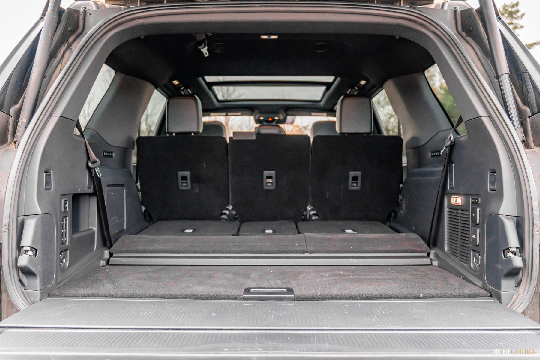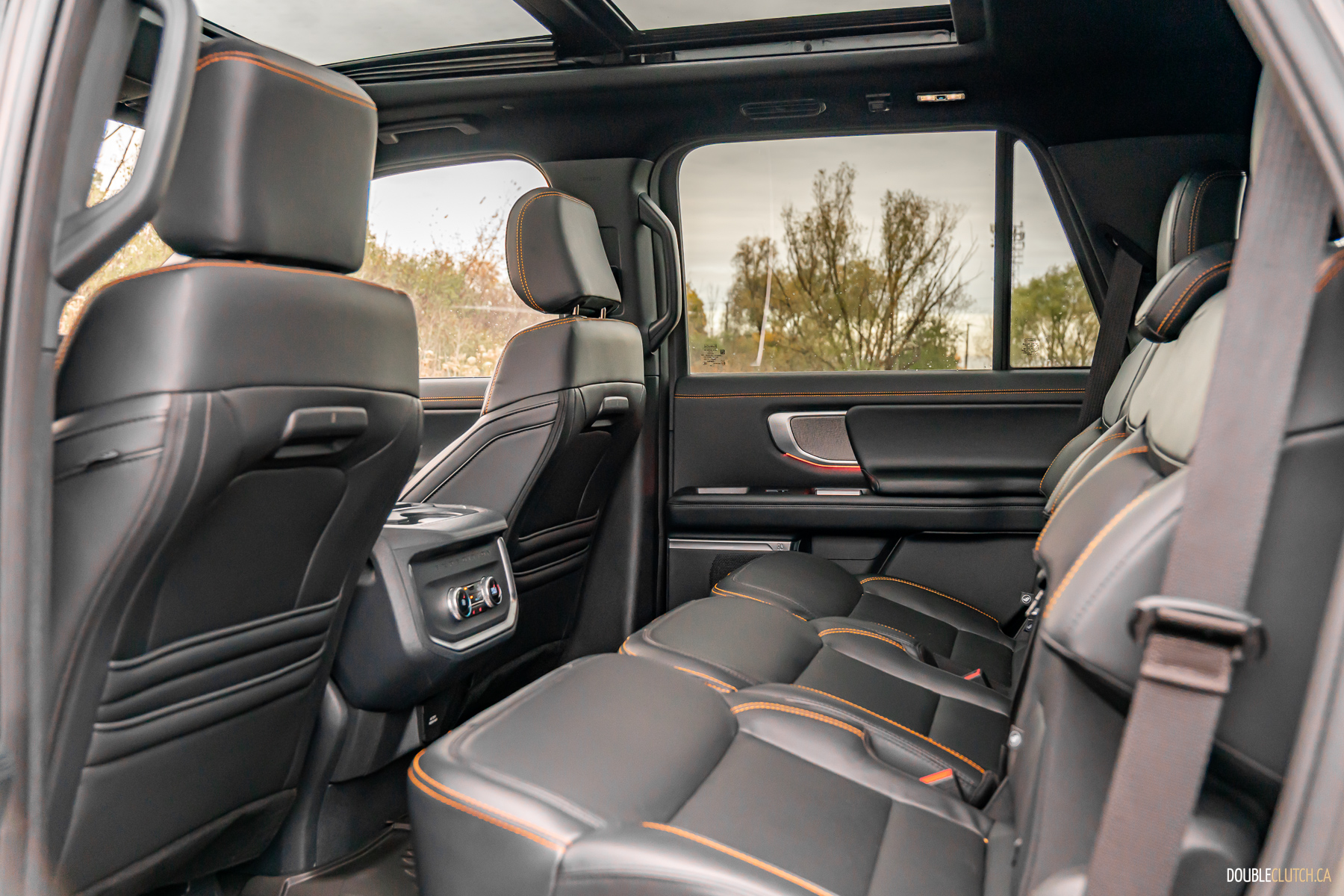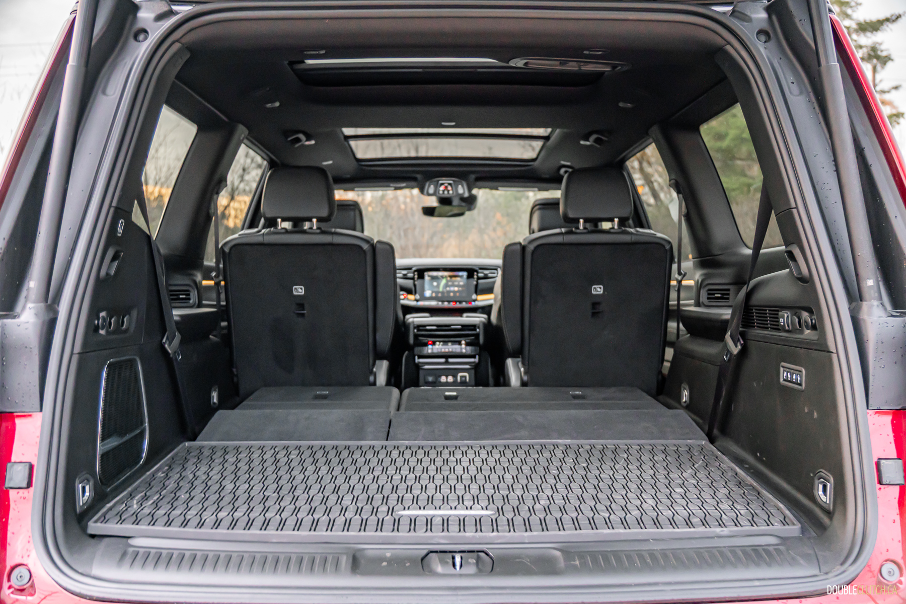 Despite being visually bulkier, the Ford Expedition is tad smaller, but smarter. The centre console has a thoughtfully arranged storage cubby with an angled wireless changing pad, there is a massive storage box (with a very usefully arranged tray) under the armrest, and the centre console can electronically slide out of the way to reveal yet another, large, lockable container underneath it all. This model has a split folding second-row bench that power-folds and lifts out of the way quickly, with a fairly generous third row, as well as a very useful split tailgate. While there is more nook & cranny storage, there is less outright cargo storage, with 612 L behind the third row and 1,722 L behind the second row. Despite having measurably less room, there’s still an abundance in every regard, and it’s a little more clever about using it.