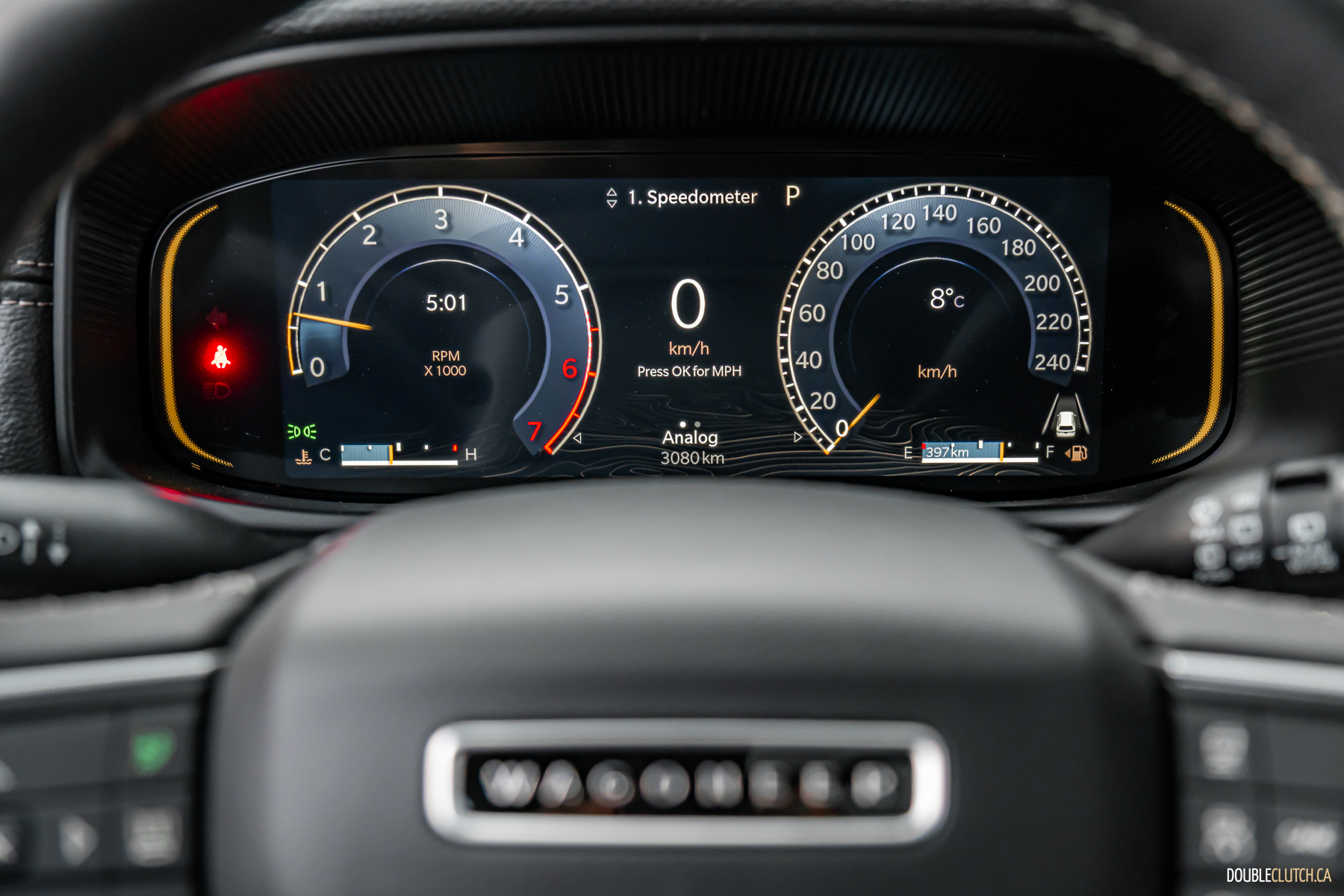 All Wagoneers, lesser and grander, are fitted with Stellantis’s new Hurricane 3.0-Litre, twin-turbocharged straight-six engine. This Overland is fitted with the standard output variant of the Hurricane, producing 420 horsepower and 468 foot-pounds of torque. It is an impressively quiet, smooth, and impeccably refined mill, with a broad torque curve and linear throttle response that would be well suited to a luxury car. It’s mated to an impeccably calibrated TorqueFlite 8-speed transmission, which is a not-so-secret rebranding of the inimitable “ZF8” gearbox that powers BMWs and Range Rovers alike. It’s quick, quiet, and effortless, with a soft baritone grumble when pushed.