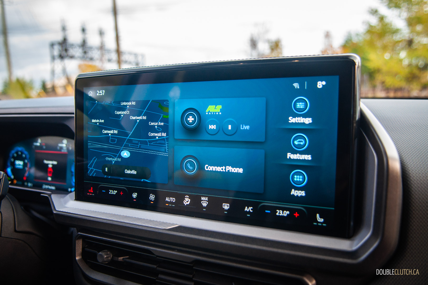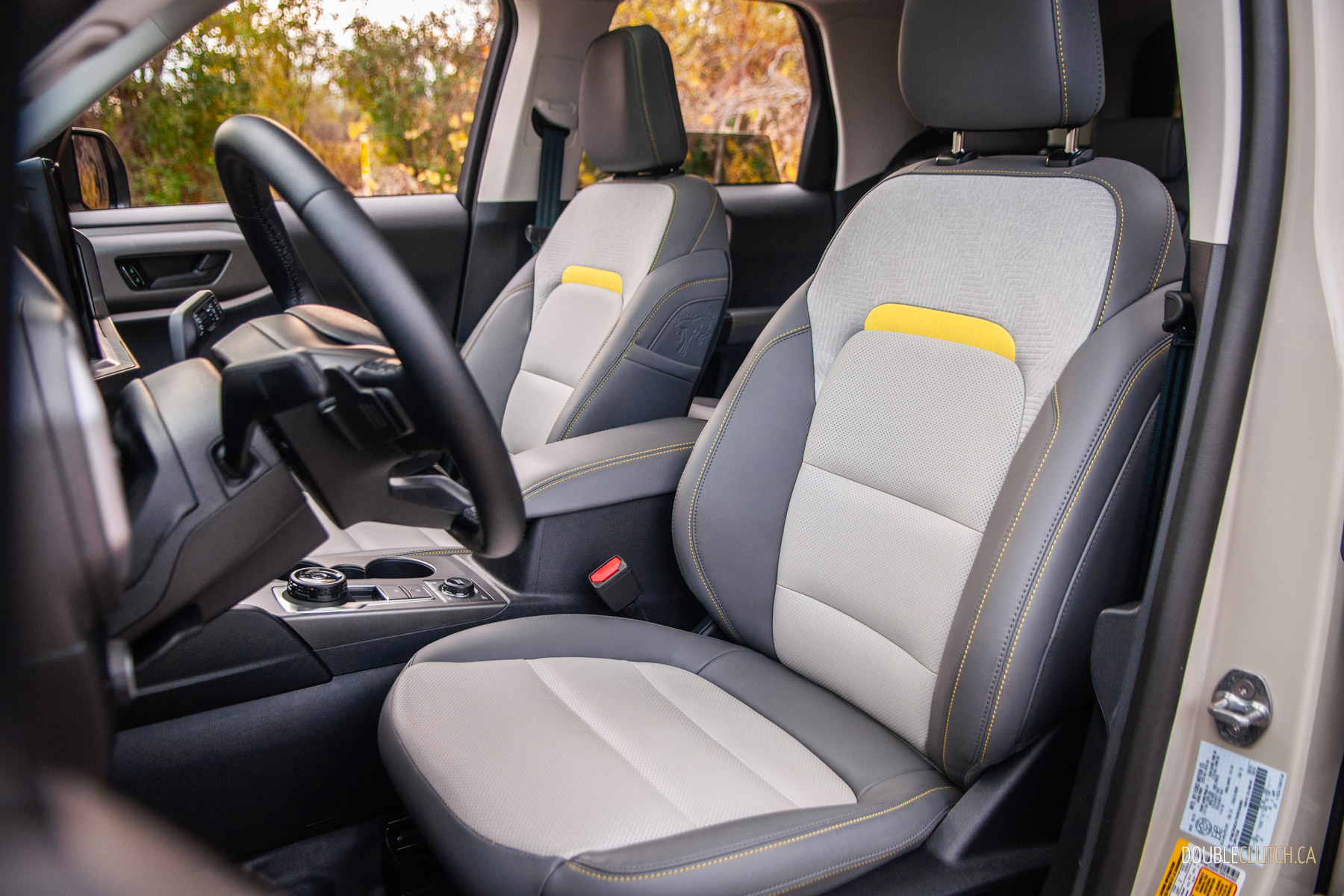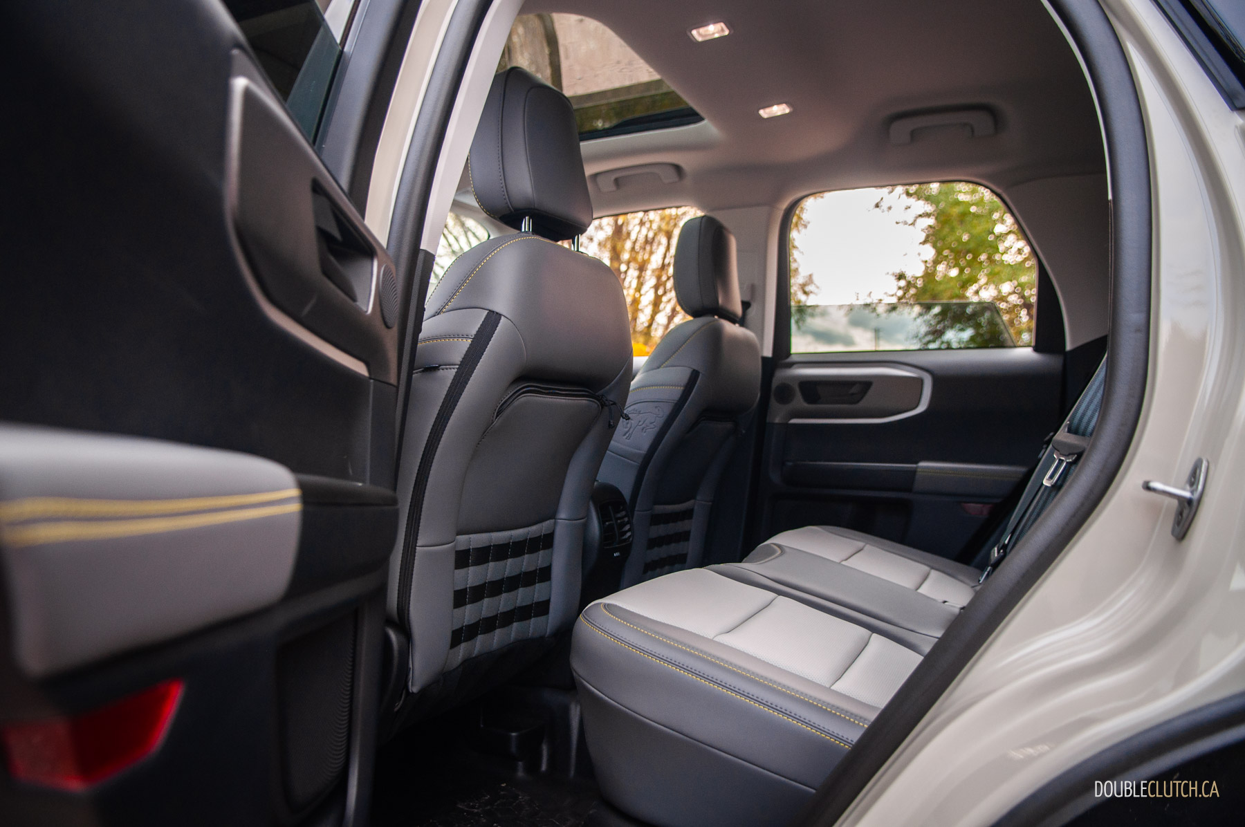 The Bronco Sport gets a mid-life refresh this year. Ford changed up the front and rear end a bit, gave the Bronco Sport some new wheel designs, made a bunch of previously optional safety tech now standard, and swapped out the screens you poke, prod, and stare at for larger units. The new 13.2-inch display protruding from the dash now includes the climate controls, but at least they stay on-screen all the time, and there’s still some physical switchgear down lower on the centre stack, thought the volume knob is a bit of a reach. Finally, a 12.3-inch display for the digital gauges replaces the part-digital, part-analog setup from before.