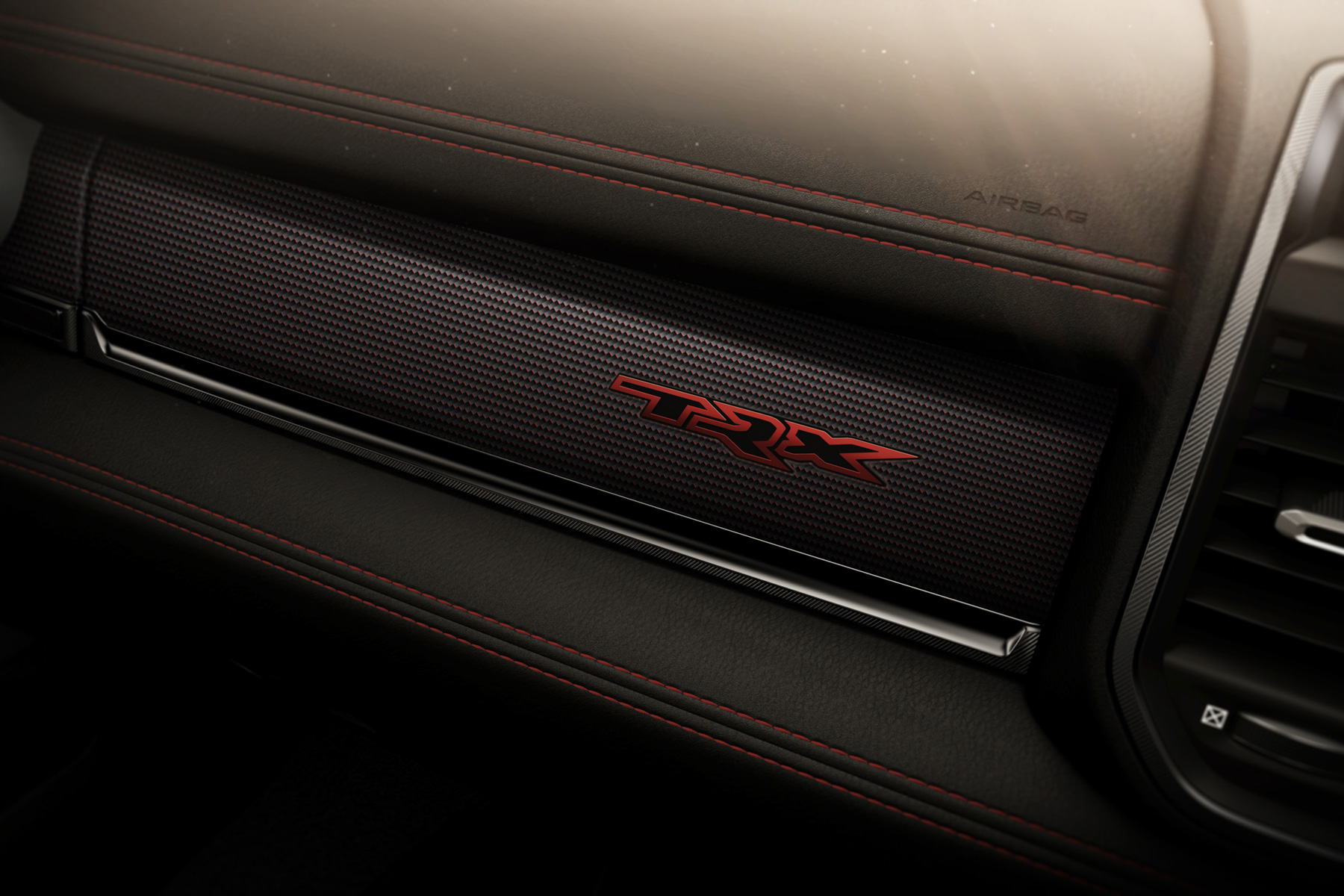 The rest of the 2027 TRX’s interior is familiar if you’ve spent any time in a new Ram. You get bells-and-whistles like wireless CarPlay and Android Auto, wireless charging, massage seats, a 19-speaker Harman Kardon sound system, and Ram’s full suite of active safety and driver assists to go along with the macho TRX dress-up. That includes, but is not limited to, TRX logos everywhere, contrast red stitching and trim, and real carbon fibre and metal accents.
