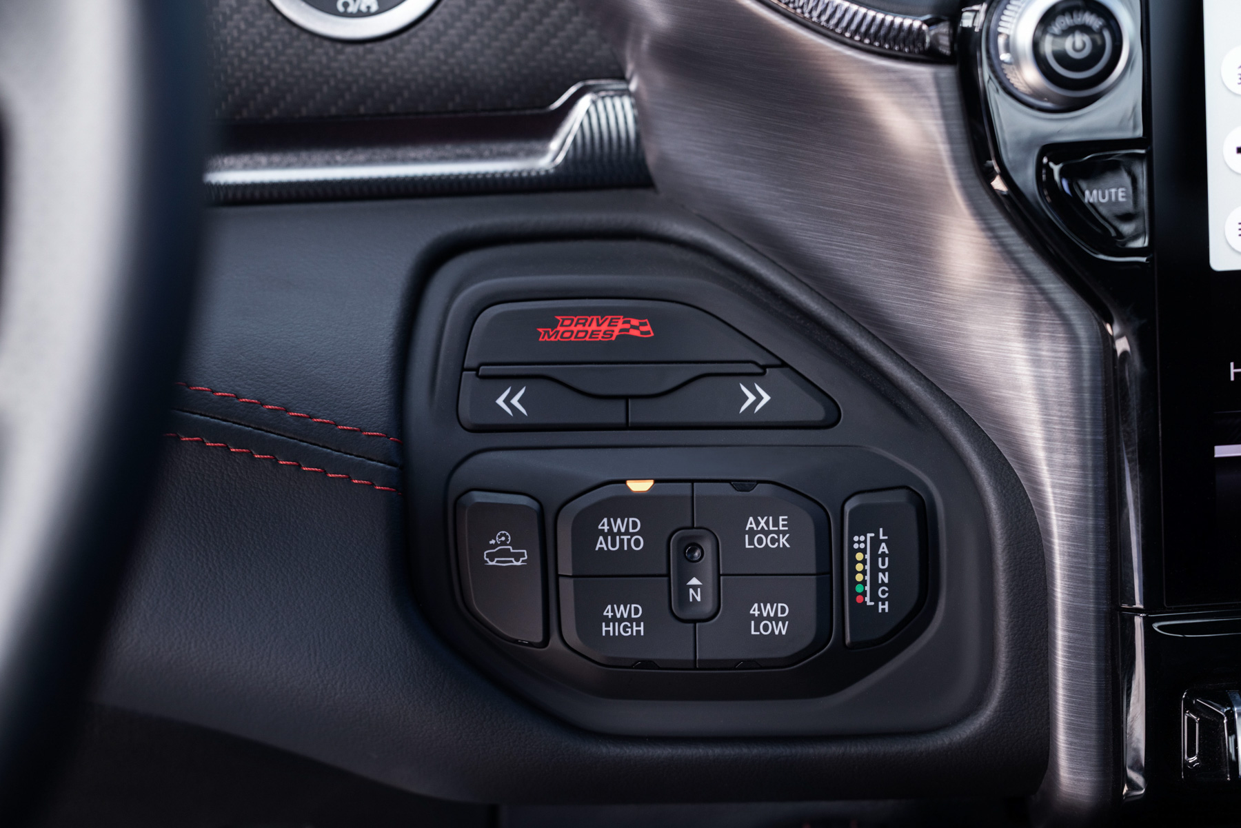Inside, Ram brings the TRX into 2027 with the same interior layout as the rest of the lineup, anchored by a 14.5-inch touchscreen running Uconnect 5. That works with a customizable 12.3-inch digital gauge cluster and a full-colour heads-up display. Balancing out the screens is a healthy array of physical switchgear throughout, including a clearly labelled launch control button on the steering wheel. Convenient!