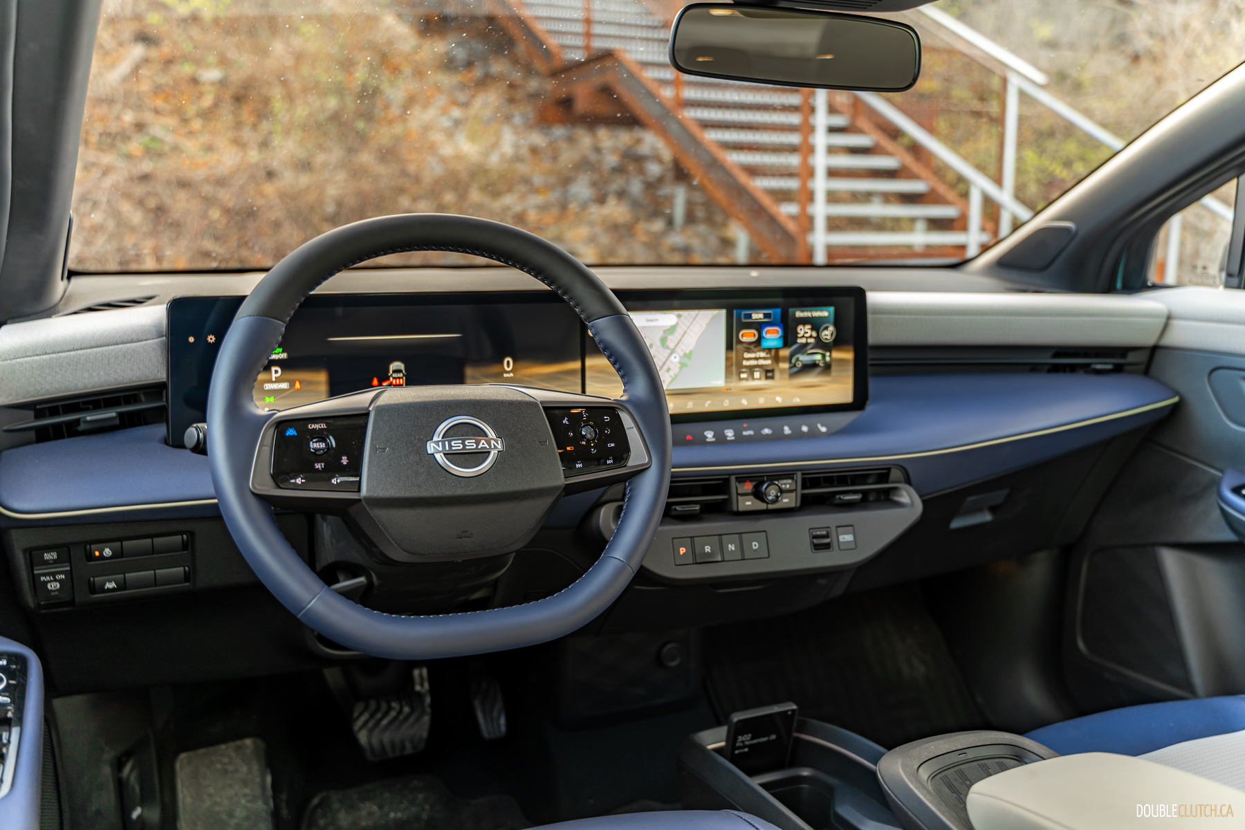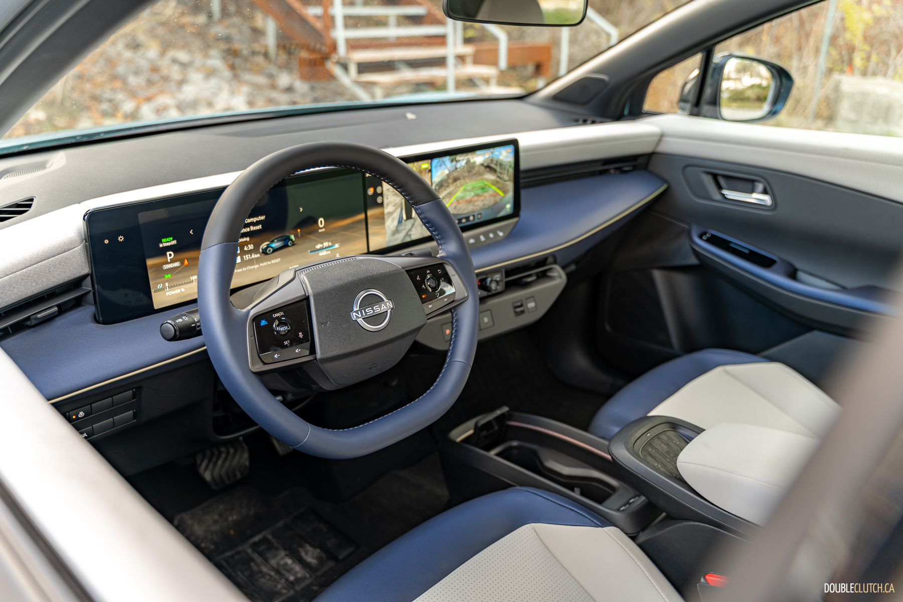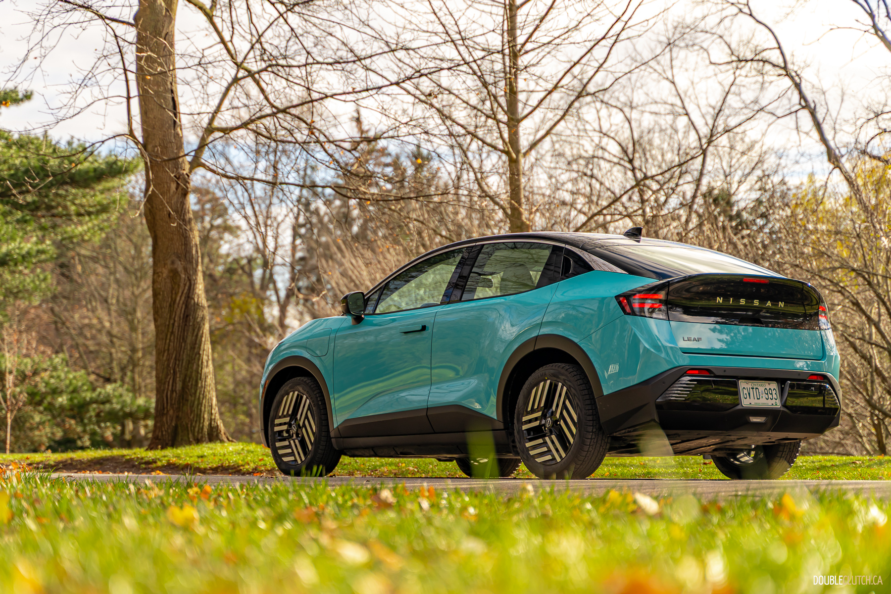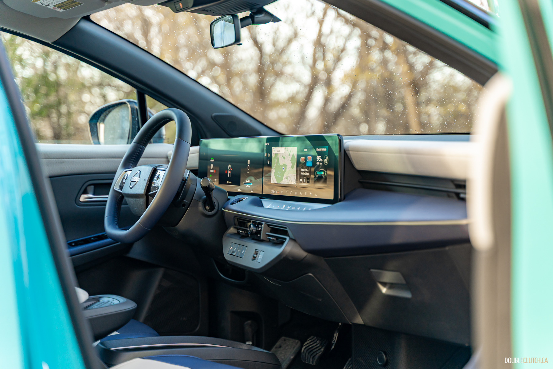 The original Nissan Leaf was a quirky little EV hatchback that was earnest, if maybe a little awkward. It didn’t look attractive, but it did attract attention. The second-generation Leaf had a more mainstream design and was, in my view, the best-looking of all three generations. Our 2026 Nissan Leaf is a love-it-or-hate-it design – I can’t not see Pontiac Aztek with the blacked out portion of the rear end. The two-tone colourway with Seabreeze Blue Pearl paint stands out, but it’s not for everyone. Regardless of whether or not you like it, it is very aerodynamically efficient with a drag co-efficient of just 0.26cd, enabling far better range than ever before – more on that later.