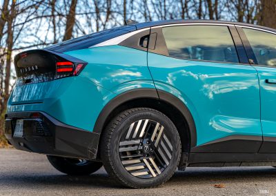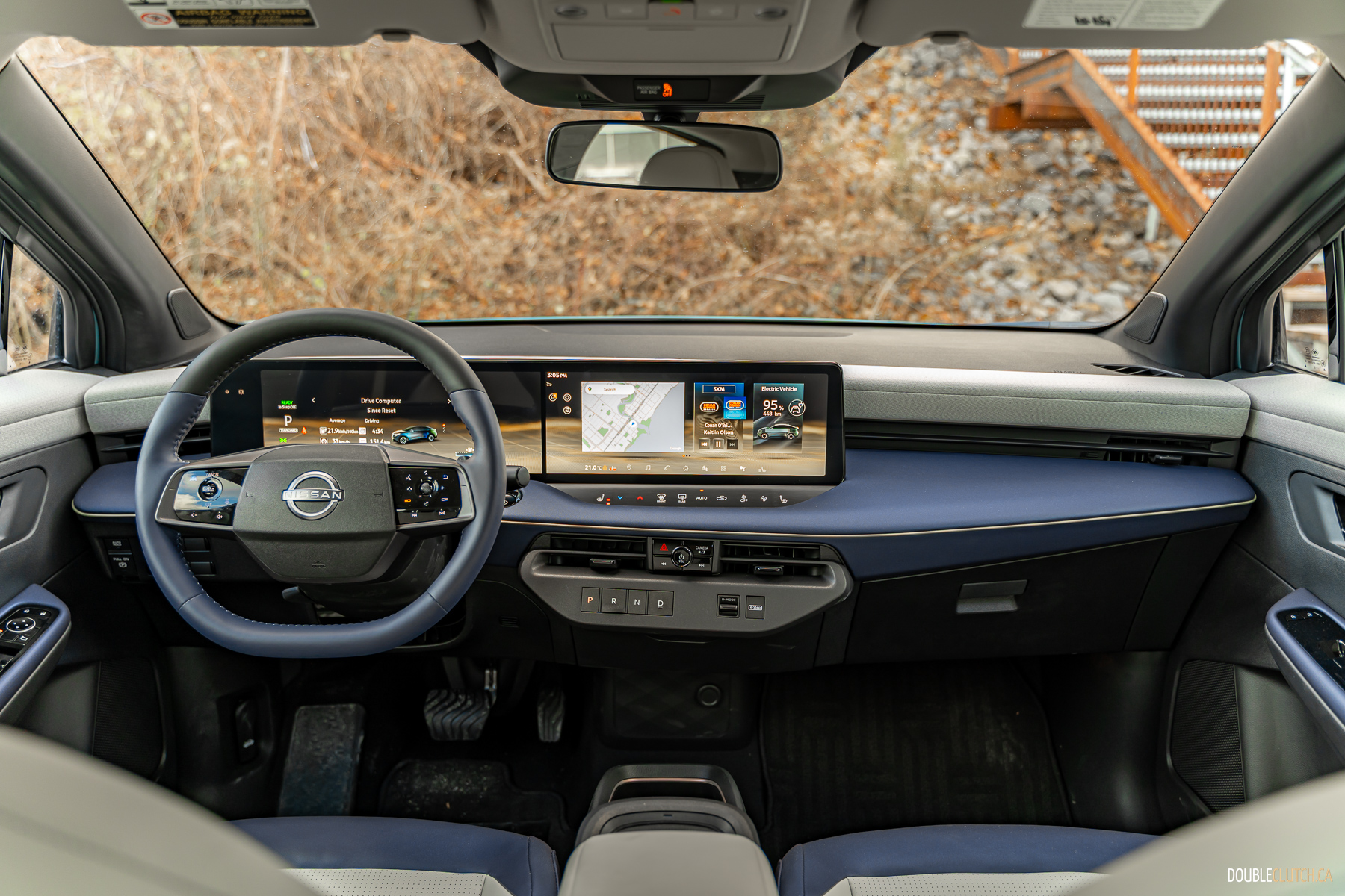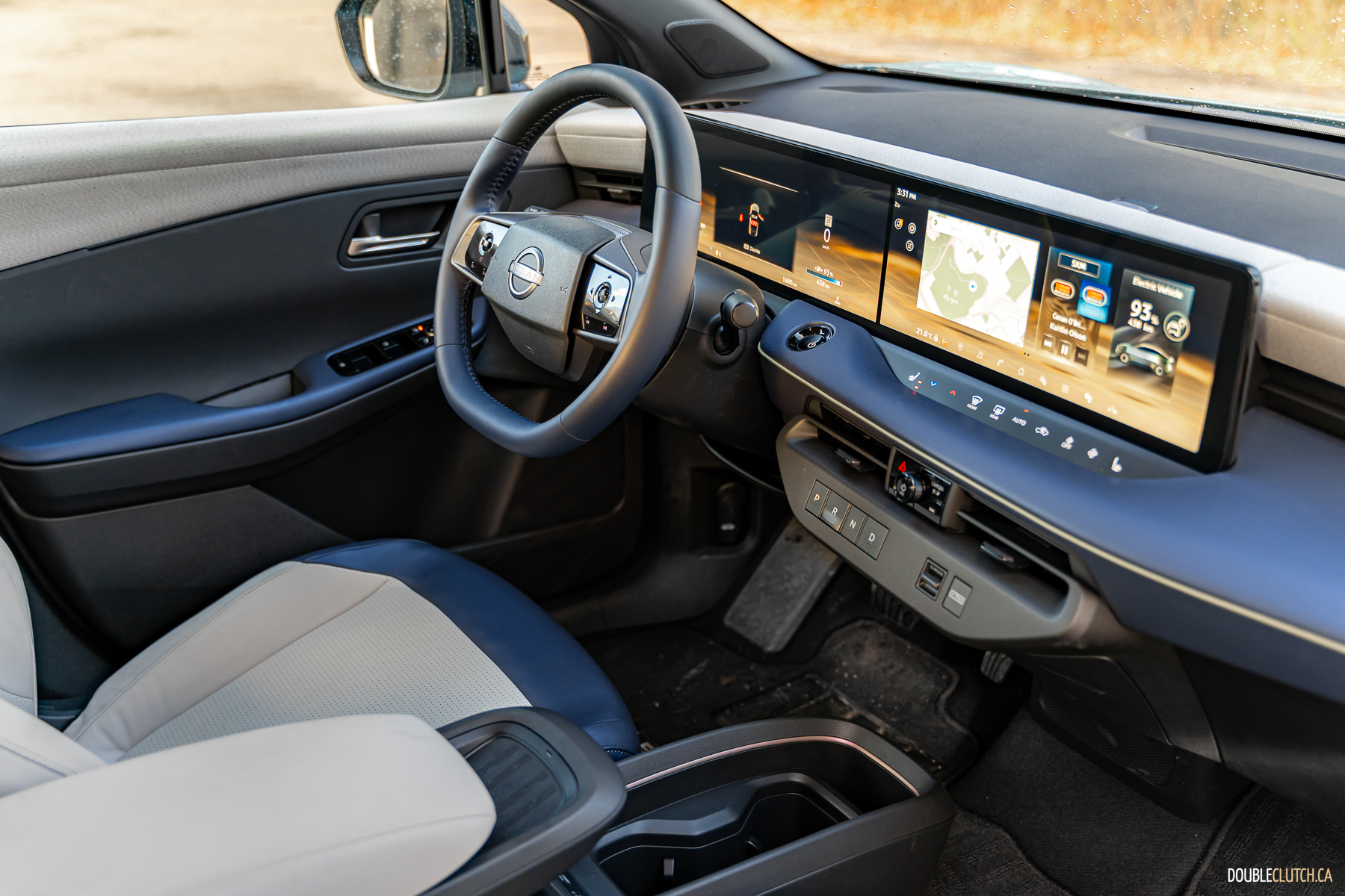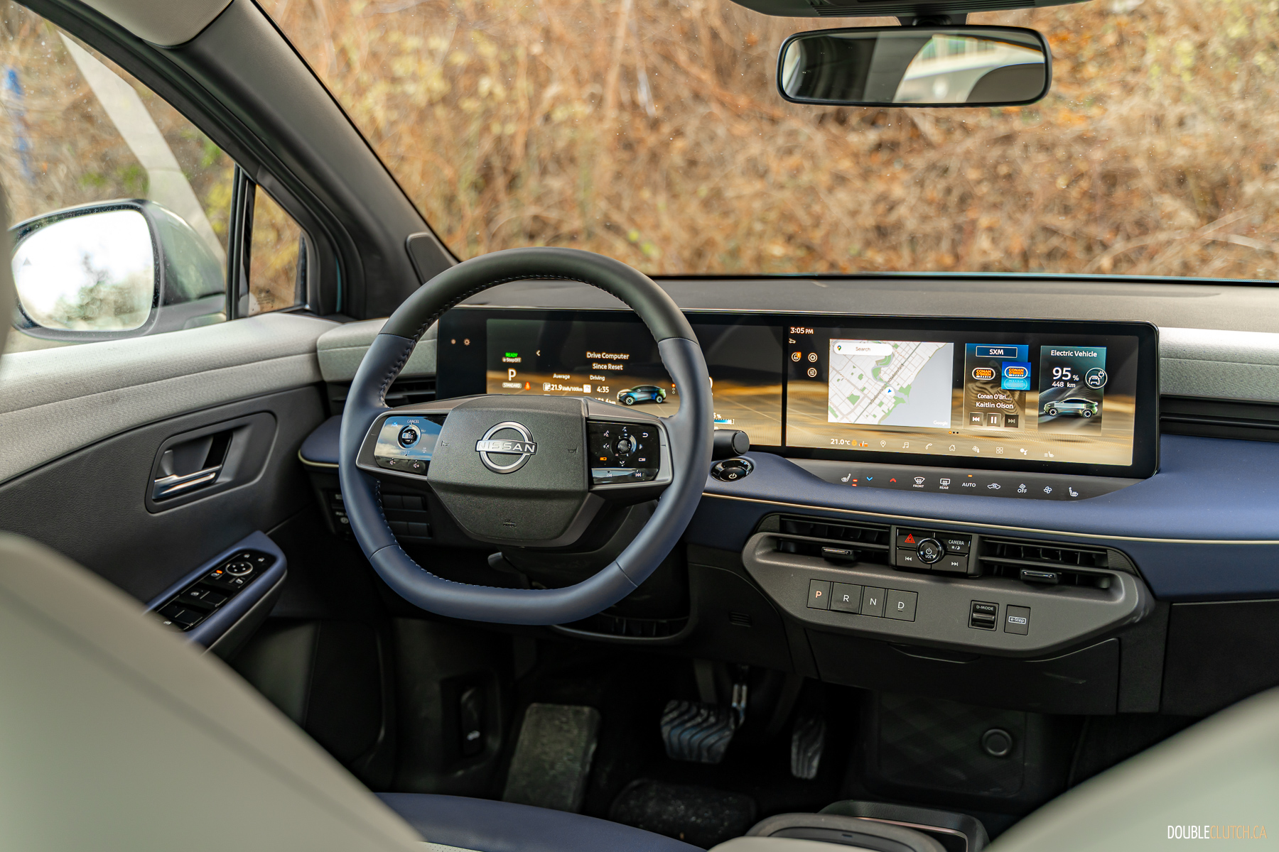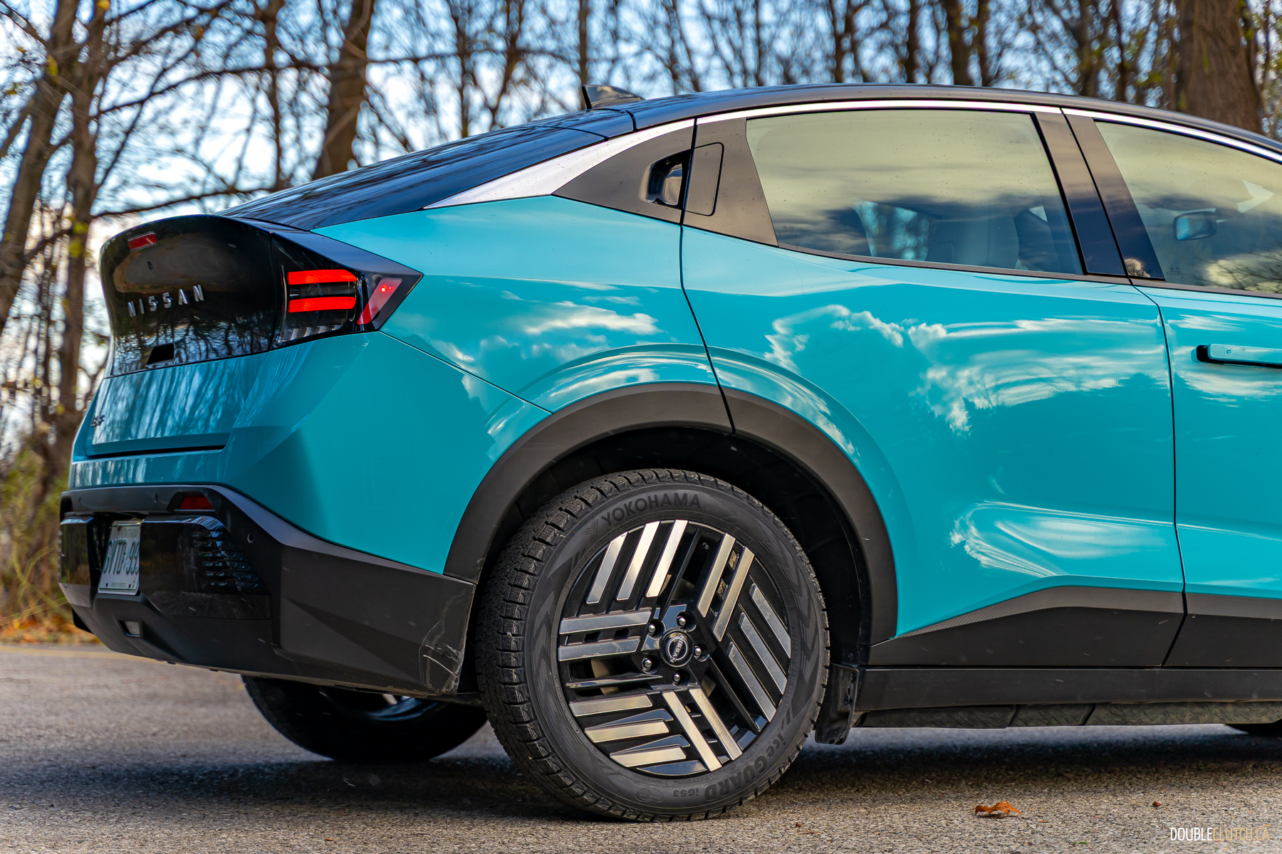 The original Nissan Leaf was a quirky little EV hatchback that was earnest, if maybe a little awkward. It didn’t look attractive, but it did attract attention. The second-generation Leaf had a more mainstream design and was, in my view, the best-looking of all three generations. Our 2026 Nissan Leaf is a love-it-or-hate-it design – I can’t not see Pontiac Aztek with the blacked out portion of the rear end. The two-tone colourway with Seabreeze Blue Pearl paint stands out, but it’s not for everyone. Regardless of whether or not you like it, it is very aerodynamically efficient with a drag co-efficient of just 0.26cd, enabling far better range than ever before – more on that later.