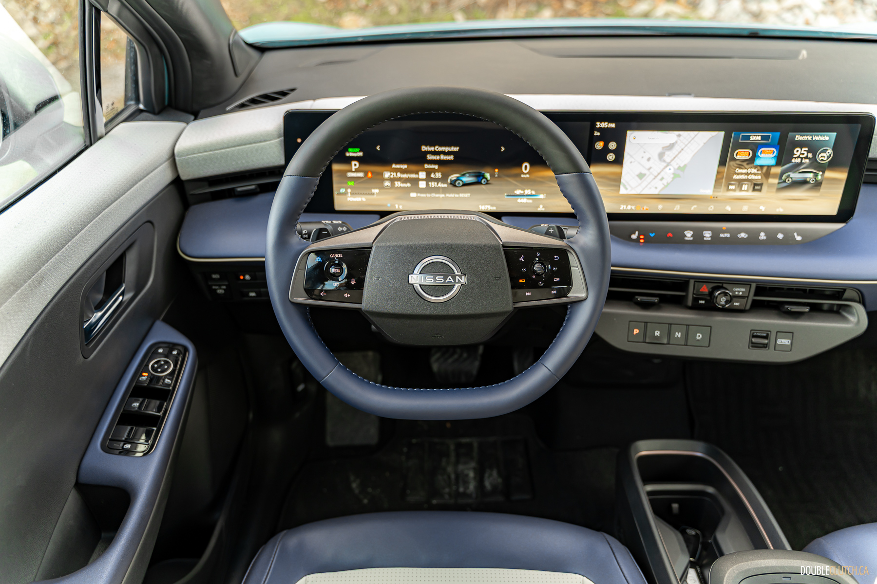 Perhaps the biggest highlight of the new leaf is its greatly improved battery and charging technology. The original Leaf was so early to market that it lacked any real provisions for thermal management, which reared its ugly head as a big problem in colder climates. That is no longer the case with new Leaf, with all models (in Canada) using a 75kWh battery managed by a standard heat pump that ties into the motor, inverter, and cabin for maximum efficiency. For added flexibility, the Leaf has a both standard J1772 charge port like you’d find on a Level 2 unit at home or the office, and a NACS port for access to the Tesla Supercharging network – mounted on the right and left fenders, respectively.