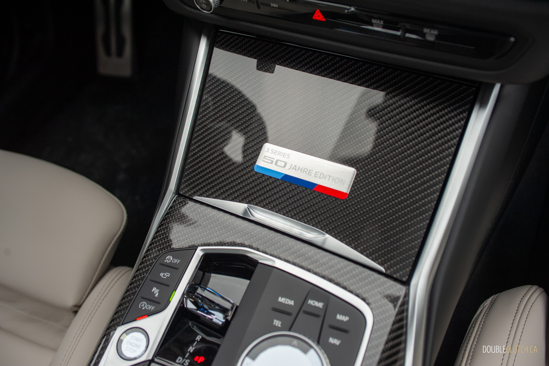 Where a regular M340i is comfortably sporty, the 50 Jahre adds a layer of ceremony. The stitch patterns are unique to this special edition model, there are “50 Jahre Edition” badges on the door sills and on the cup holder compartment, and the Merino leather makes it all just a more special place to spend time. Practicality hasn’t been sacrificed; the sedan’s 481 litres of trunk space and ample rear-seat legroom remain unchanged. It’s usable for weekend trips and daily duties to your local Longo’s grocery store.