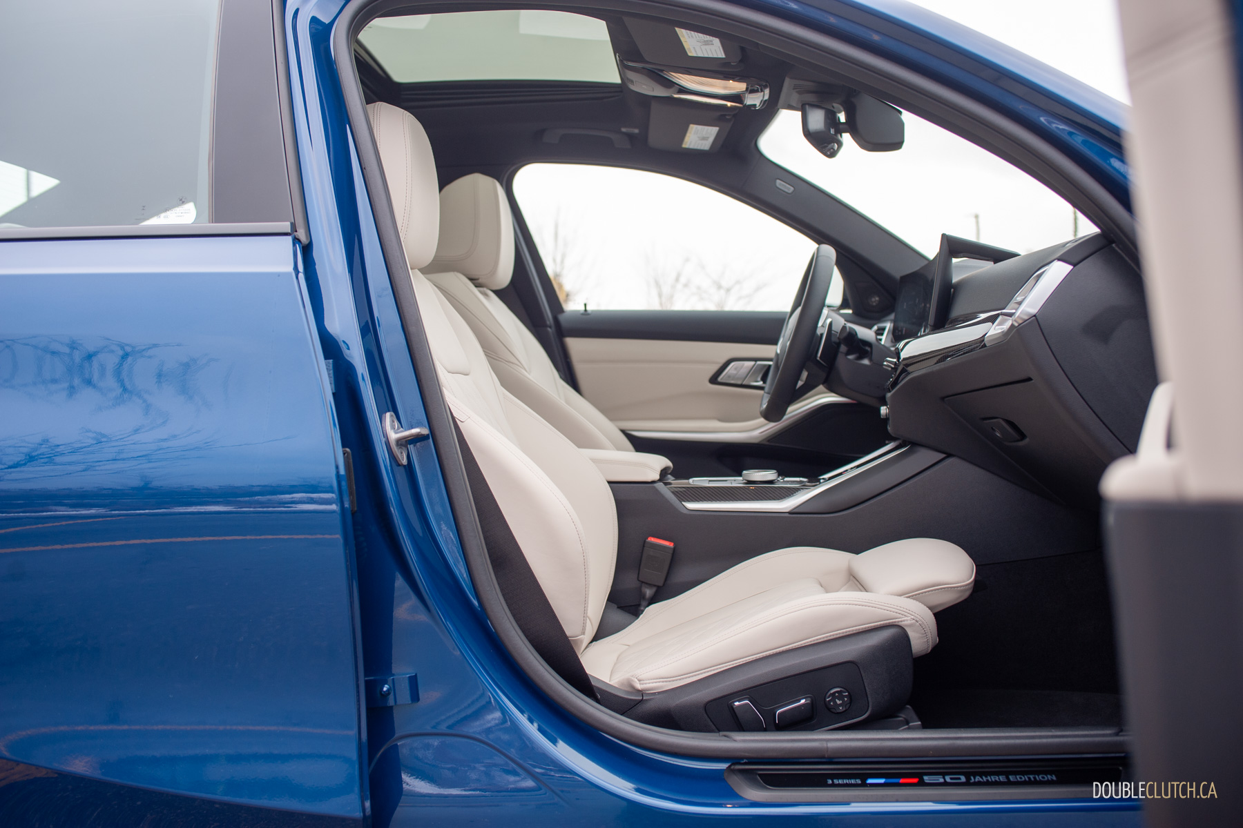 Dubbed the G20 generation in BMW parlance, the M340i xDrive 50 Jahre Edition marks 50 years of the 3 Series nameplate, putting perspective on how much time has passed and how much the 3 Series has evolved. To commemorate this achievement, BMW is offering a limited run of vehicles for 2026 with special paint options paying tribute to each generation of 3 Series. A total of six heritage colours are available, including Madeira Red that represents the first generation E21, Laguna Green for the E30, Avus Blue for the E36, Carbon Black for the E46, Deep Green for the E90, and Citrin Black for the F30 predecessors. Buyers can choose whichever colour speaks to them the most along with a handful of interior colourway options, all finished in Merino Leather. Our tester is finished in Avus Blue over Ivory, a very 1990s colour combo and also quick to get dirty if you wear the wrong pair of jeans.