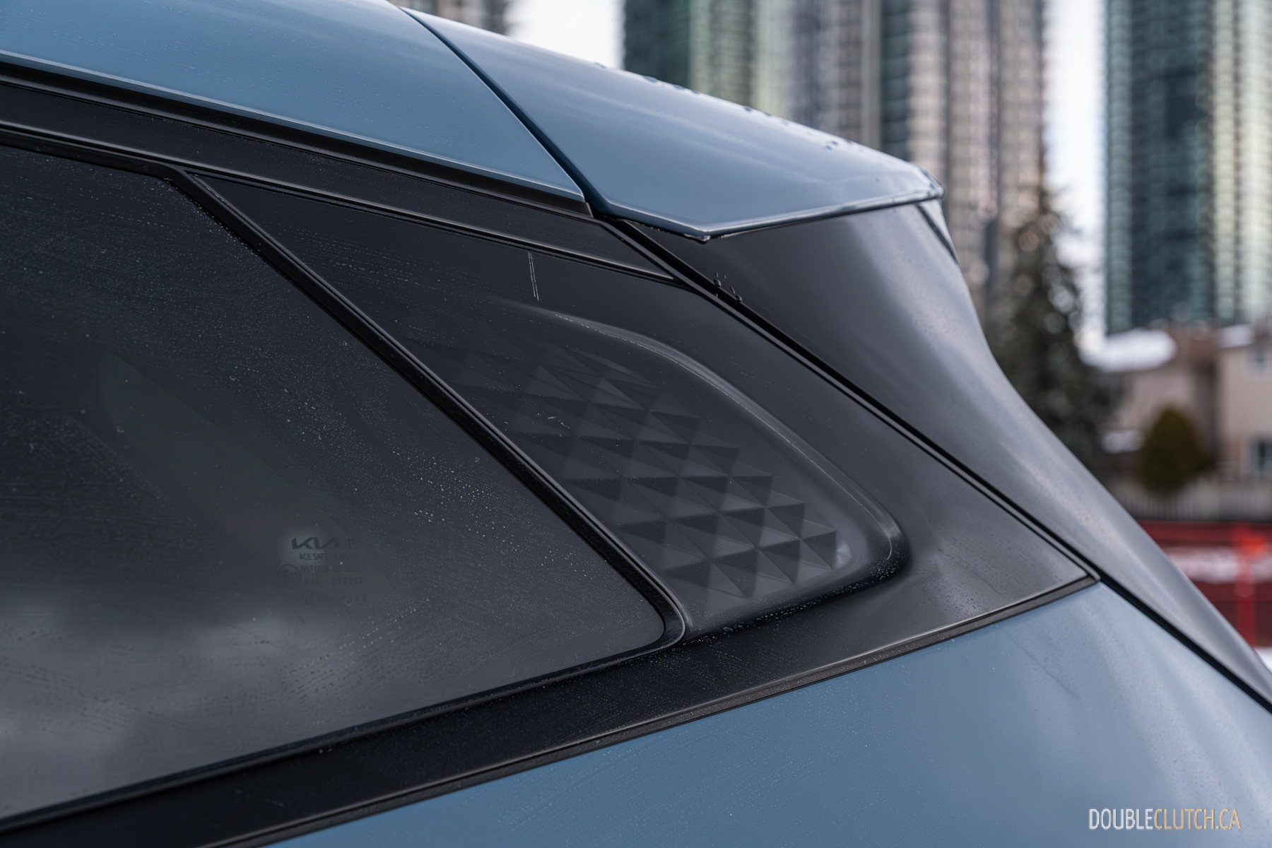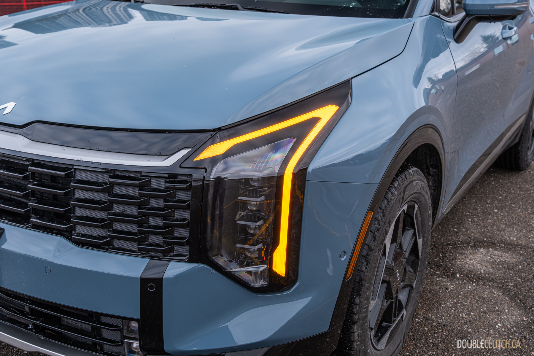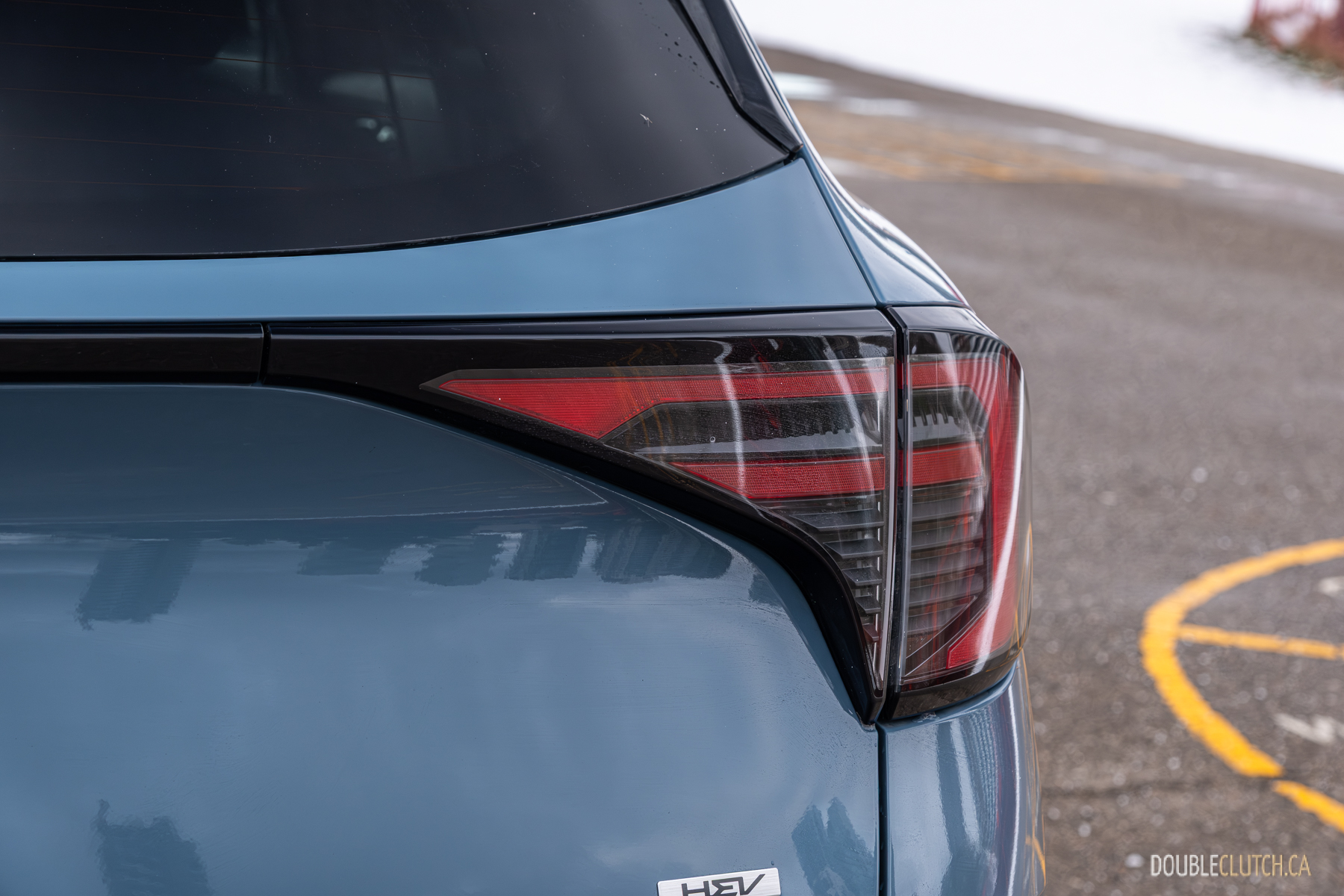 The SX trim is top of the food chain, but like the Hyundai Tucson, the hybrid technically falls in the middle of the pack, above the gas-only models but below the PHEV. Talk about choice. The SX really spruces up the already attractive and refreshed-for-2026 exterior with some additional dark chrome trim to replace the less inspired black plastic pieces around the windows and wheel arches. That, along with the unique vertically stacked headlights and foglights, give the Sportage a premium feel that belies its price. The swoopy amber DRLs give the Sportage an unmistakable signature as it approaches you, the boxy grille matches the rest of the design, and the subtle matte silver trim surrounding the grille and lower bumper tie in well with the same design elements along the side and rear of the Sportage.