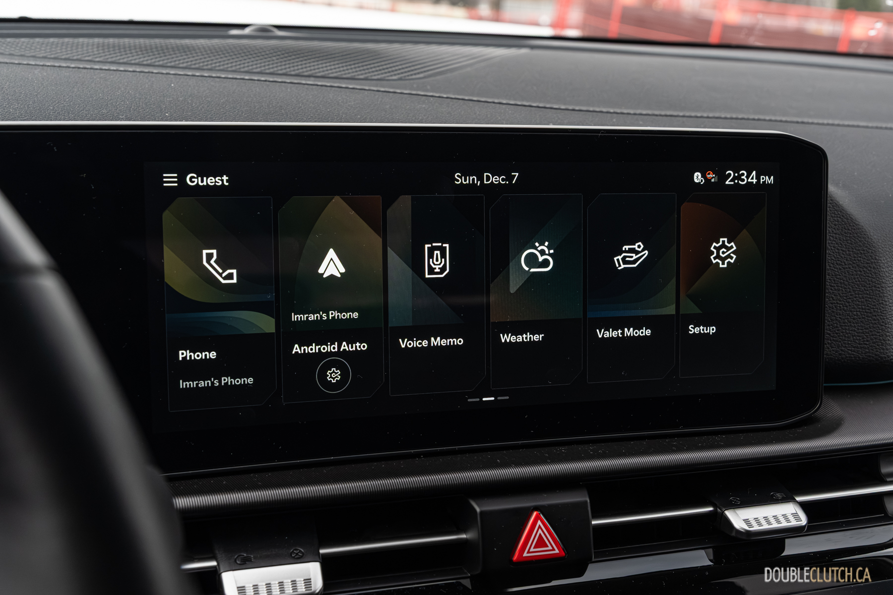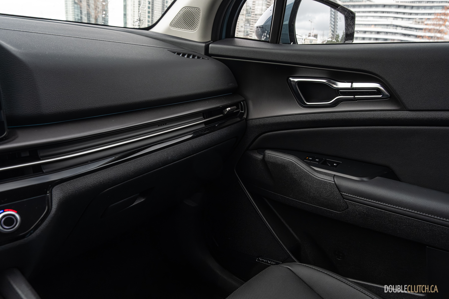 The interior of the Sportage is well put together, with two 12.3-inch digital screens dominating the dash. Kia’s signature but sometimes confusing dual-function control panel sits below the infotainment screen, letting you use physical (or in some cases, haptic feedback) buttons to control either your audio or climate control. It’s a clever design, allowing a single row of buttons to work for two separate purposes, but I found myself cranking the heat up when I wanted to turn up the volume, or vice-versa. I’m certain an owner would eventually get accustomed to the setup, but having to switch ‘modes’ to make adjustments never felt entirely natural in my time with the Sportage. Still, while others run back to buttons and knobs with their tails between their legs, kudos to Kia for not really deviating from including physical controls.