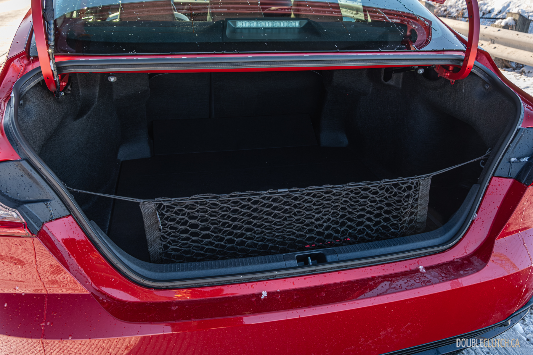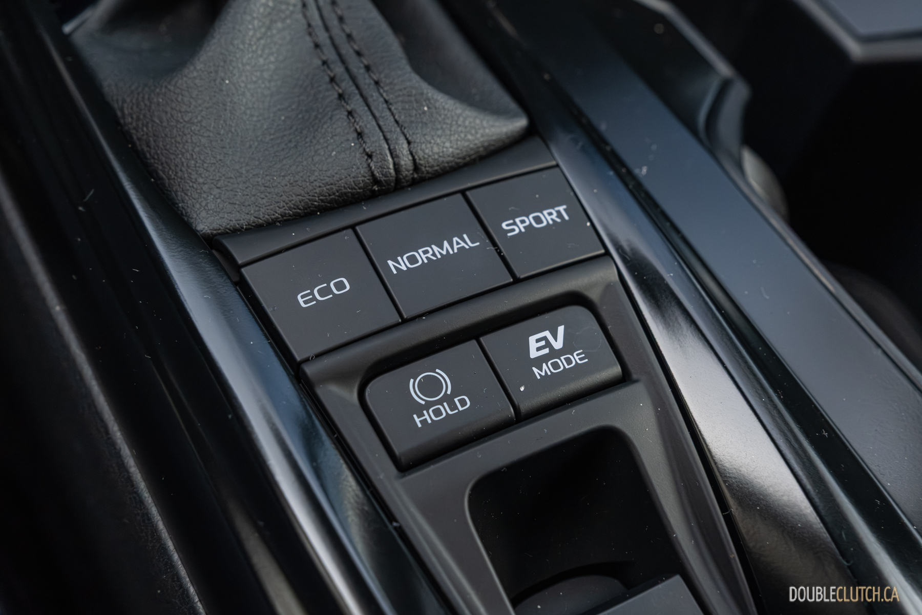 The interior vibe feels a touch last gen, which is both good and not-so-good. It’s good in that there are plenty of physical buttons and knobs for the climate controls, drive modes, and steering wheel controls. There’s even an honest-to-goodness P-R-N-D shifter on the centre console. Not-so-good is the small eight-inch infotainment screen and semi-digital gauge cluster. There’s also zero ambient lighting, which coupled with the all-black interior, makes for a cave-like interior ambiance at night. Material quality hasn’t leapt forward, either. In fact, some areas have taken a step back, with thin and scratchy plastics littered throughout the cabin. It may feel uninspired in some ways, but I will say that the major touchpoints — like the steering wheel, shift lever, and physical controls themselves — feel solid and well-built. Most won’t notice the cost cutting.