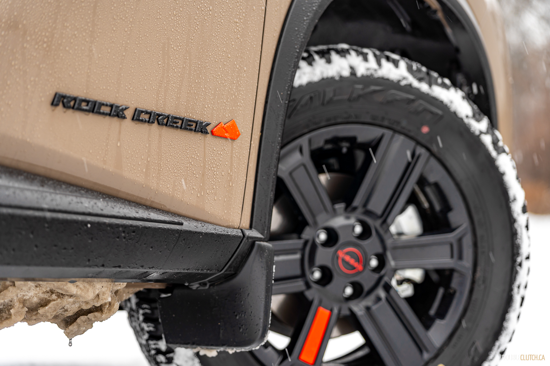 We gotta hand it to Nissan, this particular adventure-themed party-pack looks good, and is visually quite different from its more pedestrian brethren. The Rogue Rock Creek features a blacked out front fascia and badging and red accents to highlight the tubular roof rack and tow hooks – if you don’t look closely, you might not even notice they’re not actually tow hooks at all, but just painted trim. Chunky Falken Wildpeak A/T tires wrapped around “beadlock style” wheels complete the look, and our tester’s new Baja Storm paint sets it all off.
