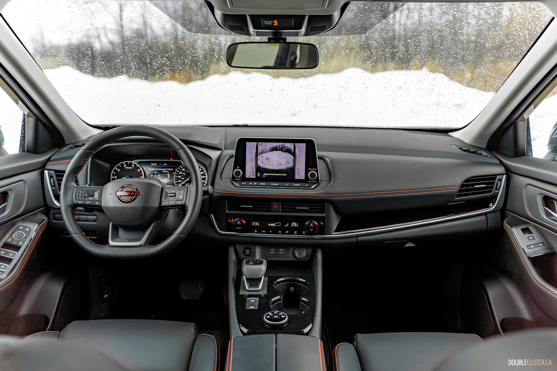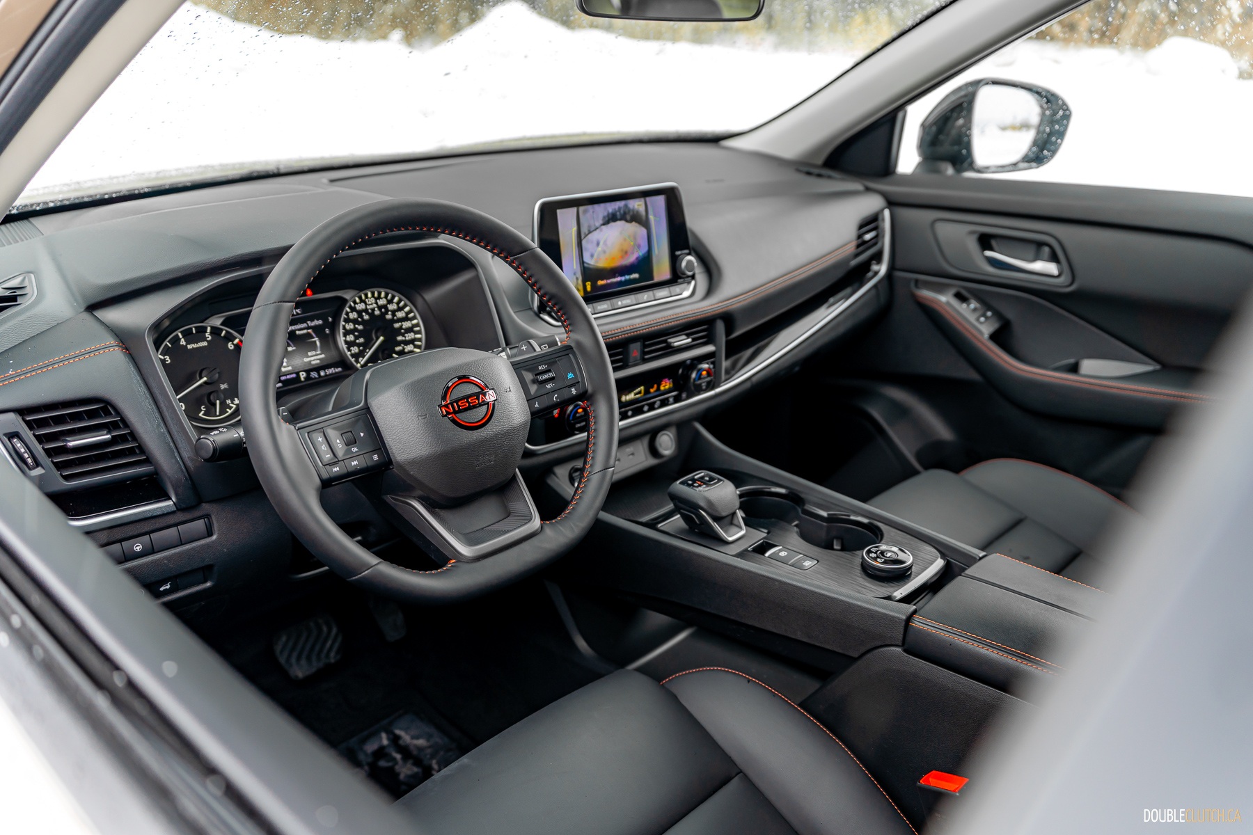 The interior of the Rogue Rock Creek isn’t much different, and that’s not a bad thing. The seats have embroidered Rock Creek logos and there’s some subtle red accents, but otherwise it’s the same well-appointed and well thought-out cabin we already liked. The Rock Creek is positioned just under the loaded Platinum model, so it’s got just about every option Nissan has in their arsenal, short of quilted leather and a sunroof – the latter being a wise omission given the standard roof rack.