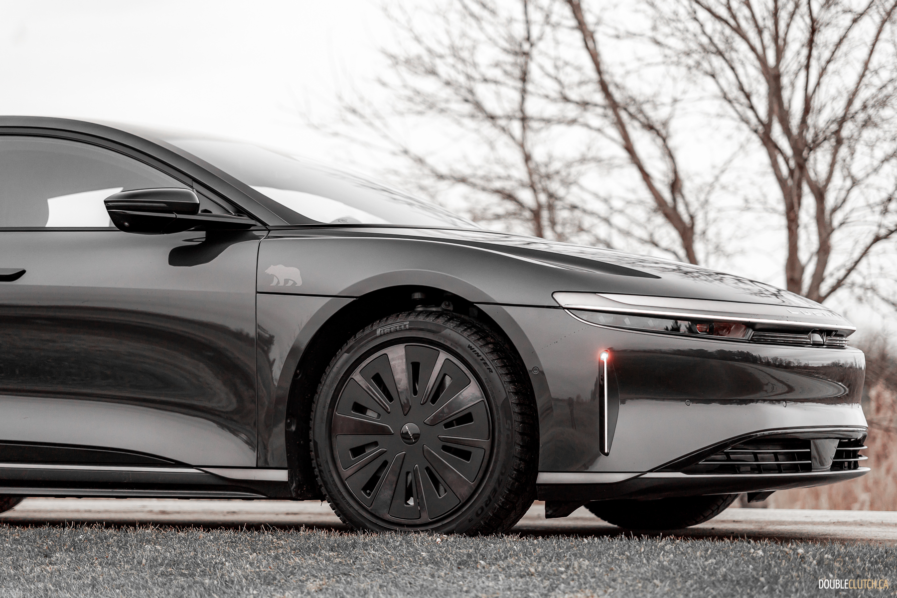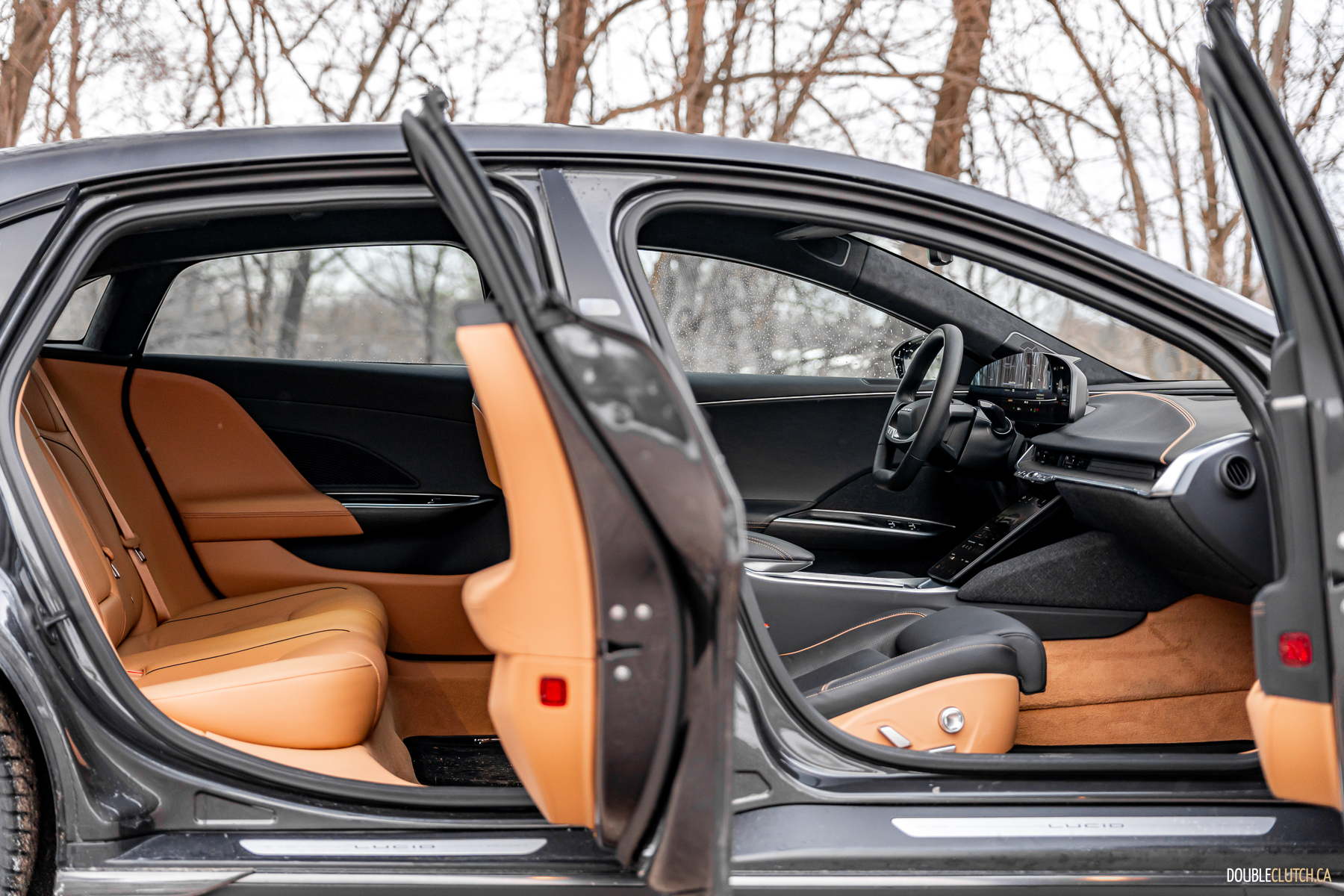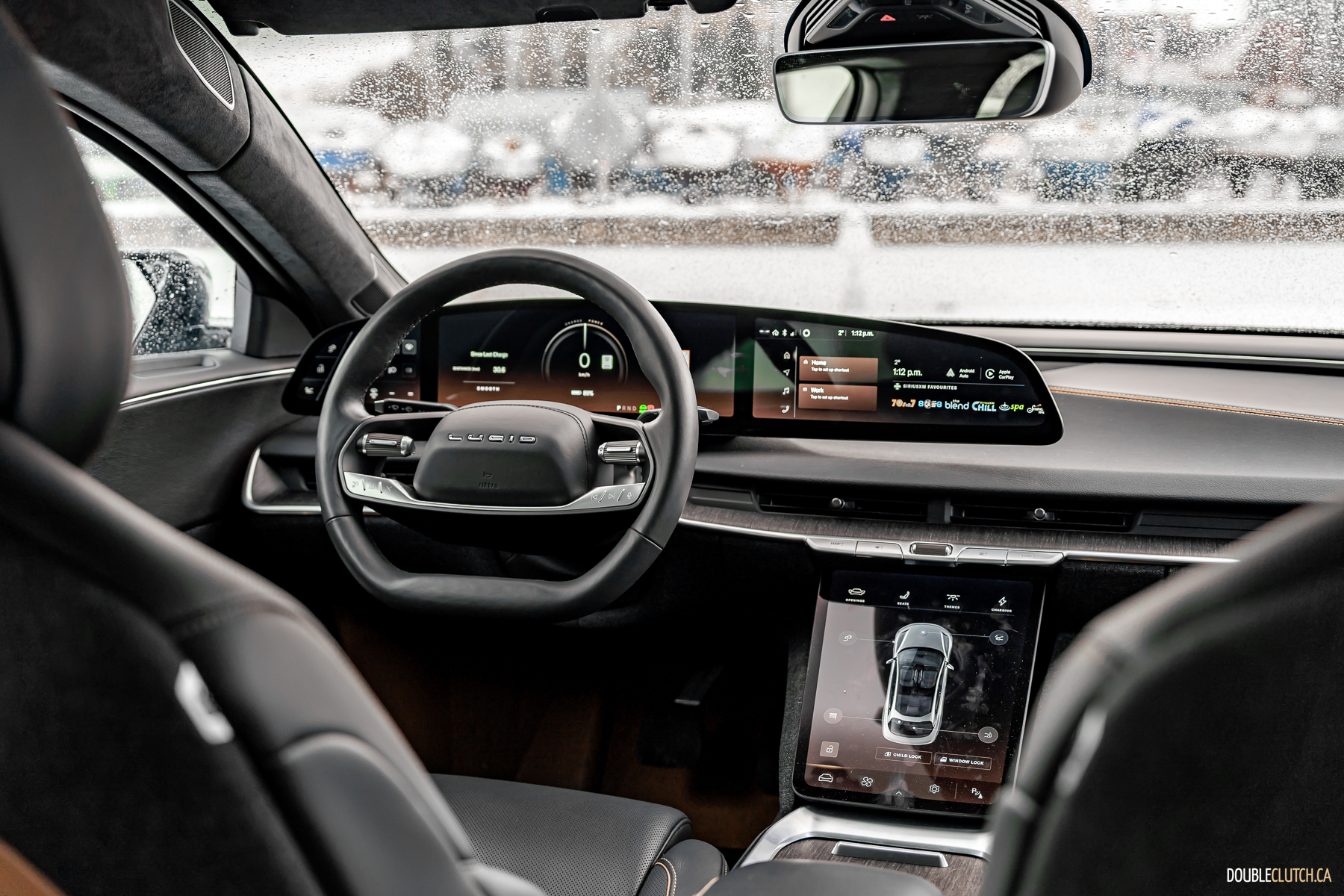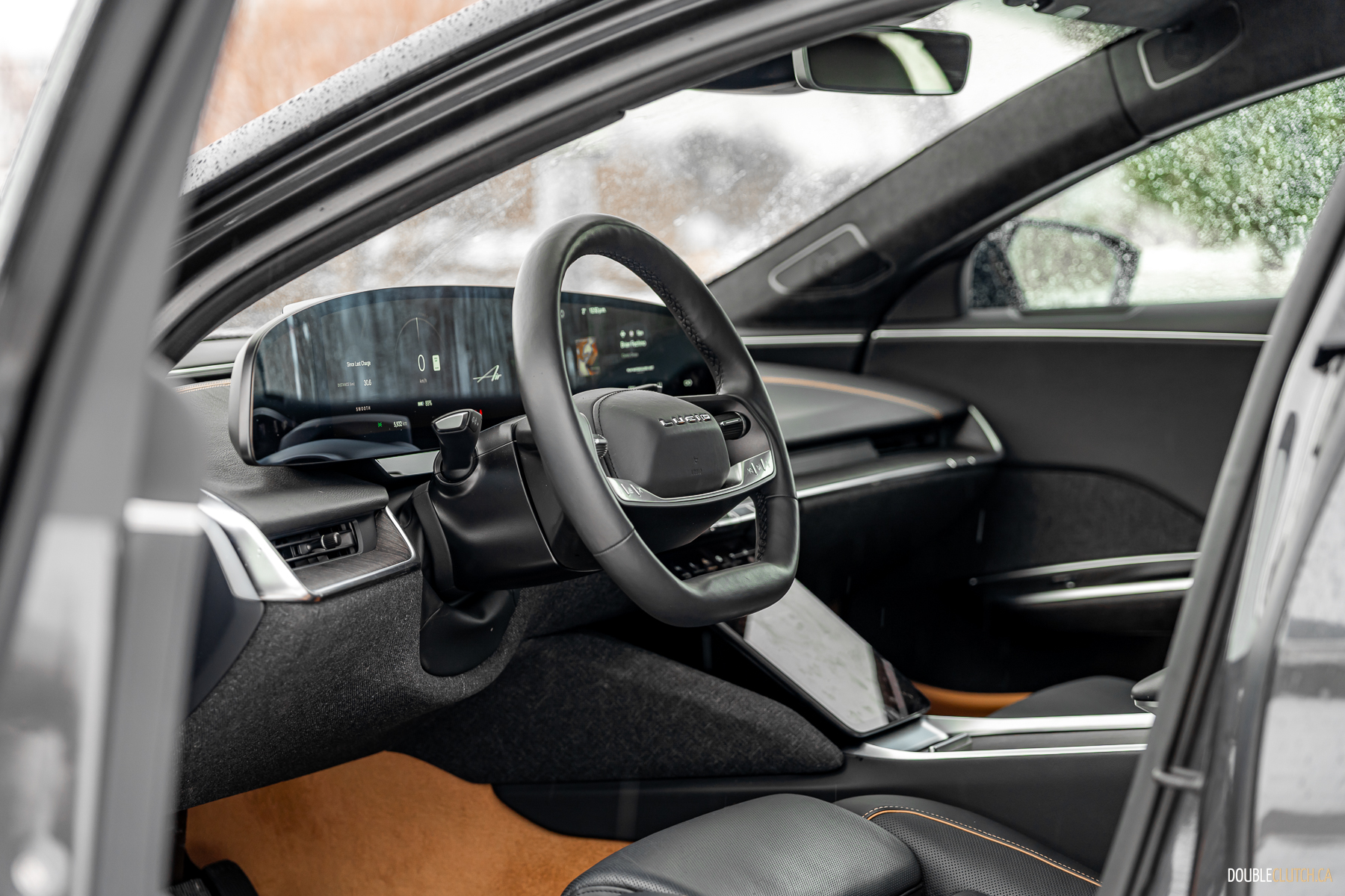As one specific point of brilliance: in profile, look at all the lines from the A-pillar all the way back. The curve of the windshield, the lines that make up the B, C, and D pillars, even the trunk opening, all converge at a single point above the car. This is good design. The same good design that makes Volvos incredibly good looking forever without being shouty. The frontal lighting is relatively small, but turns night into day, without garish, angry eyes. The rear lighting has an elegant taper and a curious stacked layer effect, highlighting L U C I D lettering over a not-quite infinity mirror.