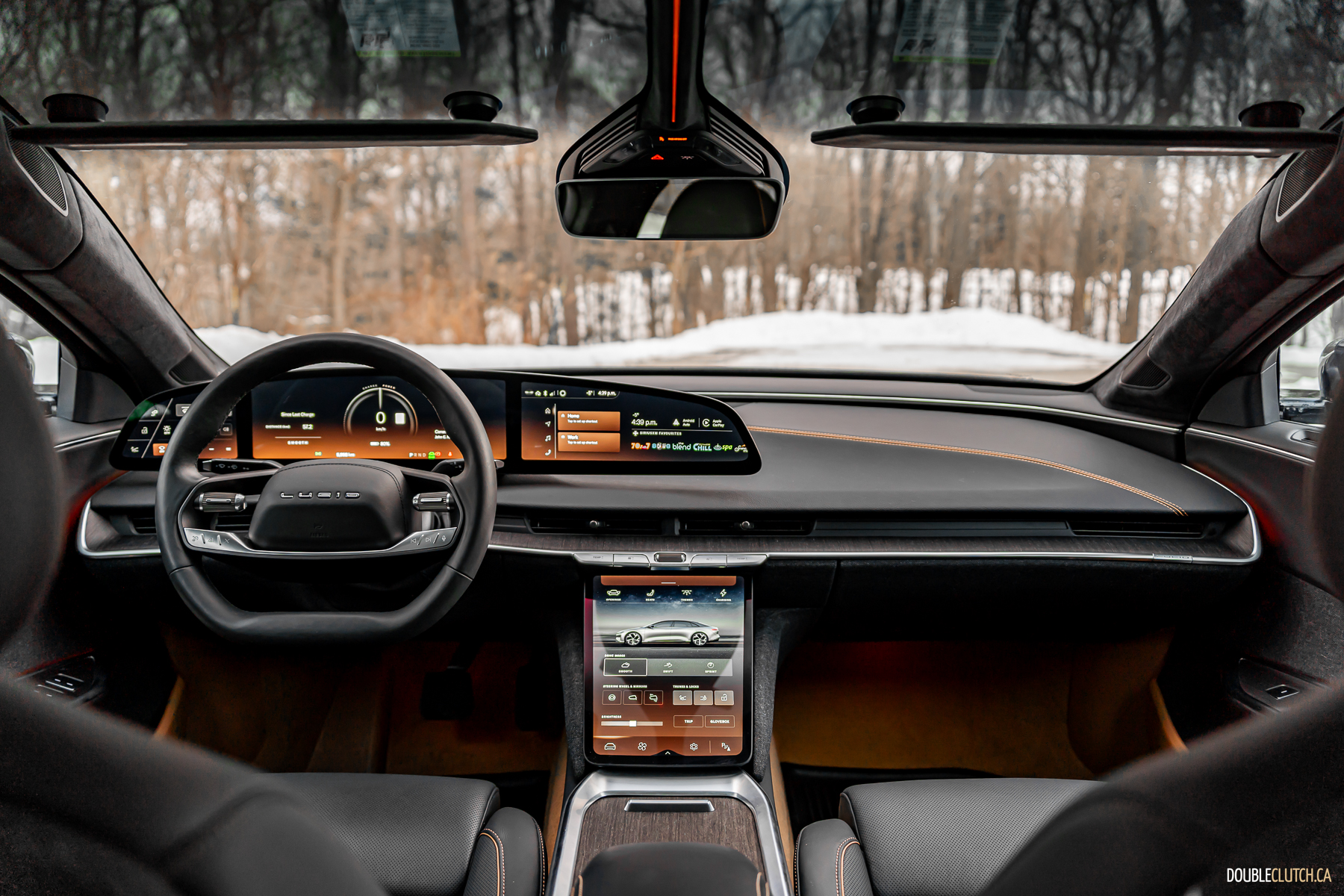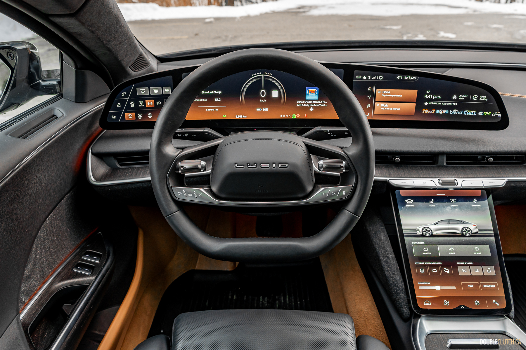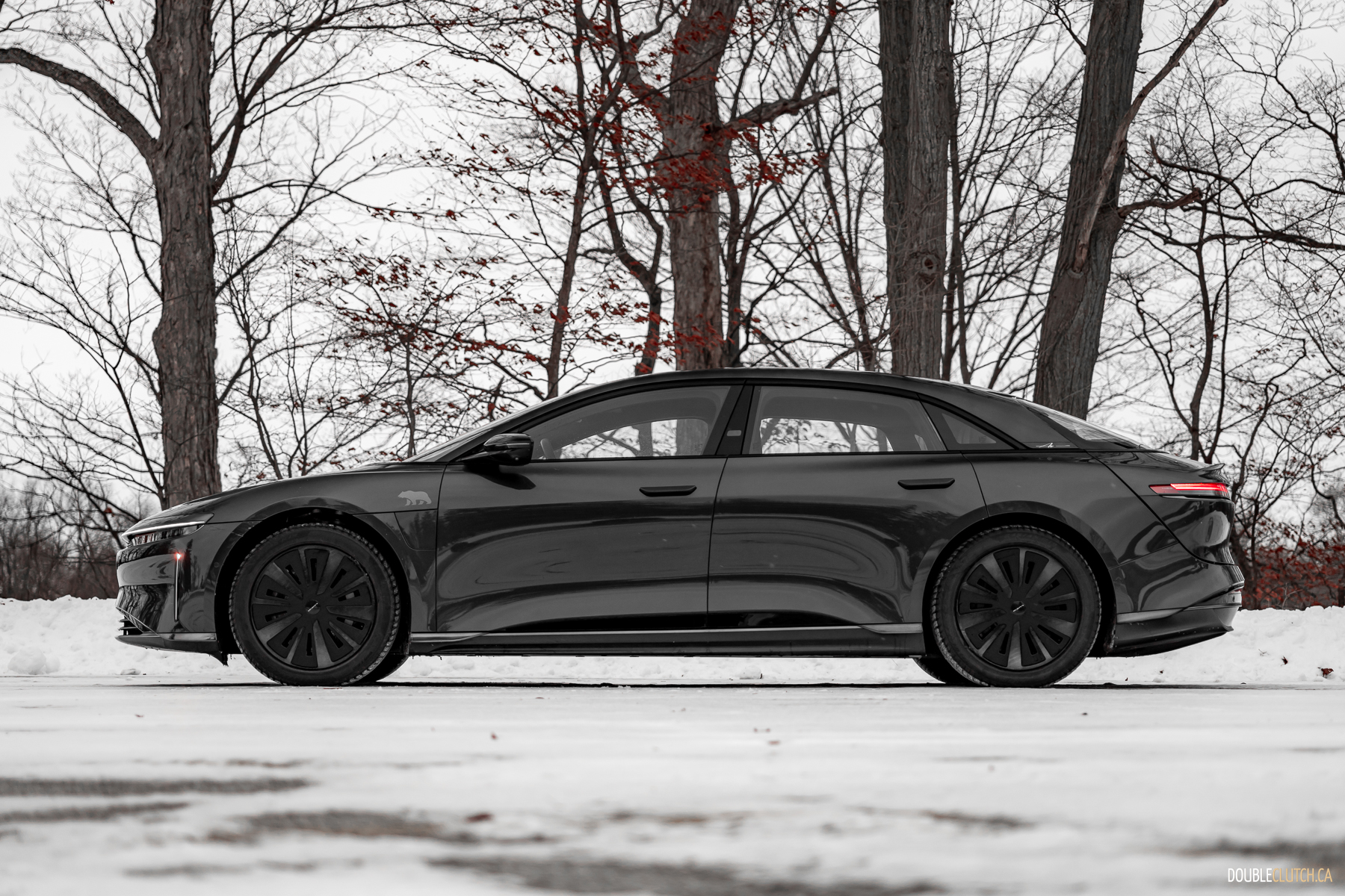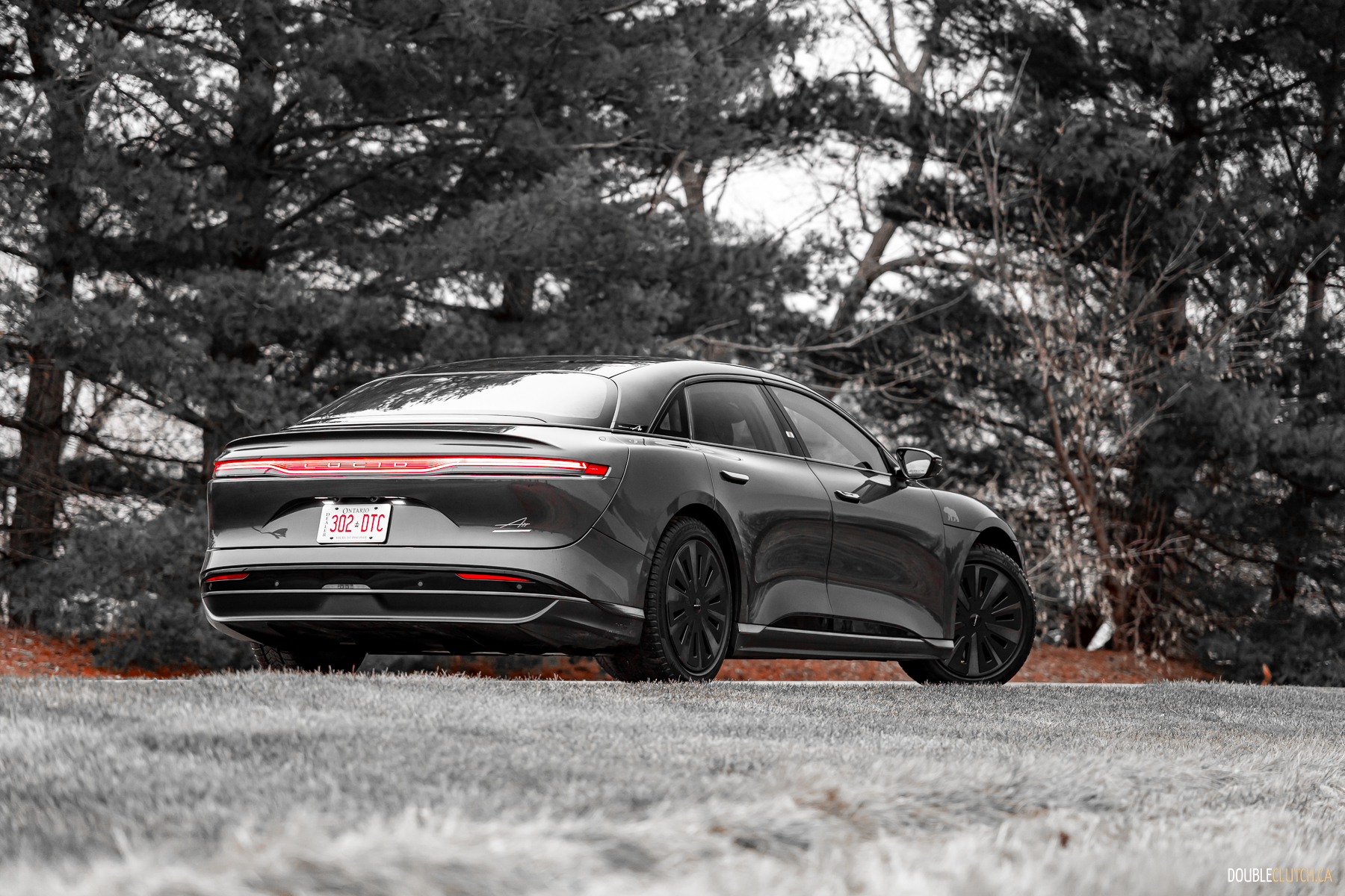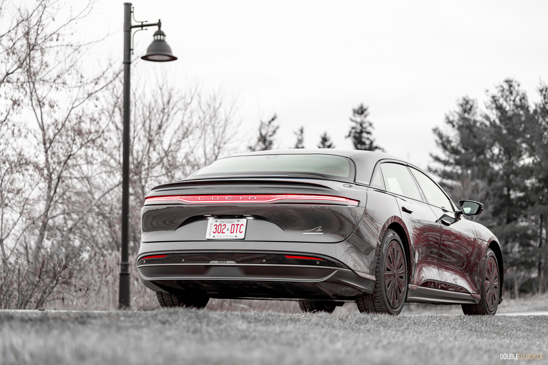 As one specific point of brilliance: in profile, look at all the lines from the A-pillar all the way back. The curve of the windshield, the lines that make up the B, C, and D pillars, even the trunk opening, all converge at a single point above the car. This is good design. The same good design that makes Volvos incredibly good looking forever without being shouty. The frontal lighting is relatively small, but turns night into day, without garish, angry eyes. The rear lighting has an elegant taper and a curious stacked layer effect, highlighting L U C I D lettering over a not-quite infinity mirror.