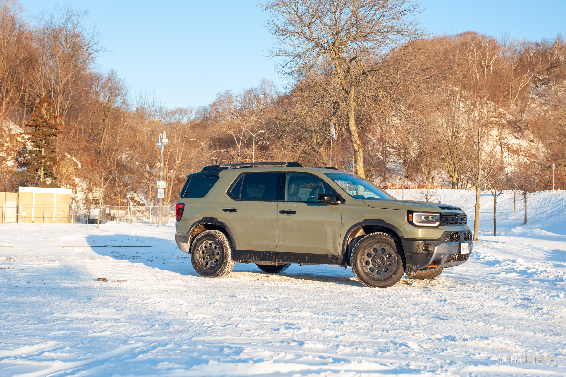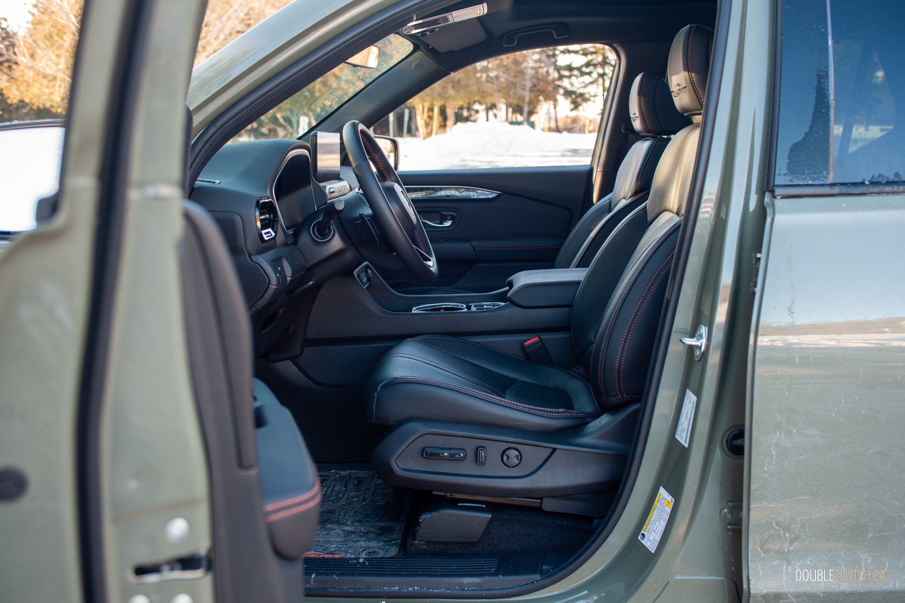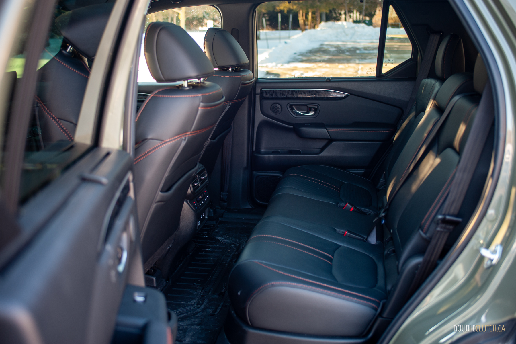 From the front fascia to the rear bumper, there’s a confidence in the design language that suggests a sense of adventure. This current-gen Passport was designed to be a Trailsport from the get-go; I’m being honest, it looks like a Ford Bronco Sport with a little sprinkle of the old Honda Element. The body lines follow Honda’s current design language, avoiding overly busy details while retaining a sense of practical ruggedness. In cottage country, the Passport’s look immediately communicates that it’s ready to tackle anything, especially with our tester’s Bridgestone Blizzak DM-V2s that handled whatever winter threw at it with relative ease and confidence. It’s a nice contrast to other midsize SUVs that either skew too soft or too utilitarian without an actual sense of style, surely grabbing the attention of anyone seeking added personality and off-road flair compared to most of the other crossover blobs out there.