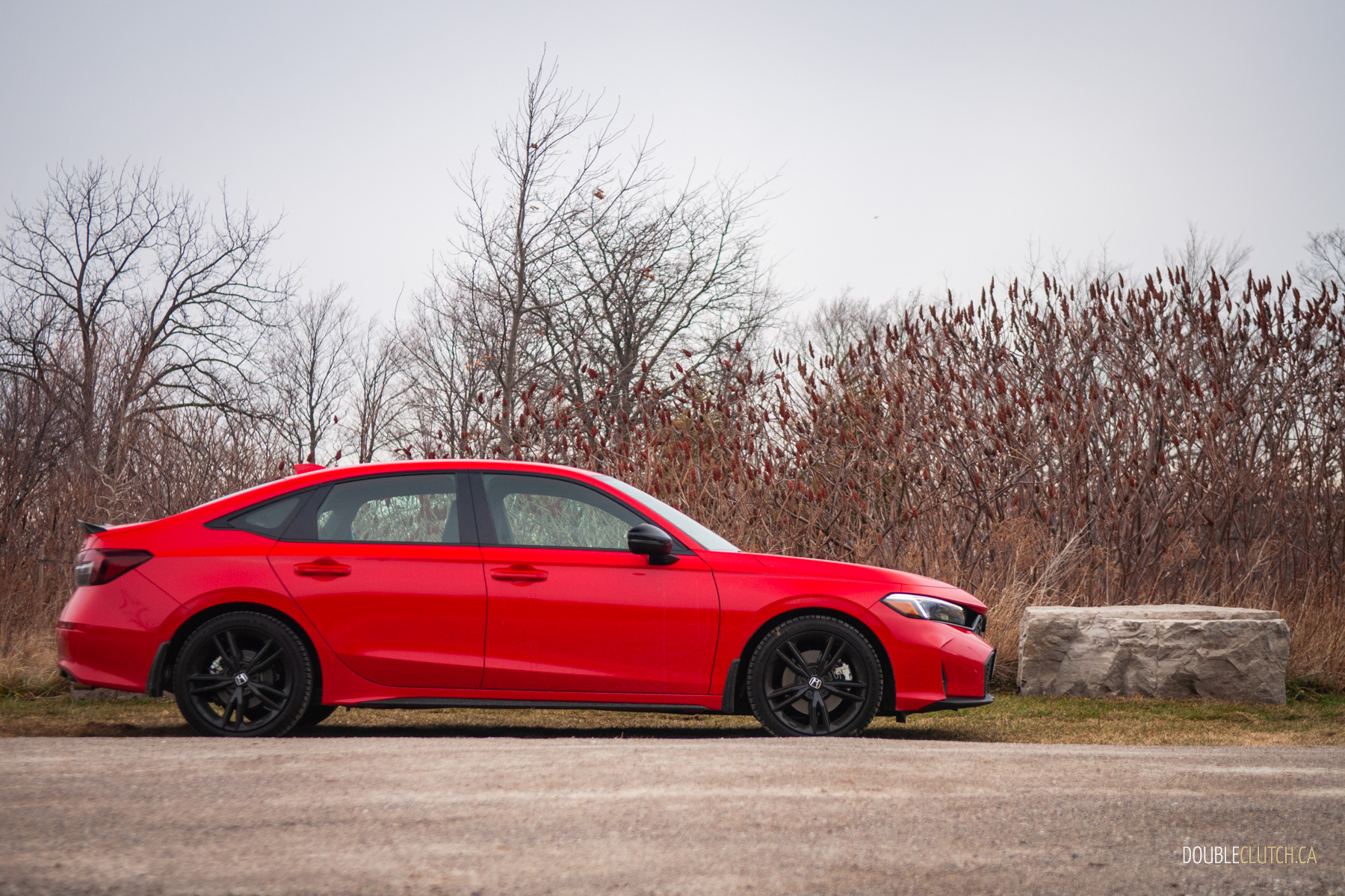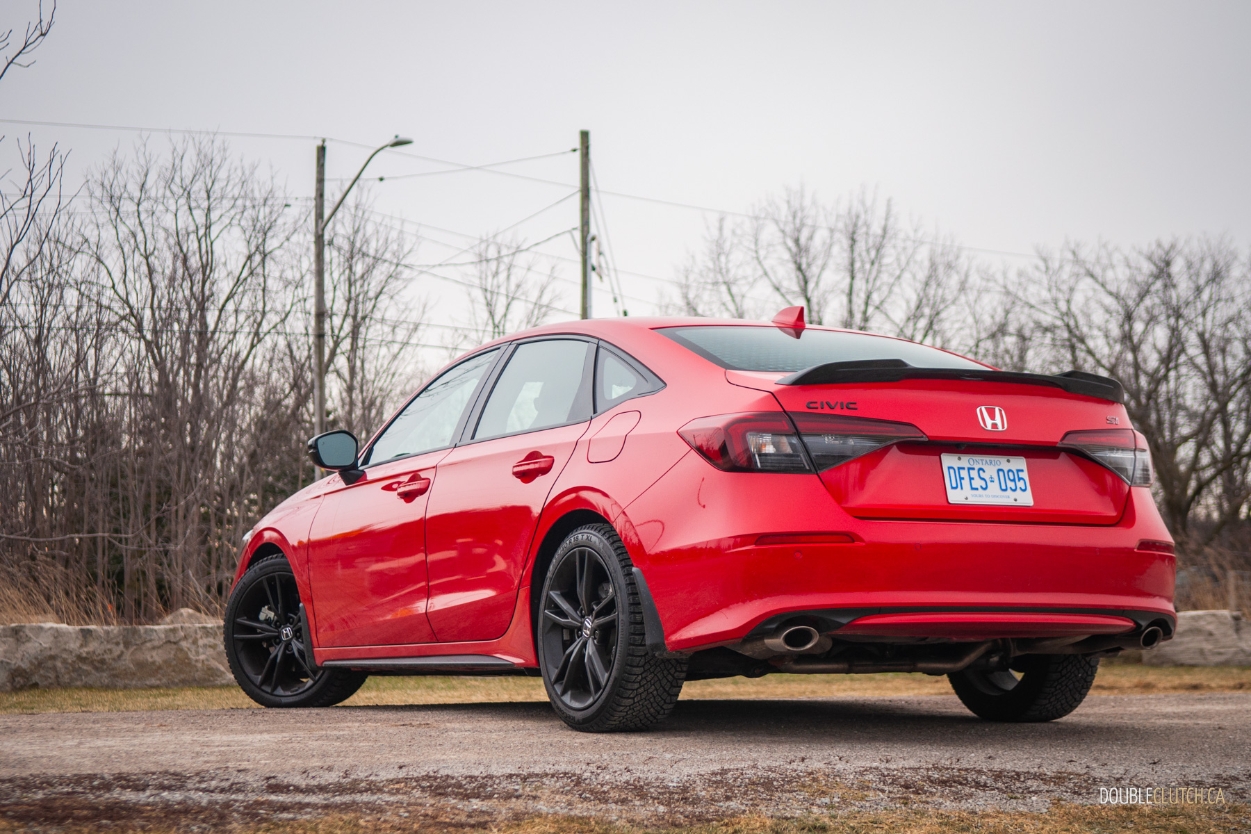 The 11th-gen Civic has been a favourite of ours since its debut. Honda toned down the creases, folds, and sharp character lines for a much cleaner, almost baby-Accord look that still looks good today. The grille and front lip are more pronounced and angular than before, but it’s not overbearing. Along the side, you might not notice the new wheels at first, but they’re there, and one thing to note is that they’re not repurposed from the Integra even though they look very similar. Around the back, the changes are even subtler; I barely noticed the now-smoked tail lights, and the “Civic” badge being black but the rest chrome stands out … not in a good way.