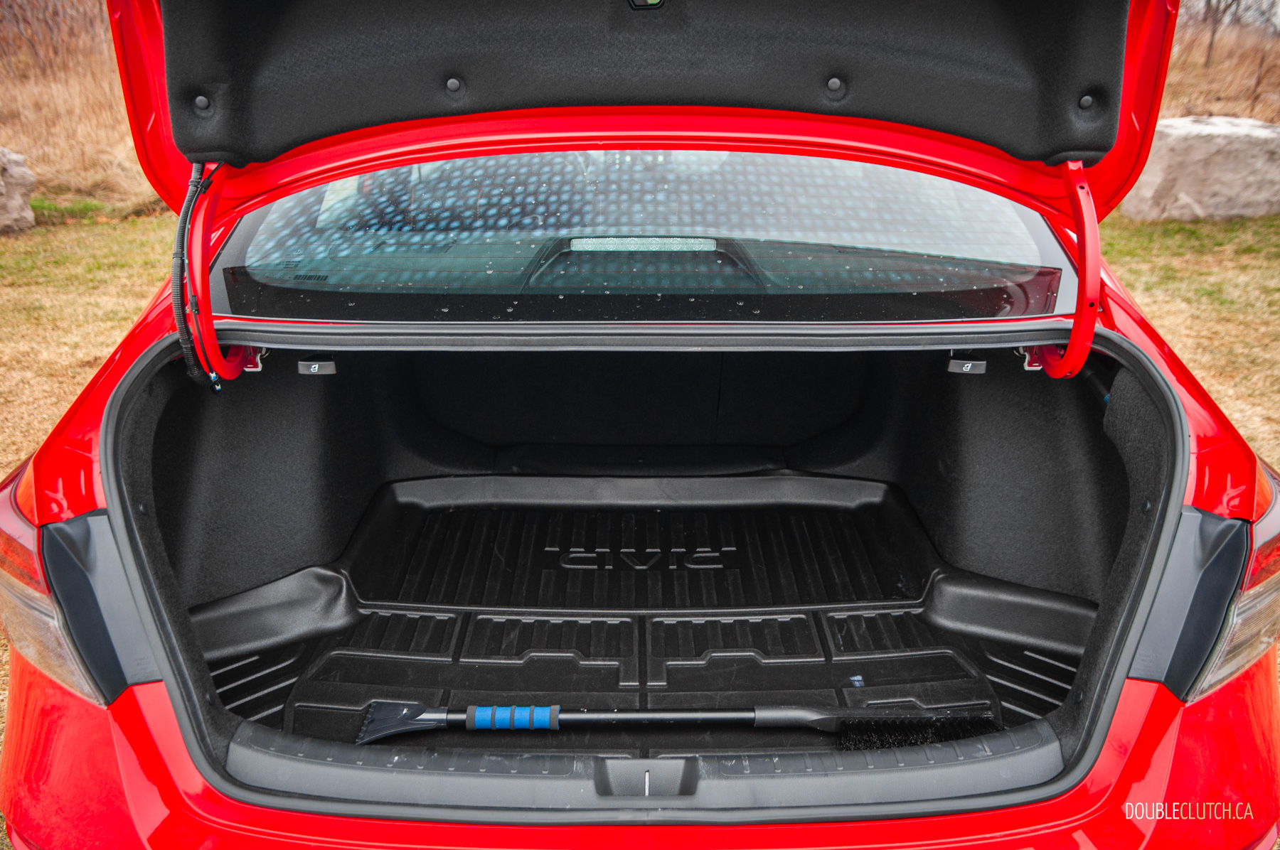 The rest of the Civic high points translate to the Si, too. There’s plenty of headroom up front, the back seat has about as much legroom as an Accord from a decade ago, and the 407-litre trunk remains on the roomy end of the segment. All the controls are perfectly placed, the Google-based infotainment looks like Honda’s old software but it’s faster and more responsive, and the climate control knobs and mesh trim running across the dash feel as classy as ever. The only nitpick we have is with the infotainment; the process to set your radio presets is an infuriating three-step process, when it should really be as simple as push-and-hold. Better make sure your music tastes never change for as long as you own an Si.