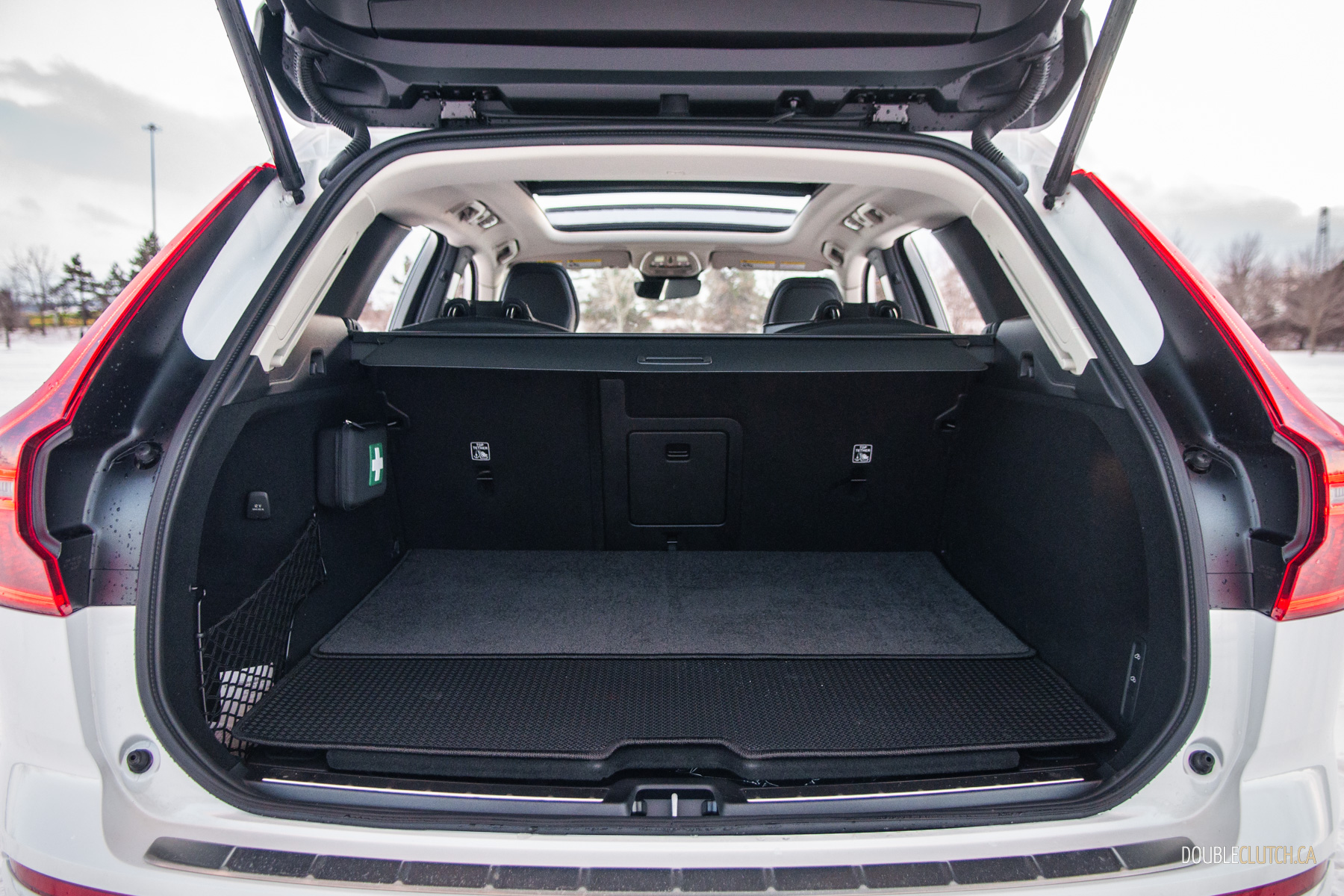 The 2026 model year sees another round of those updates. The XC60 features a new grille design that ties in with the updated XC90, new wheel options including our tester’s 22-inch dubs, and three new colours: Forest Lake, Mulberry Red, and Aurora Silver. The tail lights are supposedly a shade or two darker, too, though we’d be more excited if Volvo fitted amber turn signals instead. Inside, the key update is a new 11.2-inch touchscreen running the same Android Automotive software as other recently redone Volvos and Polestars.