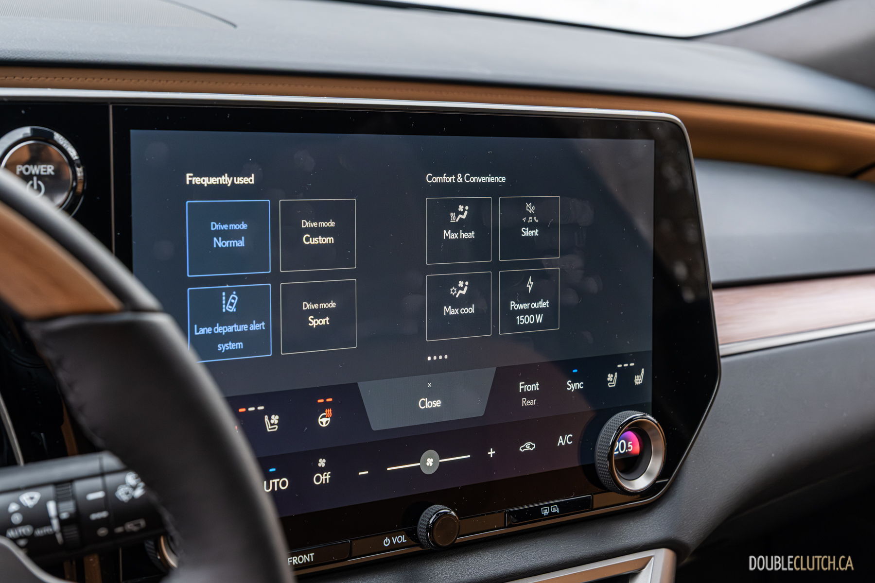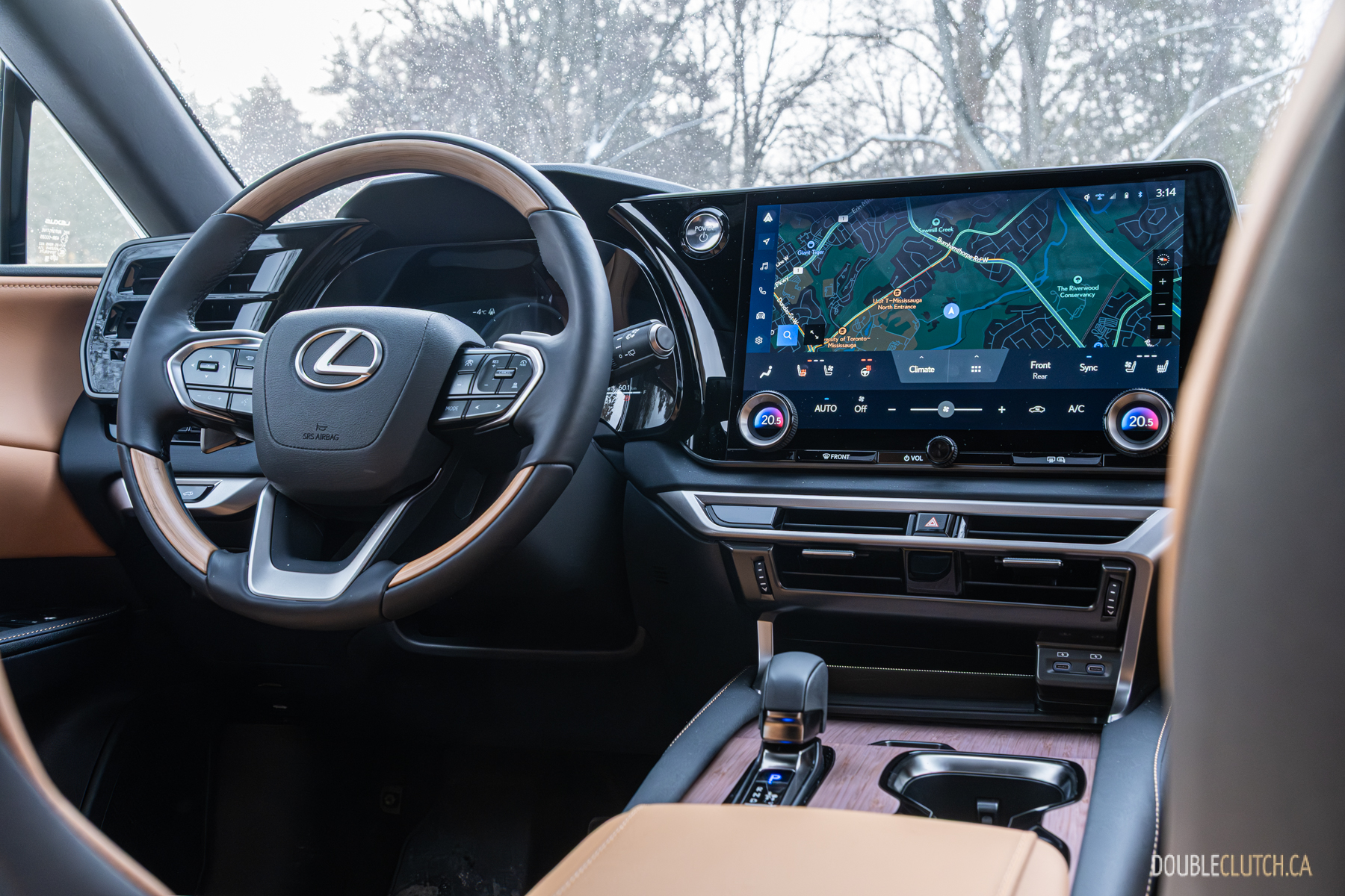 The interior is equally impressive in my book. It doesn’t come across as modern and tech-forward as some other competitors, but there’s a modern yet simple vibe to the RX that feels more timeless. Yes, there’s a very modern-looking 14-inch touchscreen featuring Lexus’ latest infotainment software. There’s also a digital gauge cluster, but neither of these overwhelm the cabin. The rest of the layout is clean and unobstructed, with a good mix of textures for contrast. Lexus hasn’t sworn off physical buttons, either, and the tactile experience is balanced well against the digital. Space is plentiful front and rear, and the trunk can swallow a respectable 838 litres of cargo space with the seats up — on par for the segment.