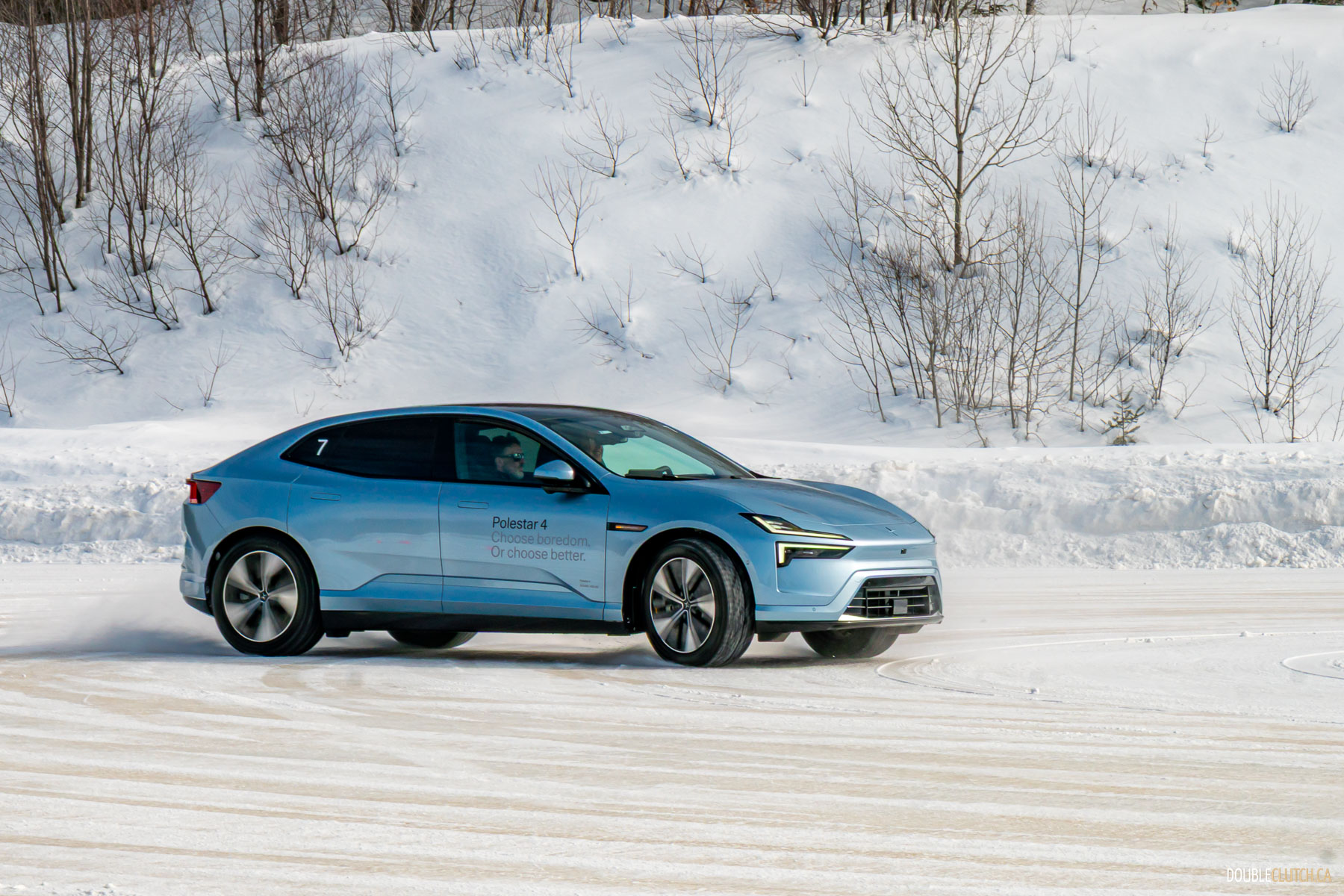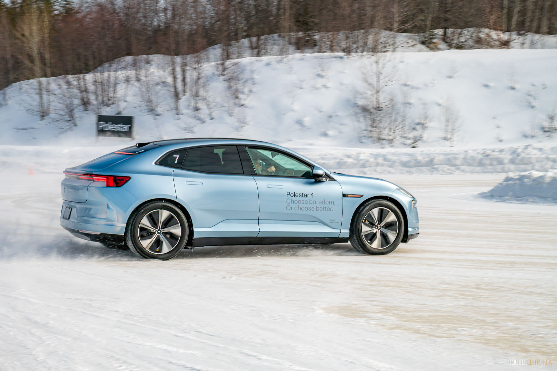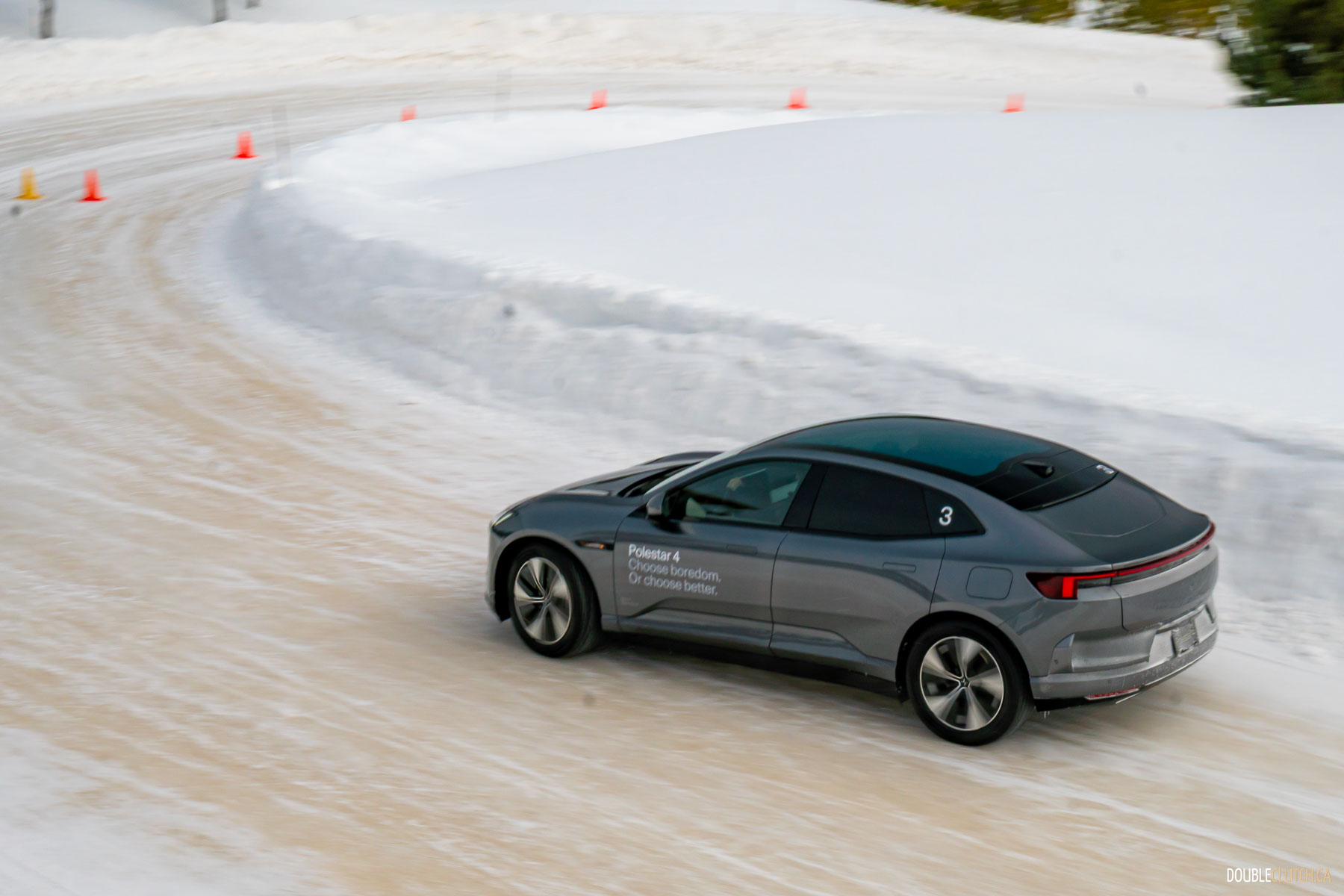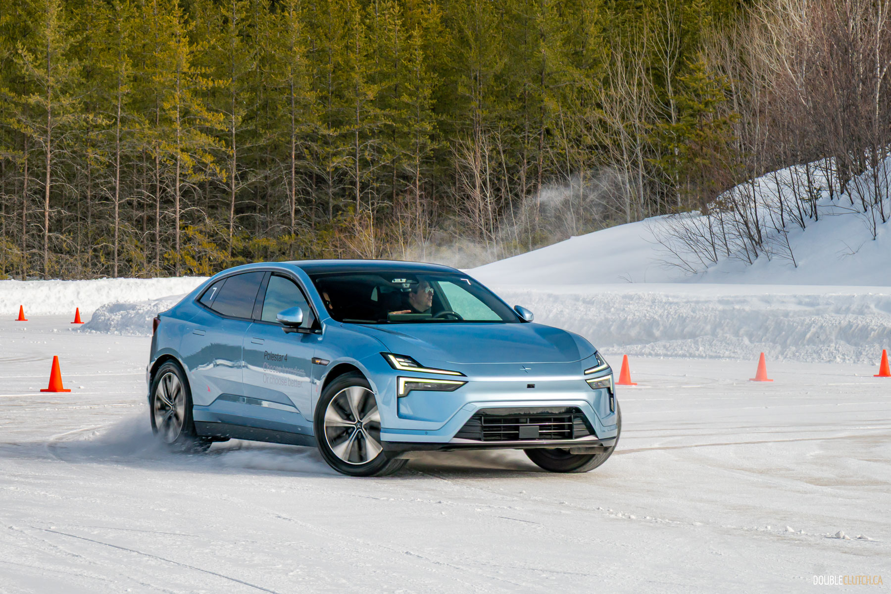 Saint-Sauveur, QC – One of the activities of this Polestar 4 Arctic Circle Drive event was being taught how to do a proper “Scandinavian Flick,” a classic rally racing technique where you turn the car in the wrong direction prior to entering a corner, and then using a pendulum effect to throw the car through the corner in a big, heroic slide. Teaching a bunch of hapless keyboard clappers like me how to execute a daring maneuver like this speaks volumes to Polestar’s confidence in their cars.