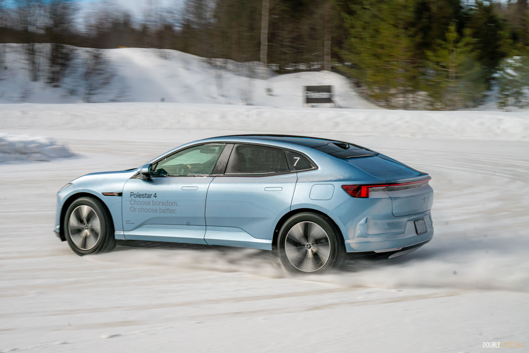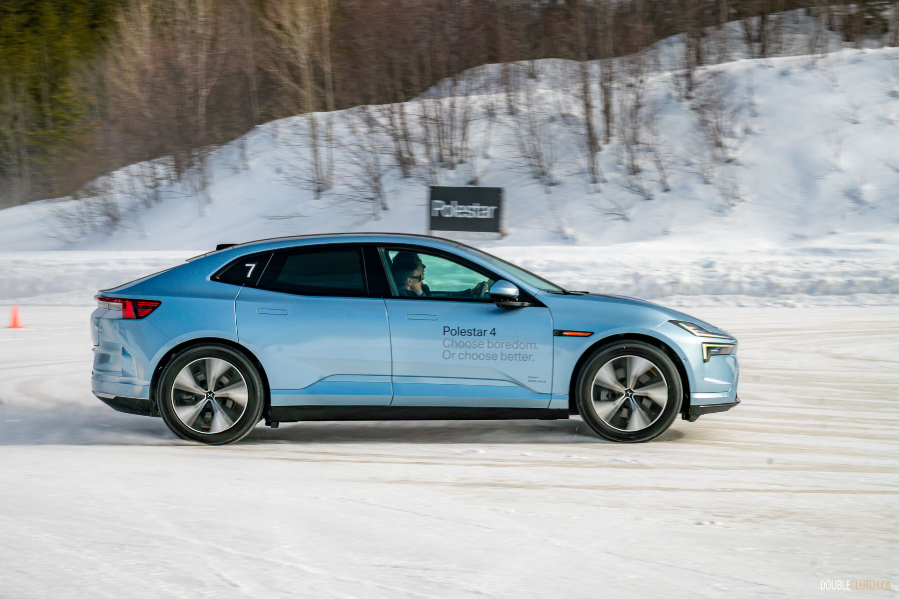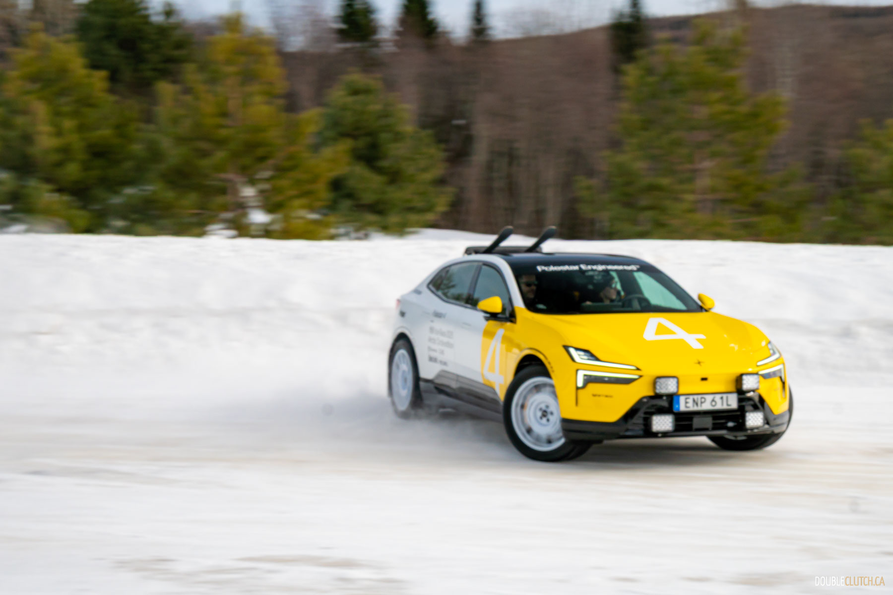 Saint-Sauveur, QC – One of the activities of this Polestar 4 Arctic Circle Drive event was being taught how to do a proper “Scandinavian Flick,” a classic rally racing technique where you turn the car in the wrong direction prior to entering a corner, and then using a pendulum effect to throw the car through the corner in a big, heroic slide. Teaching a bunch of hapless keyboard clappers like me how to execute a daring maneuver like this speaks volumes to Polestar’s confidence in their cars.