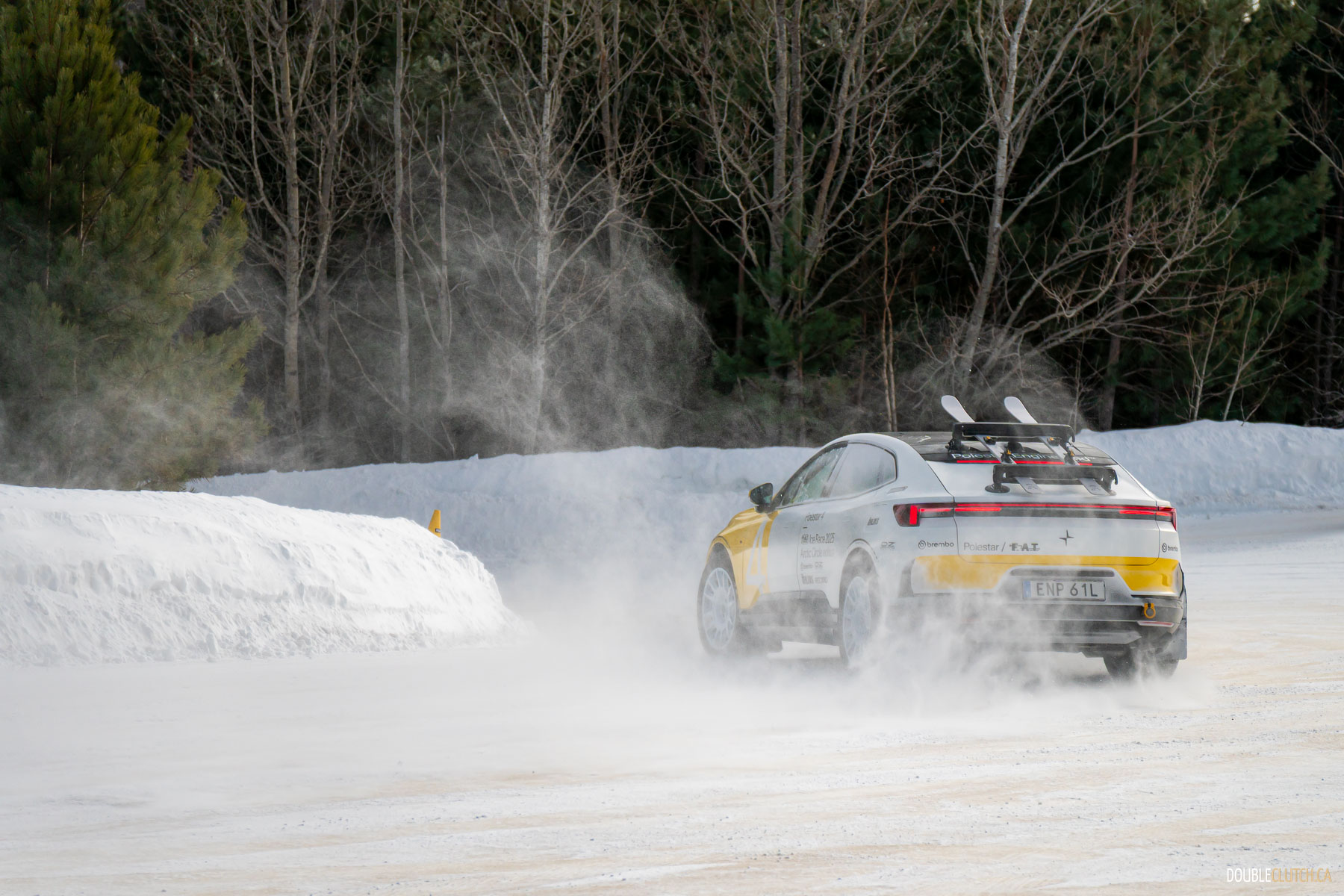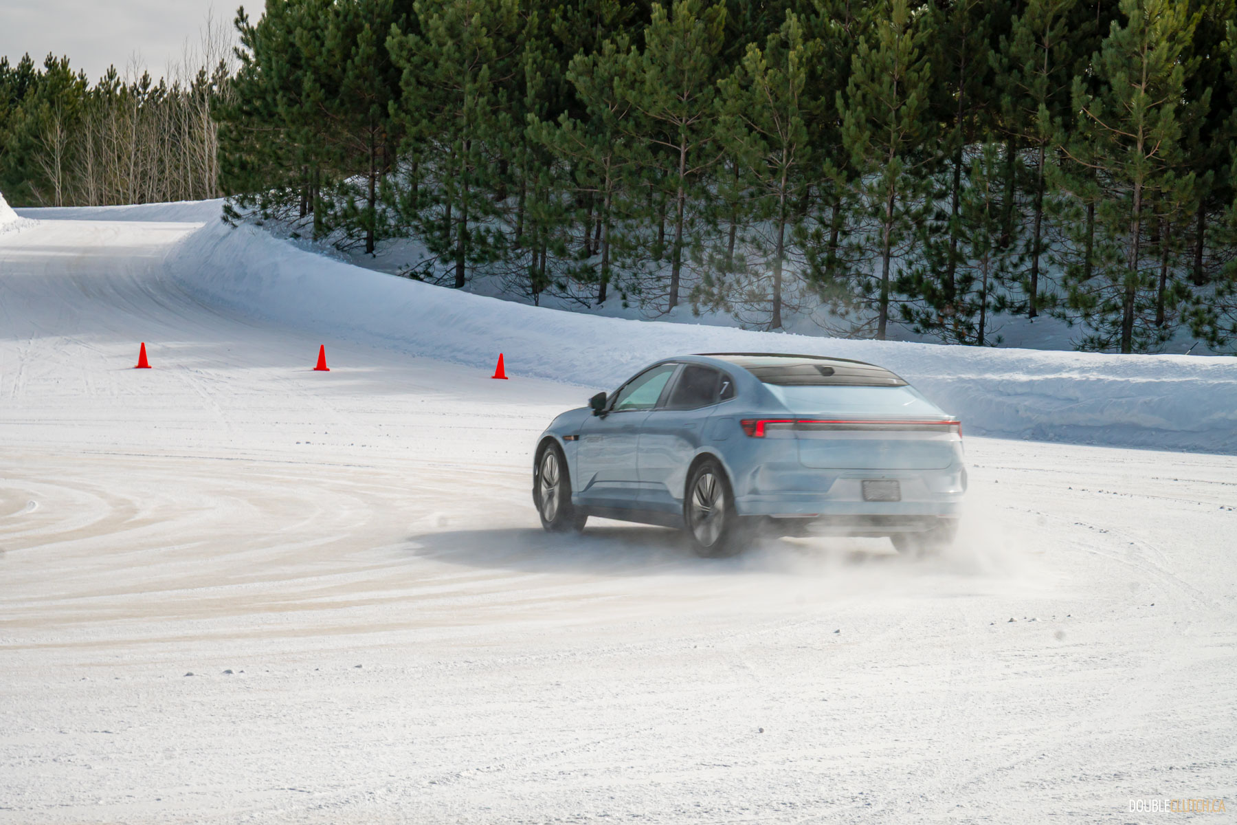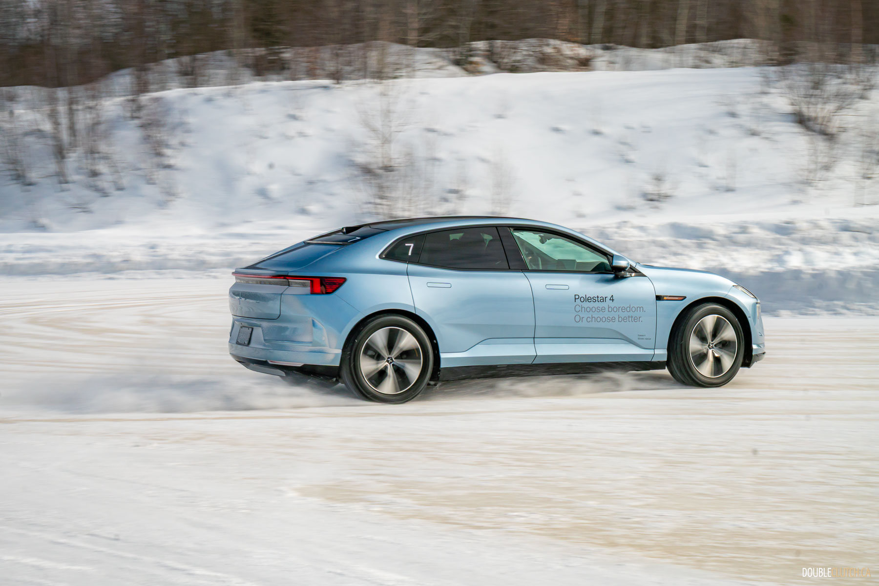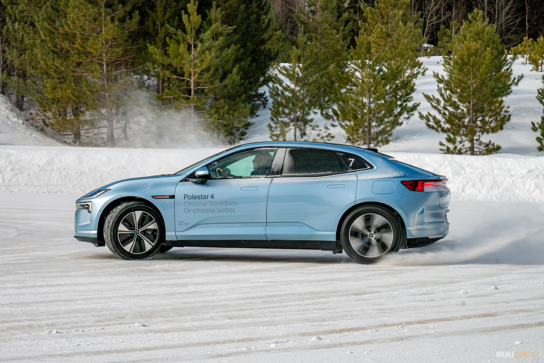 Saint-Sauveur, QC – One of the activities of this Polestar 4 Arctic Circle Drive event was being taught how to do a proper “Scandinavian Flick,” a classic rally racing technique where you turn the car in the wrong direction prior to entering a corner, and then using a pendulum effect to throw the car through the corner in a big, heroic slide. Teaching a bunch of hapless keyboard clappers like me how to execute a daring maneuver like this speaks volumes to Polestar’s confidence in their cars.