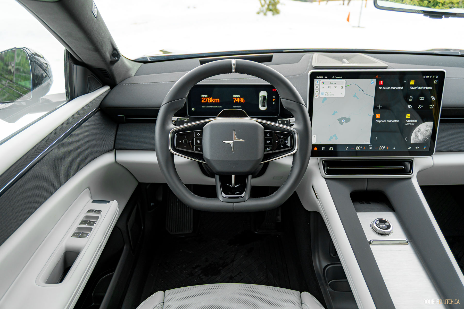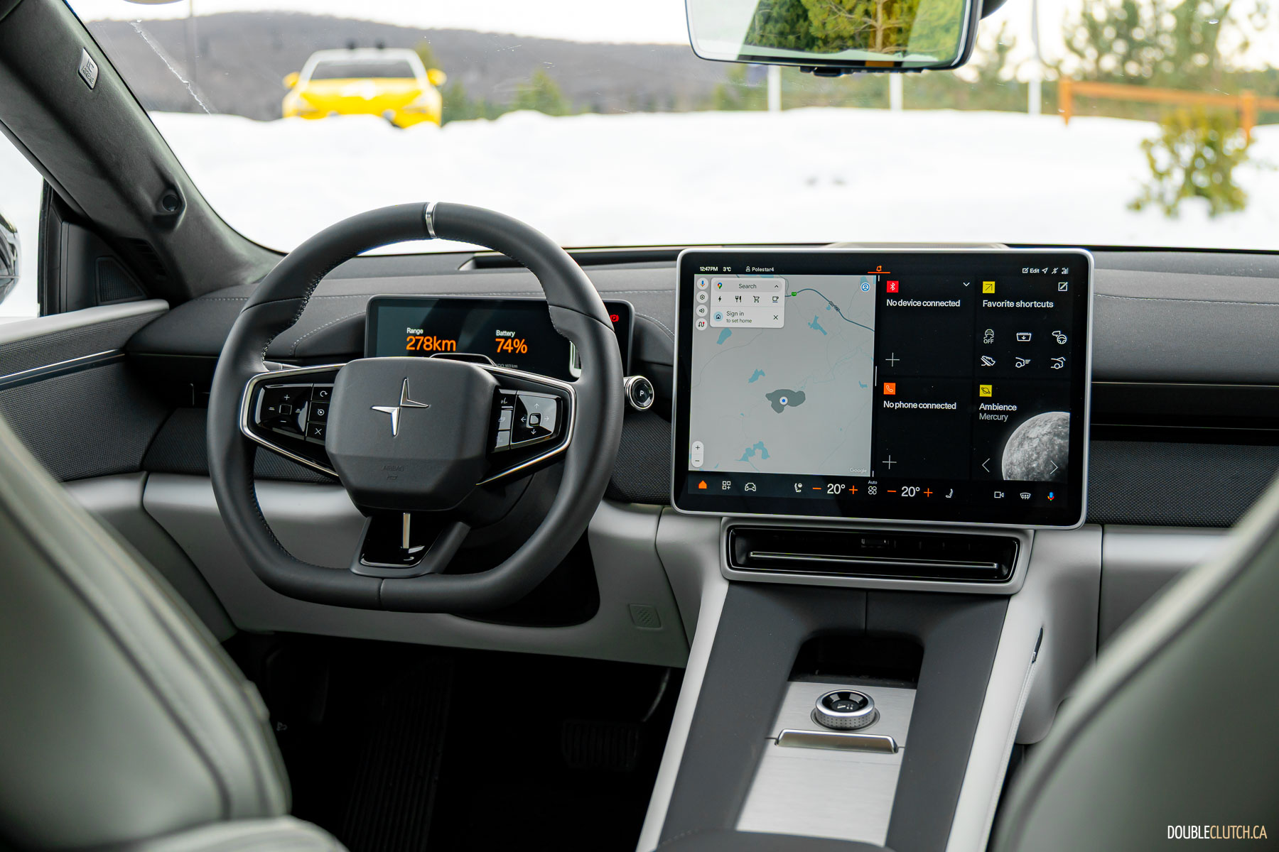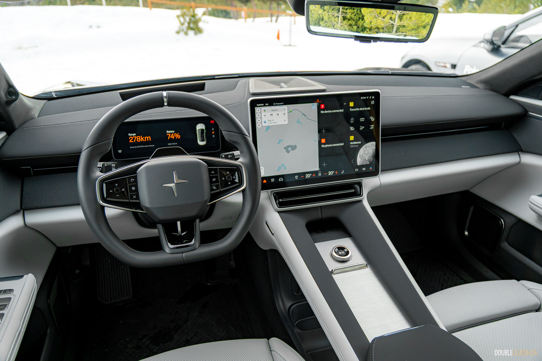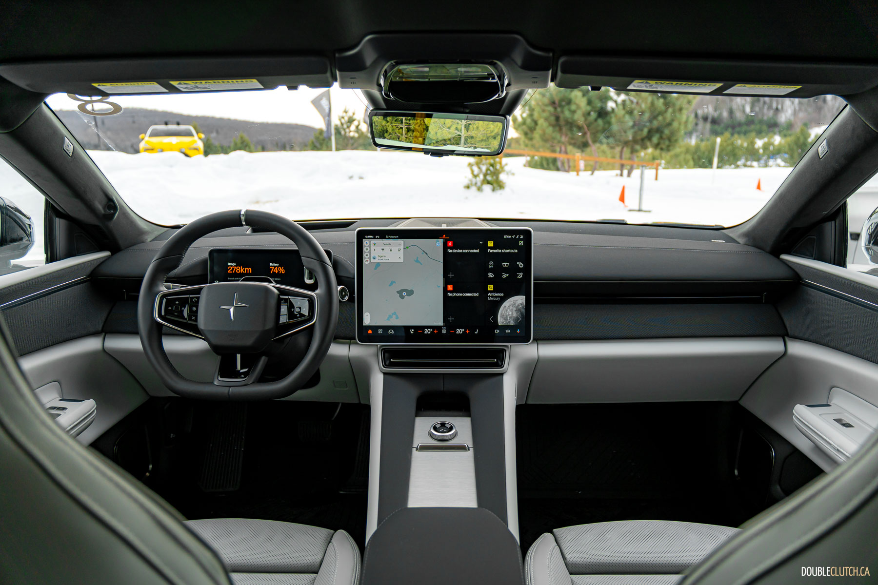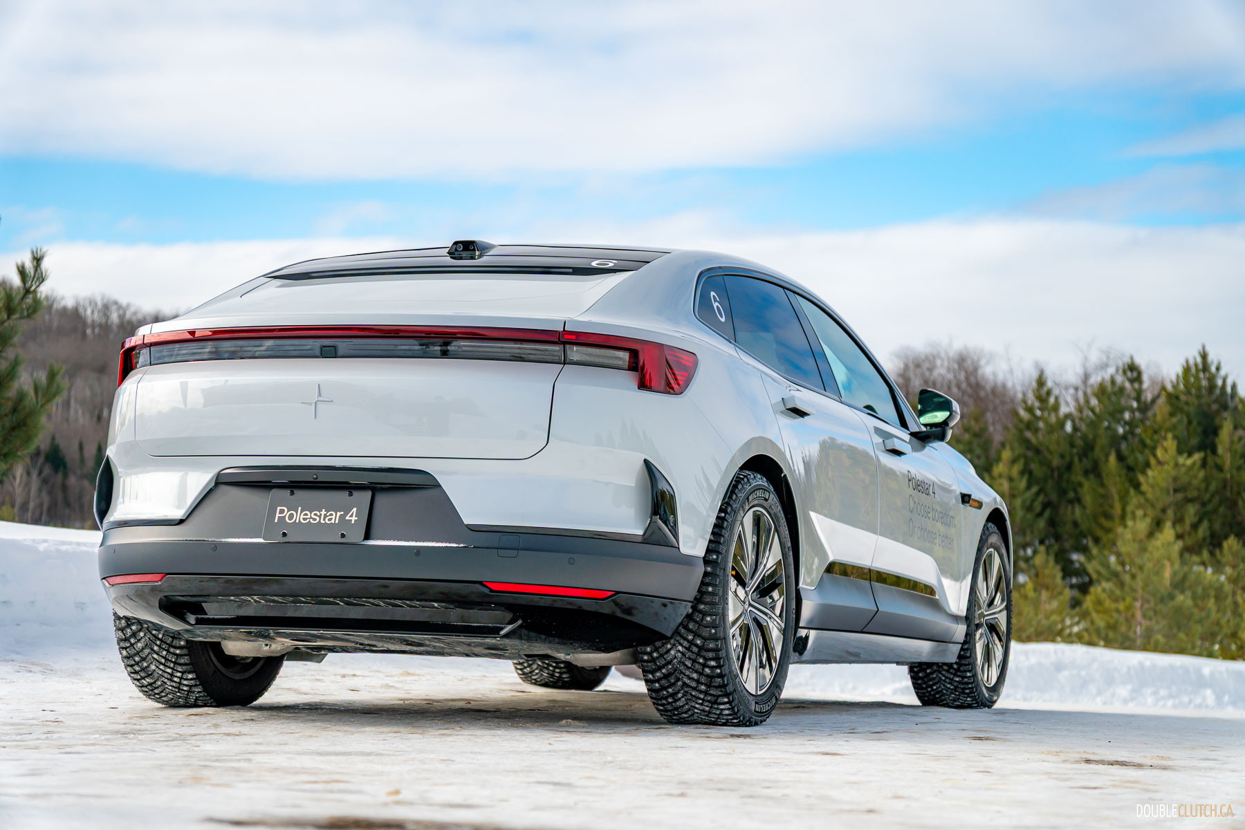 It bears mentioning, the rear camera is ensconced in a shroud, high on the back of the car. In all of Polestar’s testing, keeping the camera clear hasn’t been an issue, and in a whole day of drifting on snow and ice, where the backs of the cars got progressively whiter over the course of the day, the rear cameras stayed clear.
