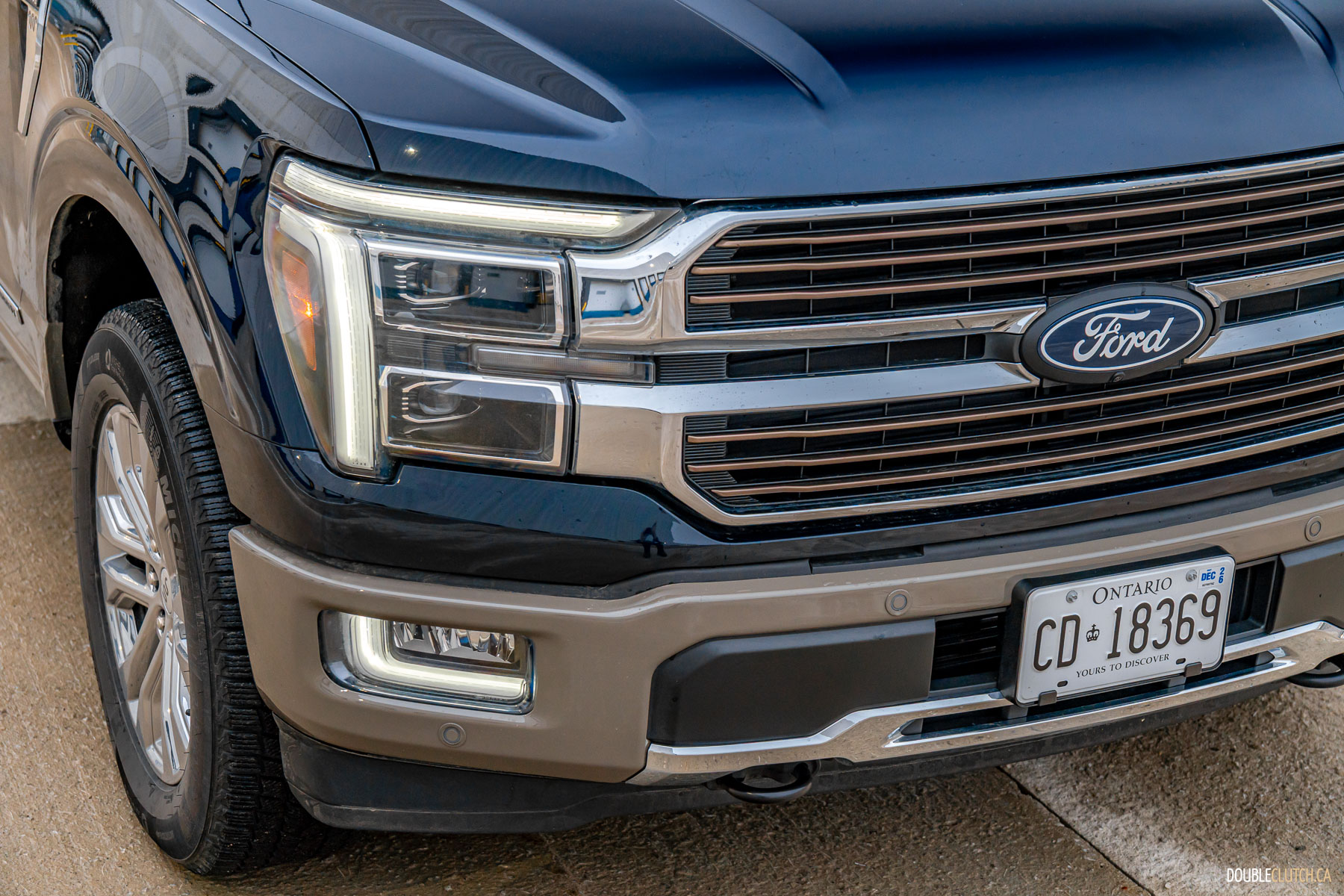 I was quite taken with this particular King Ranch tester’s two-tone paint scheme of Antimatter Blue metallic over a Atlas Grey (almost tan) lower trim, which not only makes it warm and handsome, but also lends a retro-ish vibe to it. I wasn’t the only one who noticed it’s reminiscent of the popular Eddie Bauer Edition Ford trucks of the late nineties and early aughts.