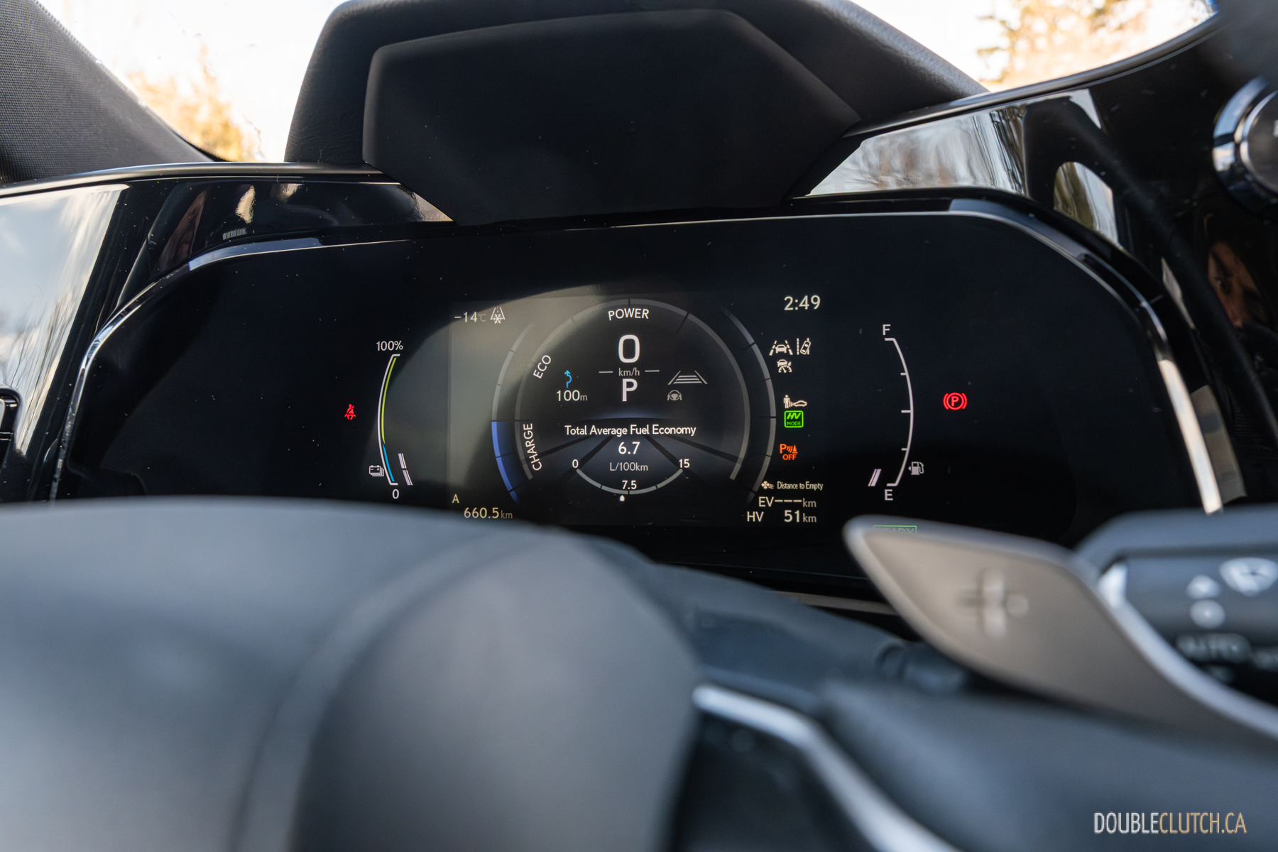 The NX 450h+ is hyper efficient, though, returning an average of 6.7L/100 km in deeply cold weather during my testing. Officially the plug-in hybrid motor and 18.1 kWh battery pack can do about 59 km of EV-only range, oddly the same as the heavier RX. I suspect the real-world EV mileage of the lighter and smaller NX is slightly higher.