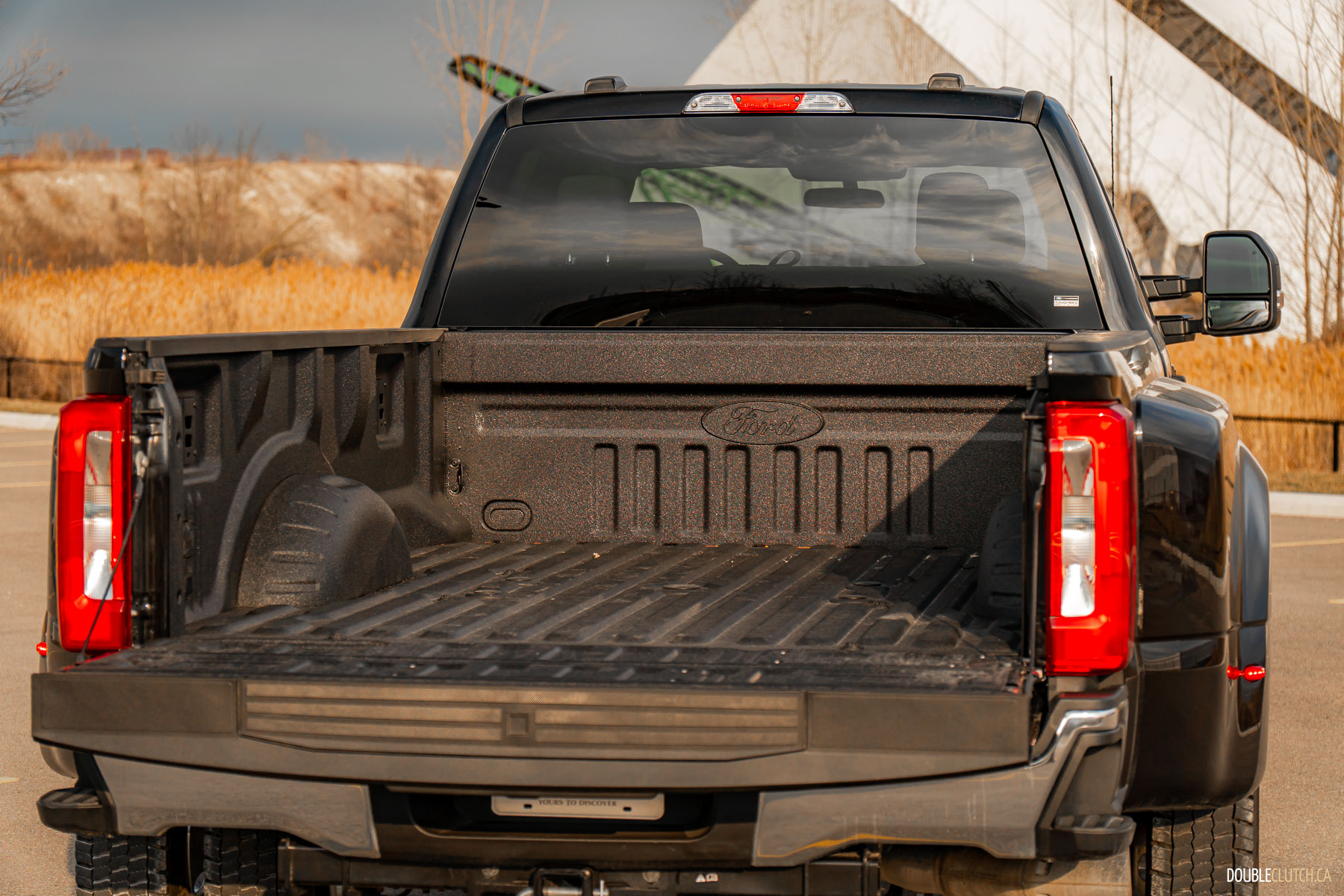 Surprisingly, it doesn’t really drive like a tank. Don’t get me wrong, you have to recalibrate your senses, and you have to be very aware of its huge haunches, but it’s not nearly as much of a bear as you might think. That wide-track front end enables the wheels to turn much sharper for greater maneuverability when backing up with a trailer, which has the side-effect of making the truck easier to park and generally wrangle around town. I was able to shimmy it into my Toronto triplex parking without too much of a fight, surprisingly.