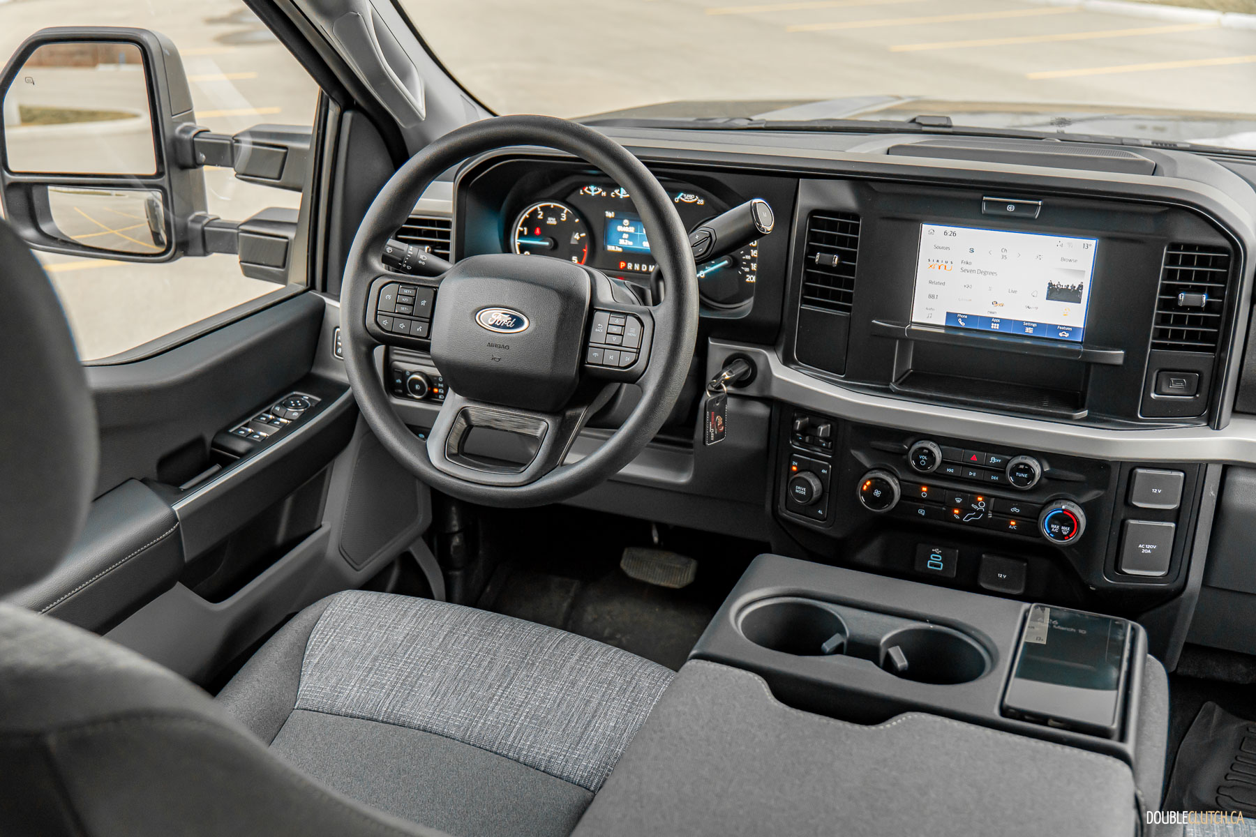 This XLT-level test rig doesn’t have much in the way of options. You get an old-school cloth bench seating arrangement in the front, a relatively small 8-inch center screen powered by what appears to be Windows XP, heated mirrors, and not much else. It even uses a traditional bladed key. The only real nicety is the 8-way powered driver’s seat, which is surprisingly comfortable.