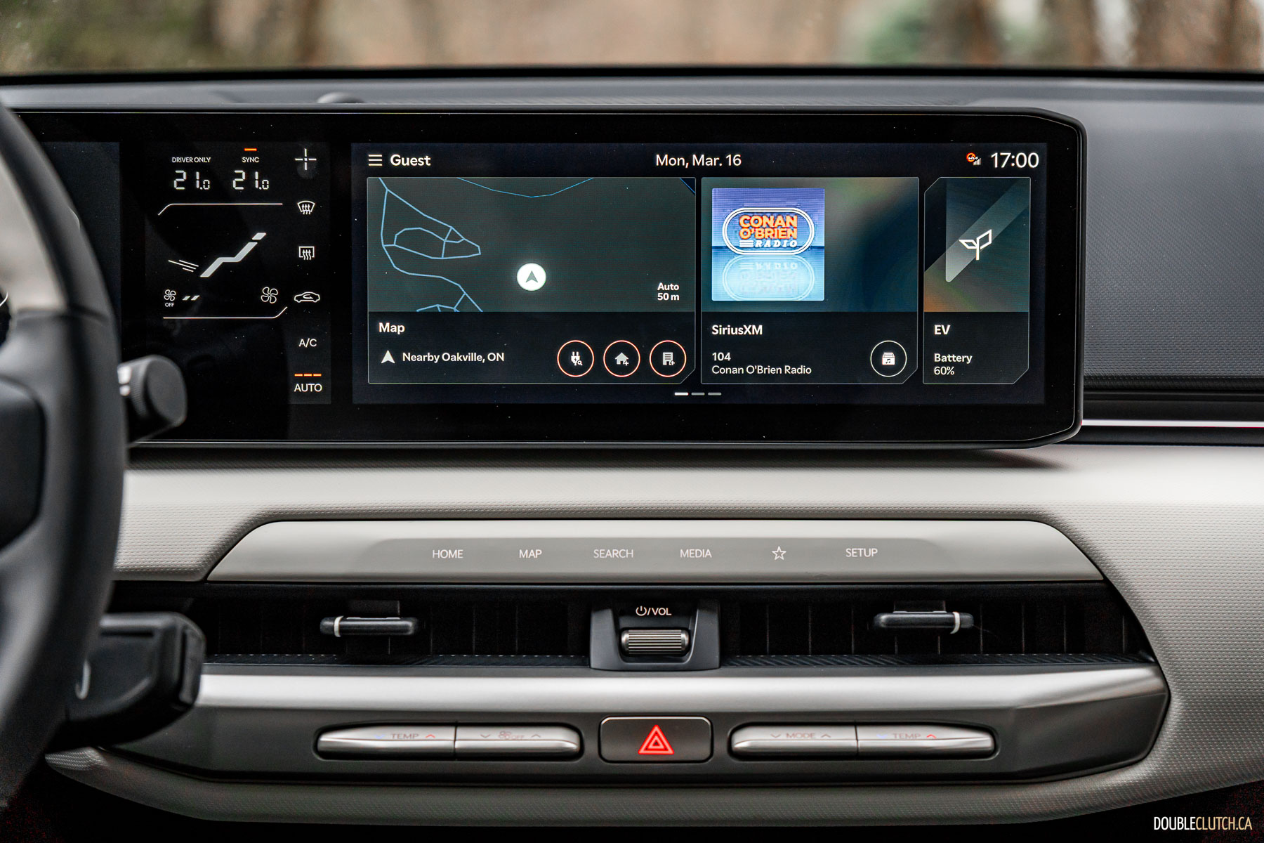 Perched top the dashboard is an ultra-wide screen housing three displays: two 12.3-inch screens for the gauge cluster and centre touch interface, and a 5-incher in the middle for climate. This is the same as seen on the EV9, and it all works together quite well, with an attractive interface that’s easy to use. Wireless Apple CarPlay and Android Auto are standard.