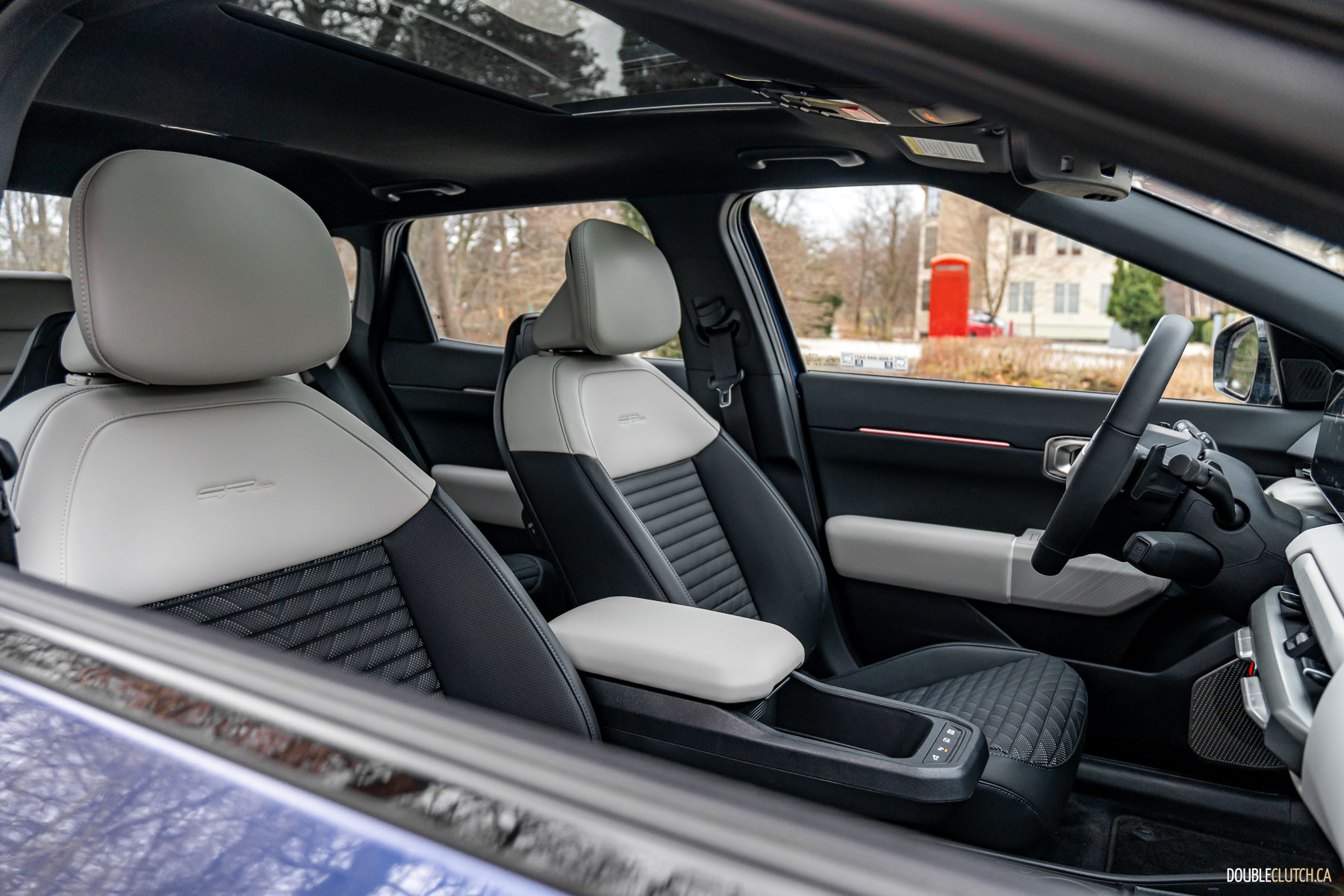 The cabin of the EV4 is handsome, modern, and well-thought out. It’s bright, airy, and so spacious that it undermines its classification as a compact car. Our loaded GT-Line limited tester came with niceties like heated and ventilated power leatherette seats with contrasting perforations, and a Harmon Kardon sound system.